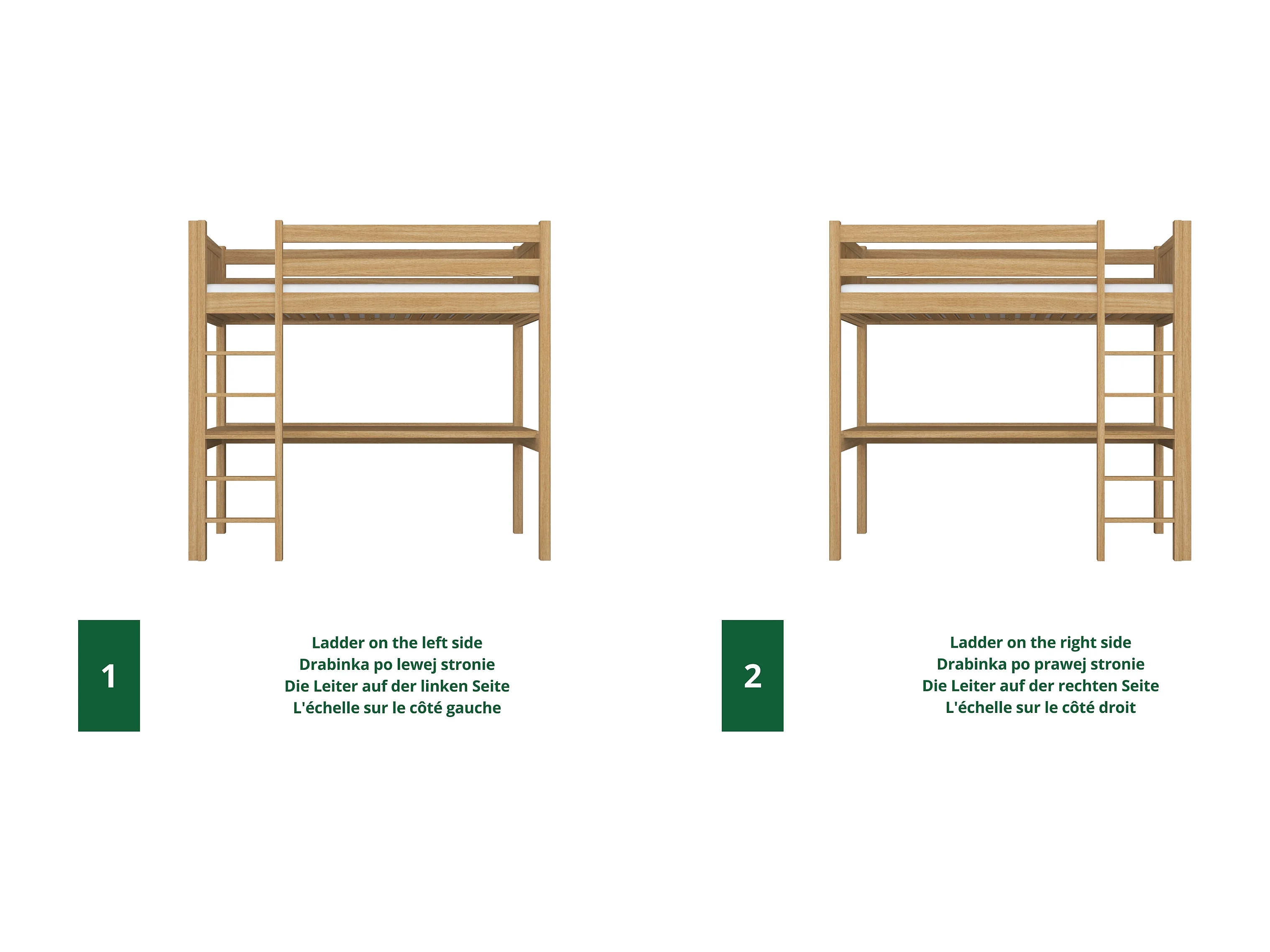 Lit mezzanine en chêne - avec bureau N06 Chêne Naturel 100x200