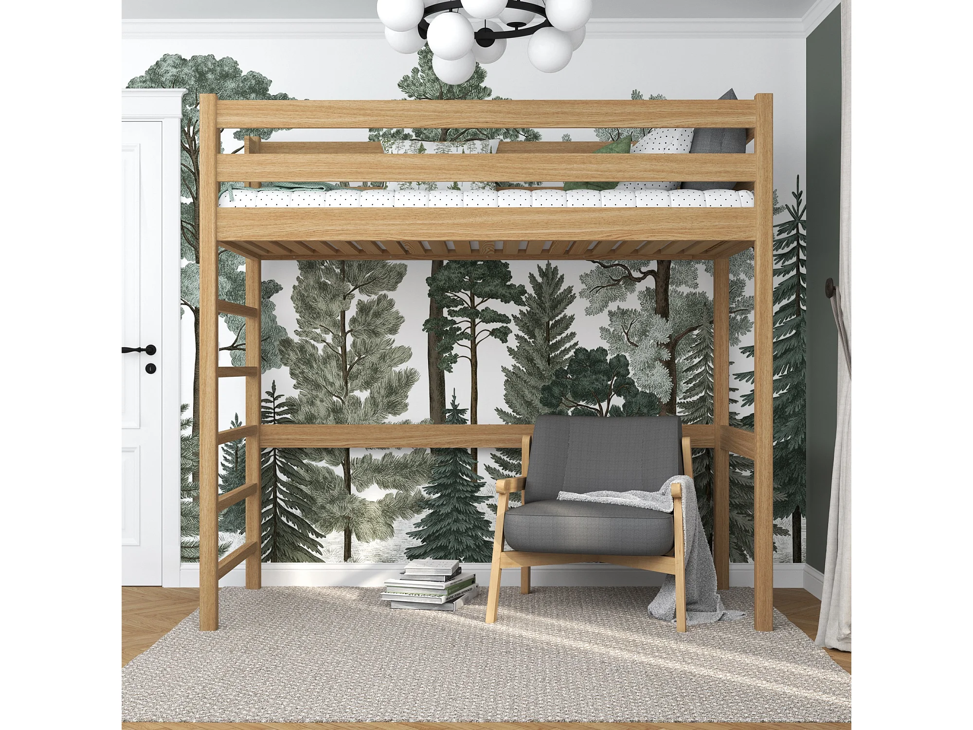 Lit mezzanine en chêne N01 Chêne Naturel 80x200