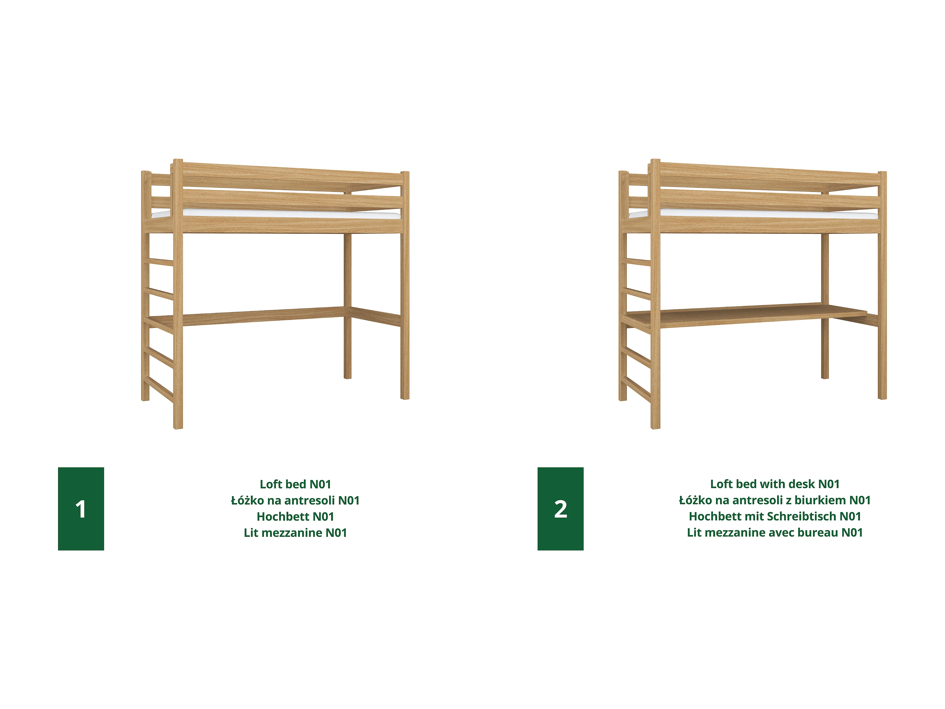 Lit mezzanine en chêne N01 Chêne Naturel 90x200