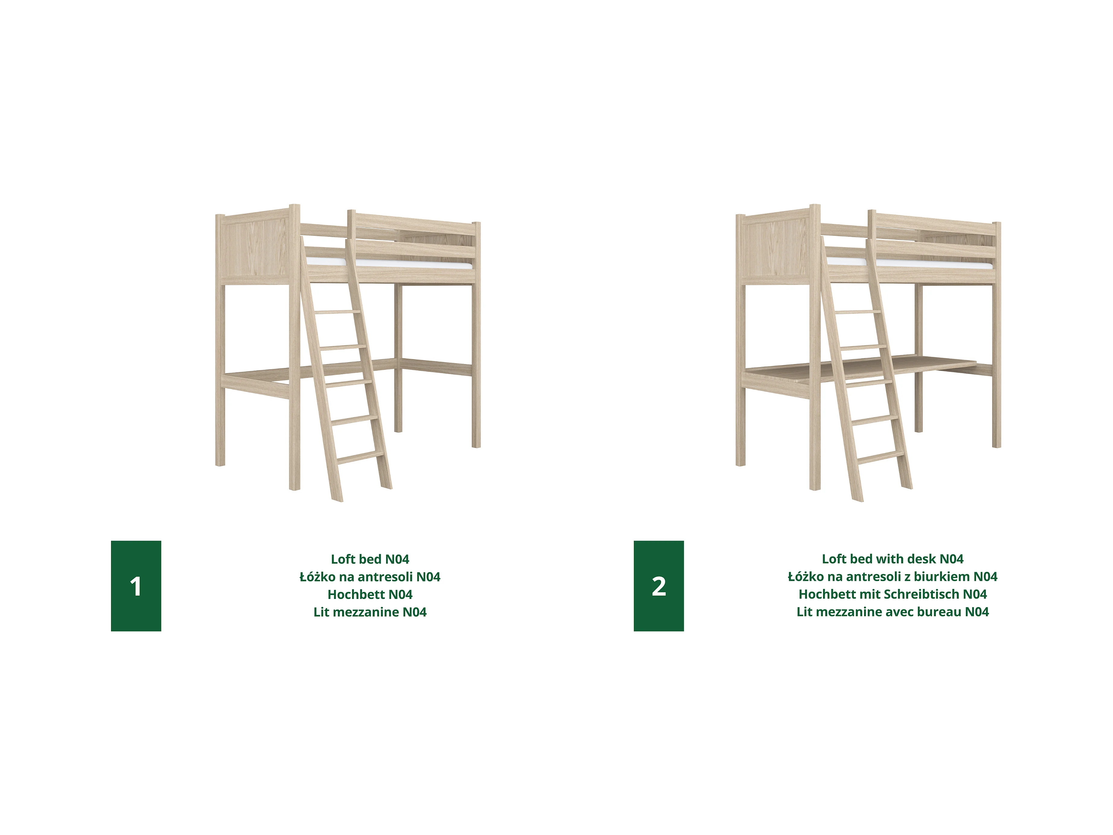Lit mezzanine en chêne N04 Chêne Blanchi 120x190