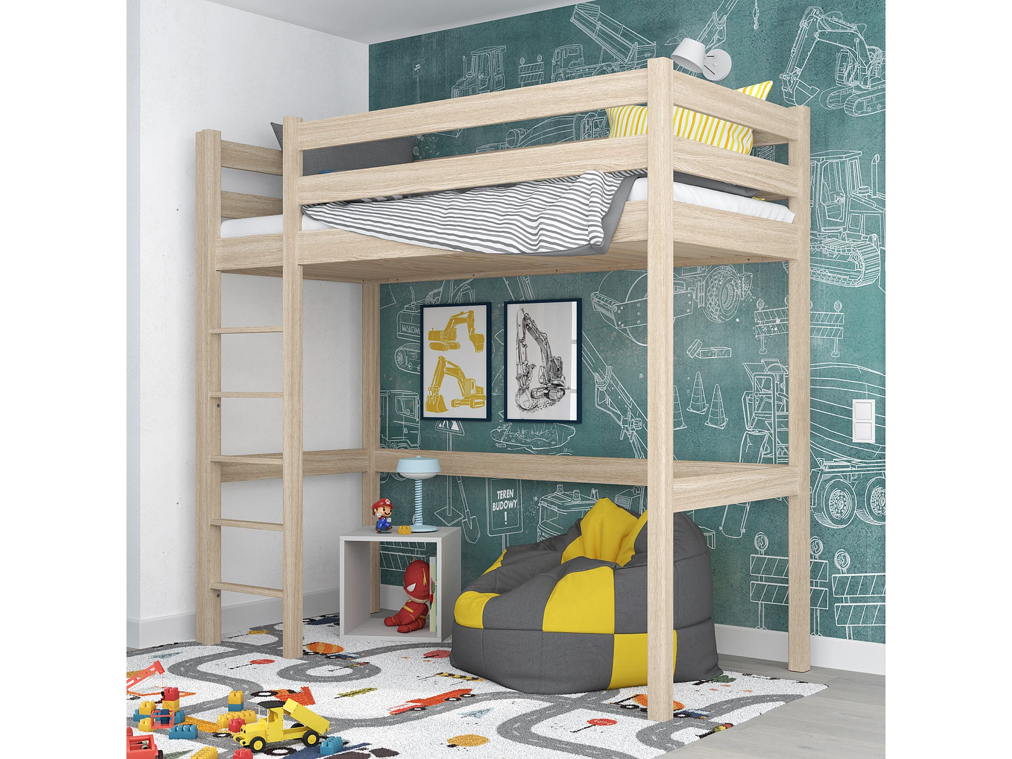 Lit mezzanine en chêne N05 Chêne Blanchi 90x200