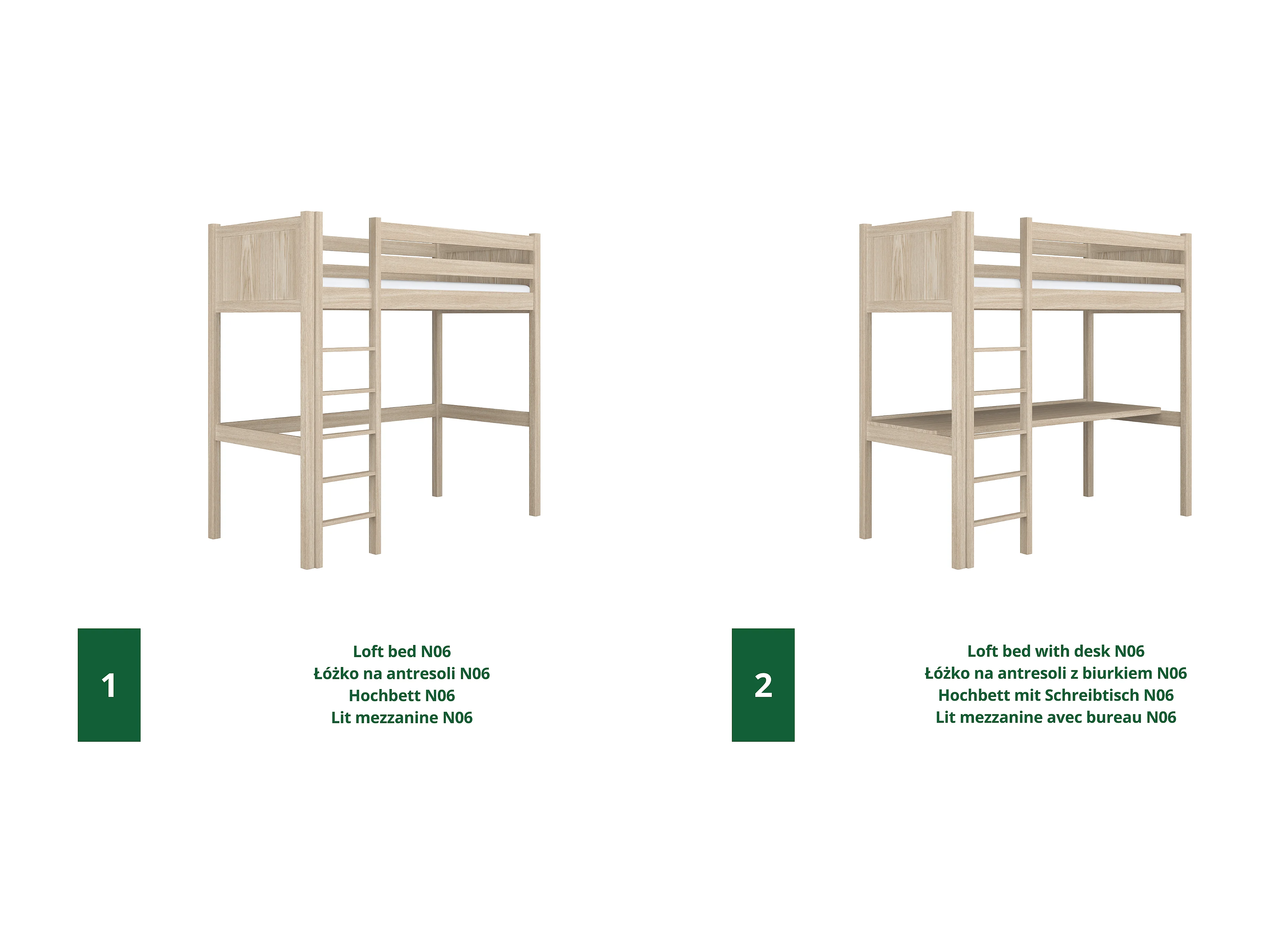 Lit mezzanine en chêne N06 Chêne Blanchi 120x180