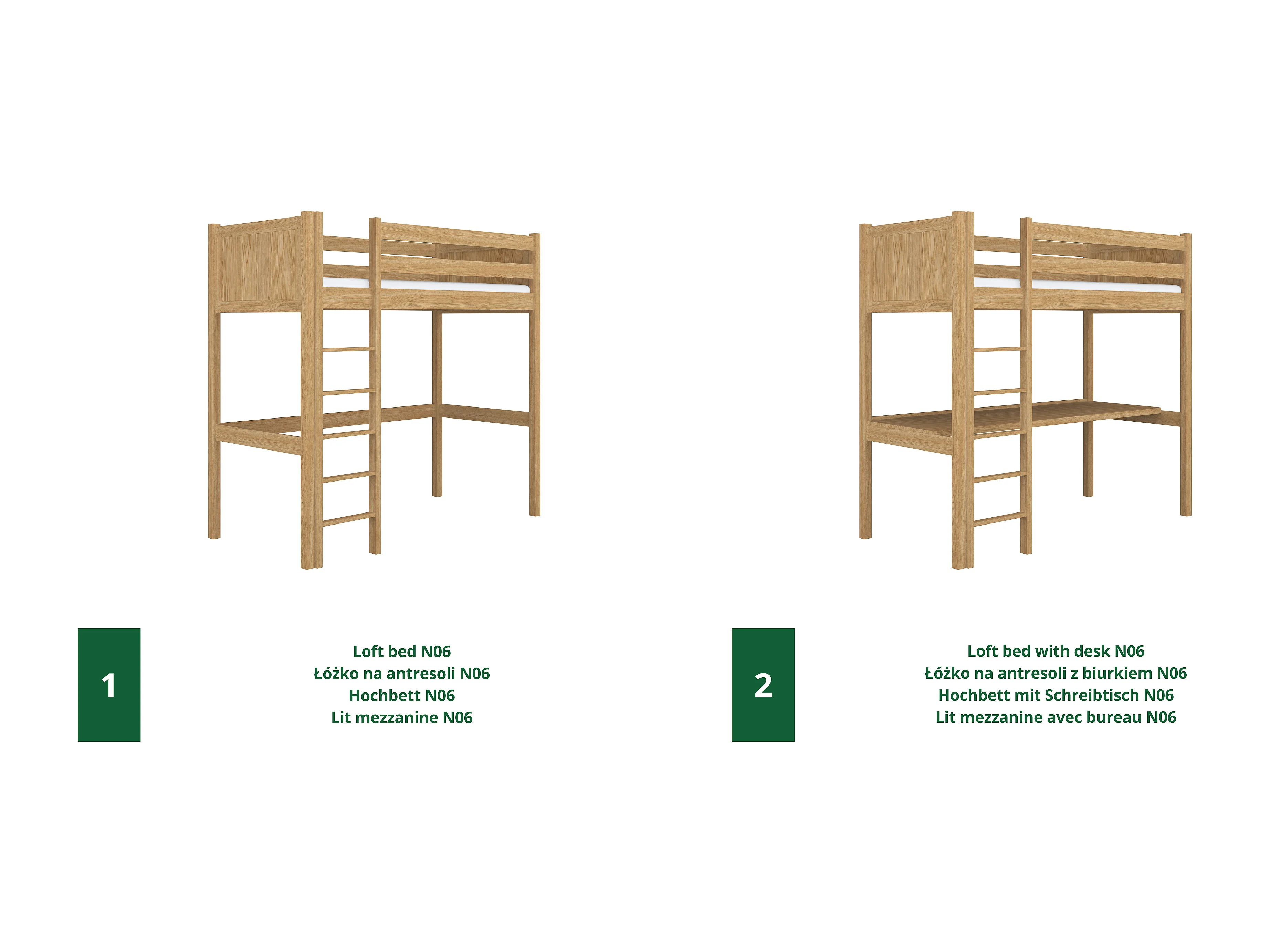 Lit mezzanine en chêne N06 Chêne Naturel 120x180