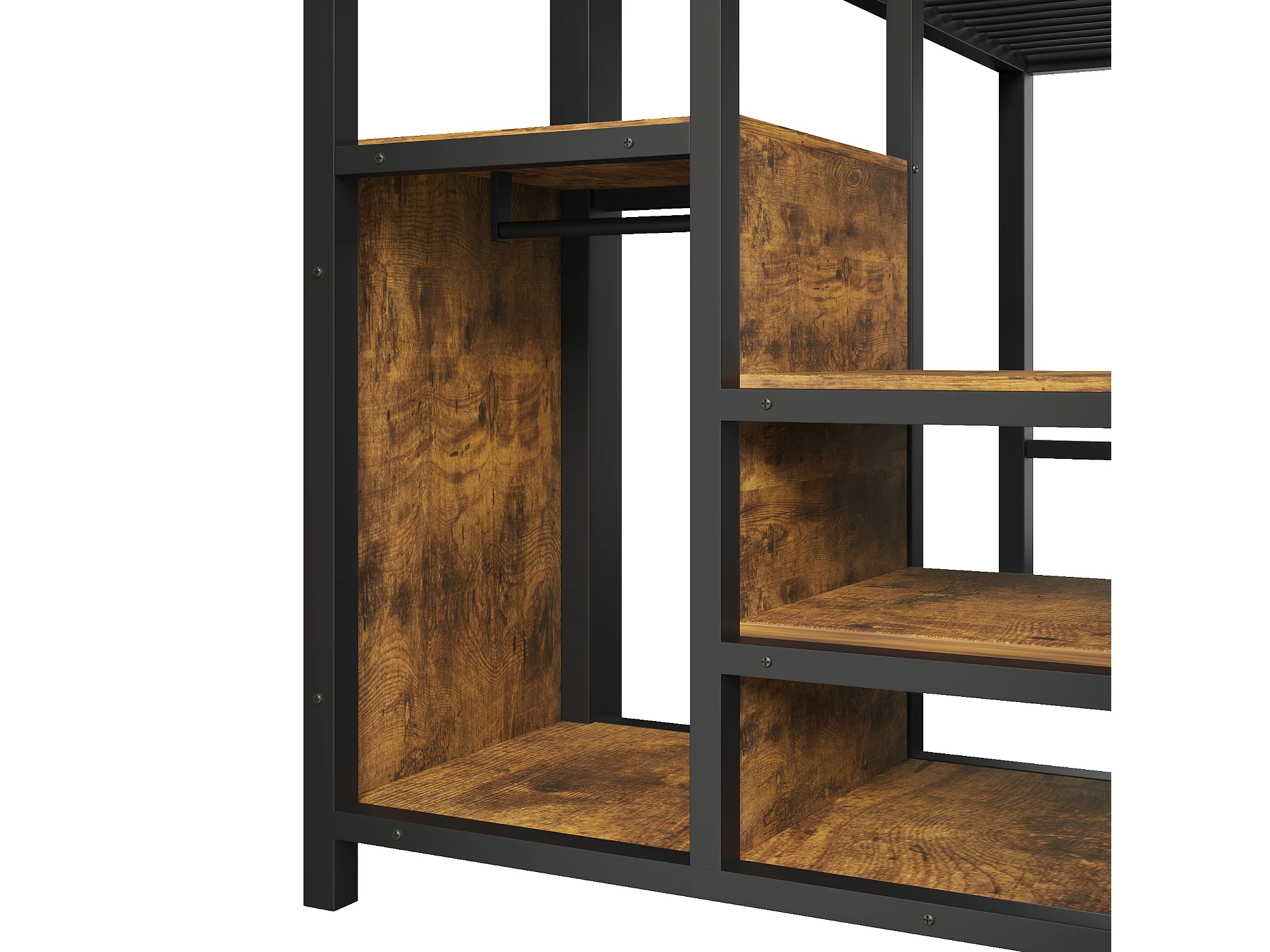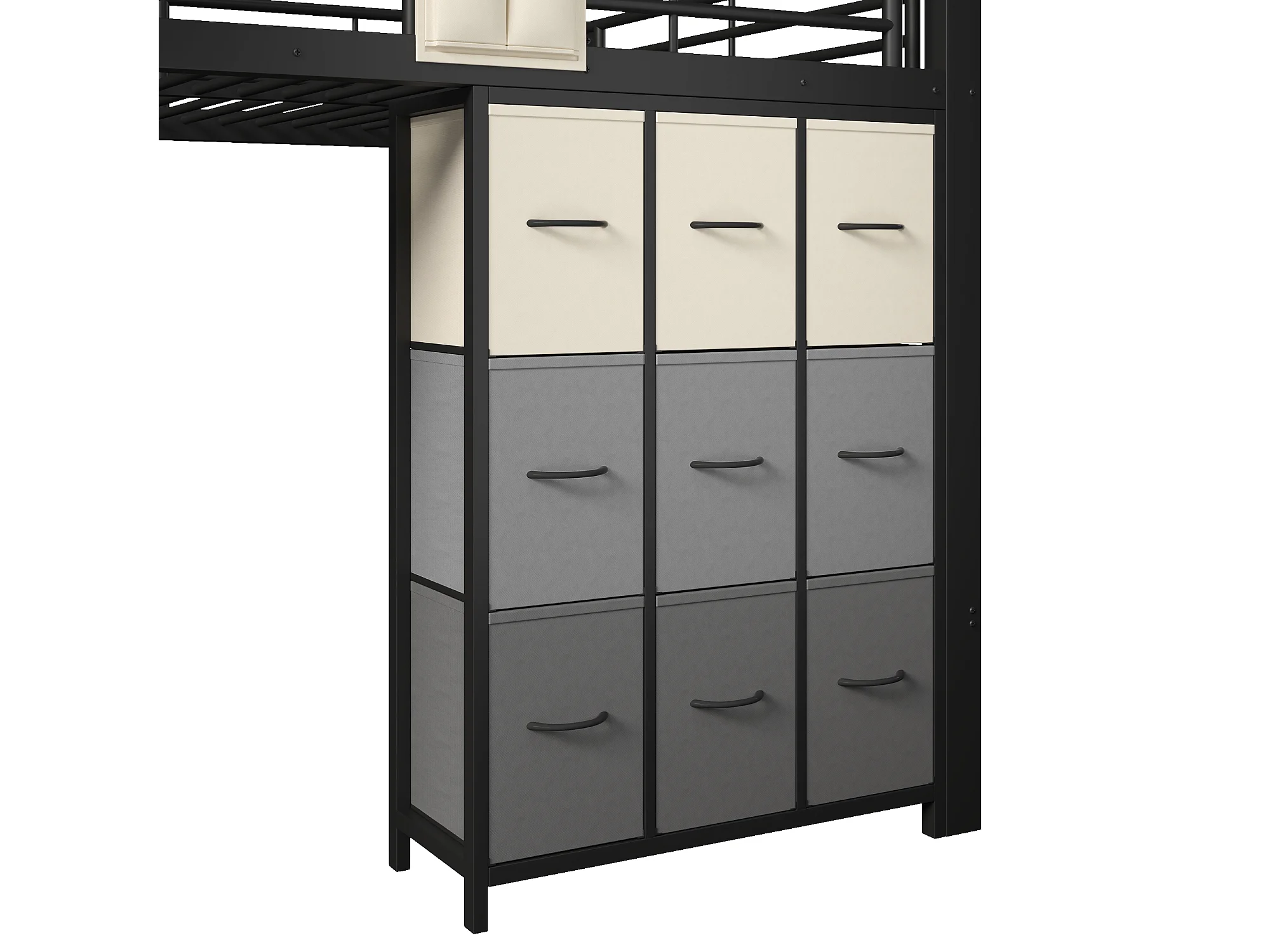 Lit mezzanine en métal - 140 x 200 cm - avec commode à 9 tiroirs + penderie + escalier avec rangement - noir