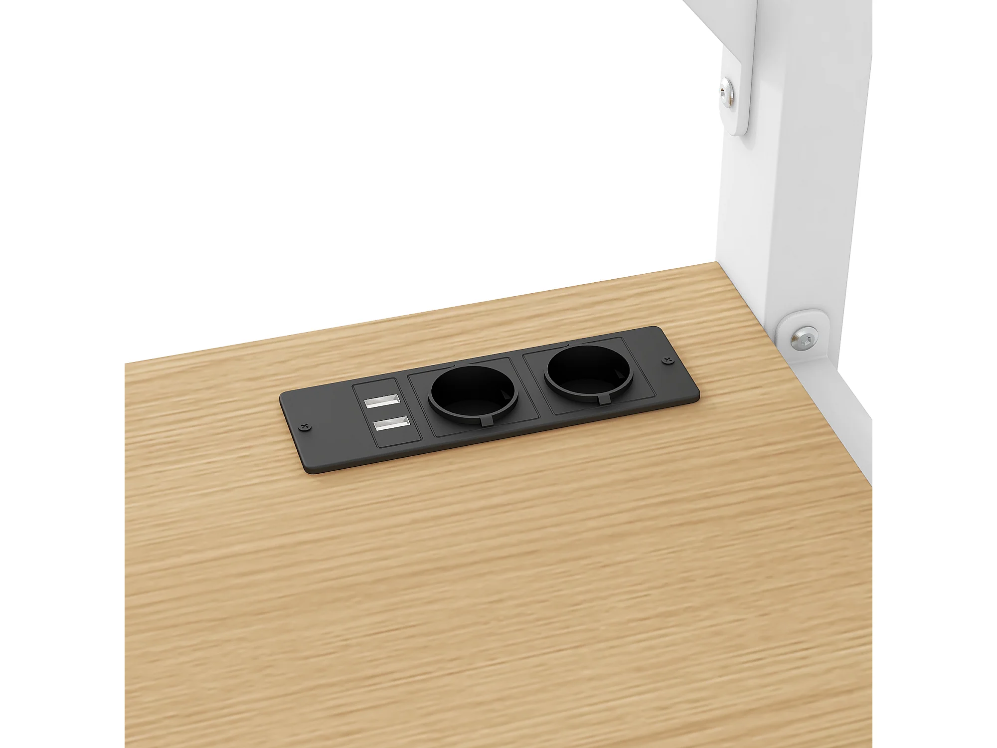 Lit mezzanine en métal enfant - 140 x 200 cm - avec USB + Leds + bureau + armoire ouverte et 3 tiroirs - MDF + métal - blanc
