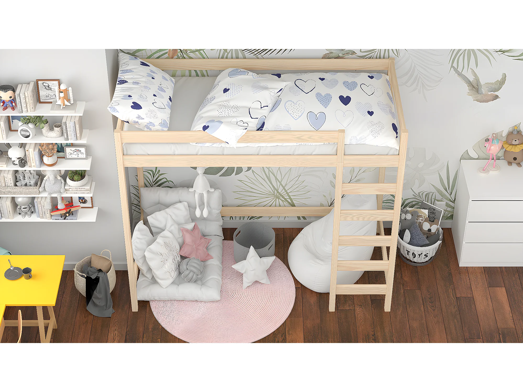 Lit mezzanine en pin massif 180x80 chêne blanchi
