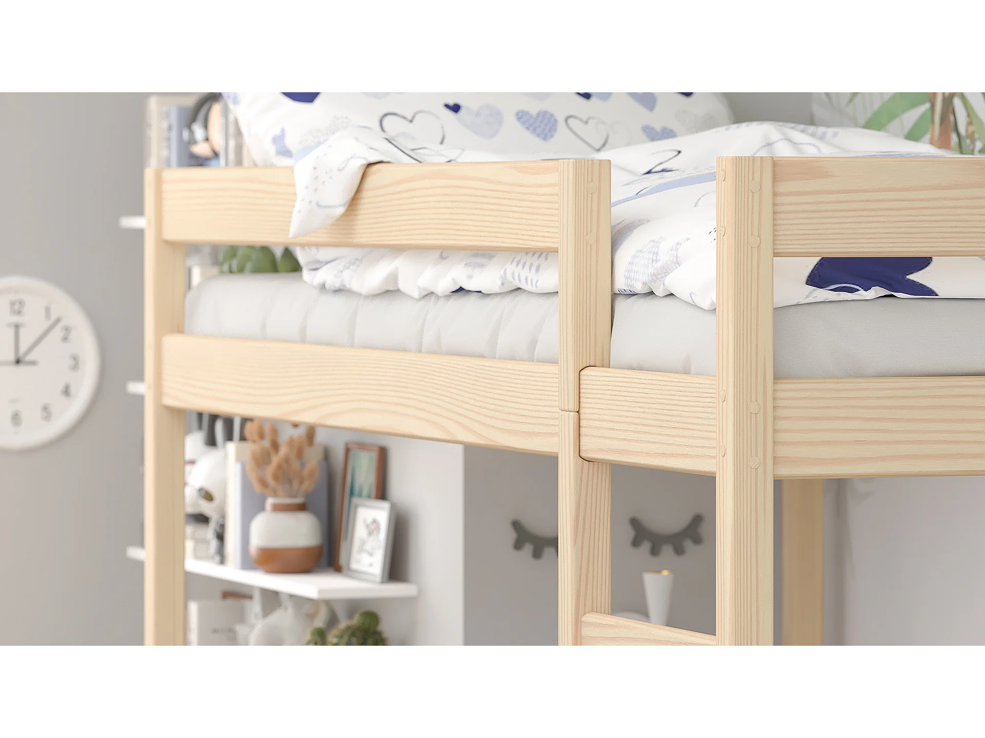Lit mezzanine en pin massif 200x90 chêne blanchi