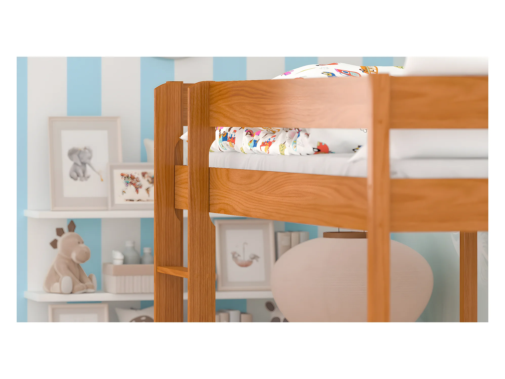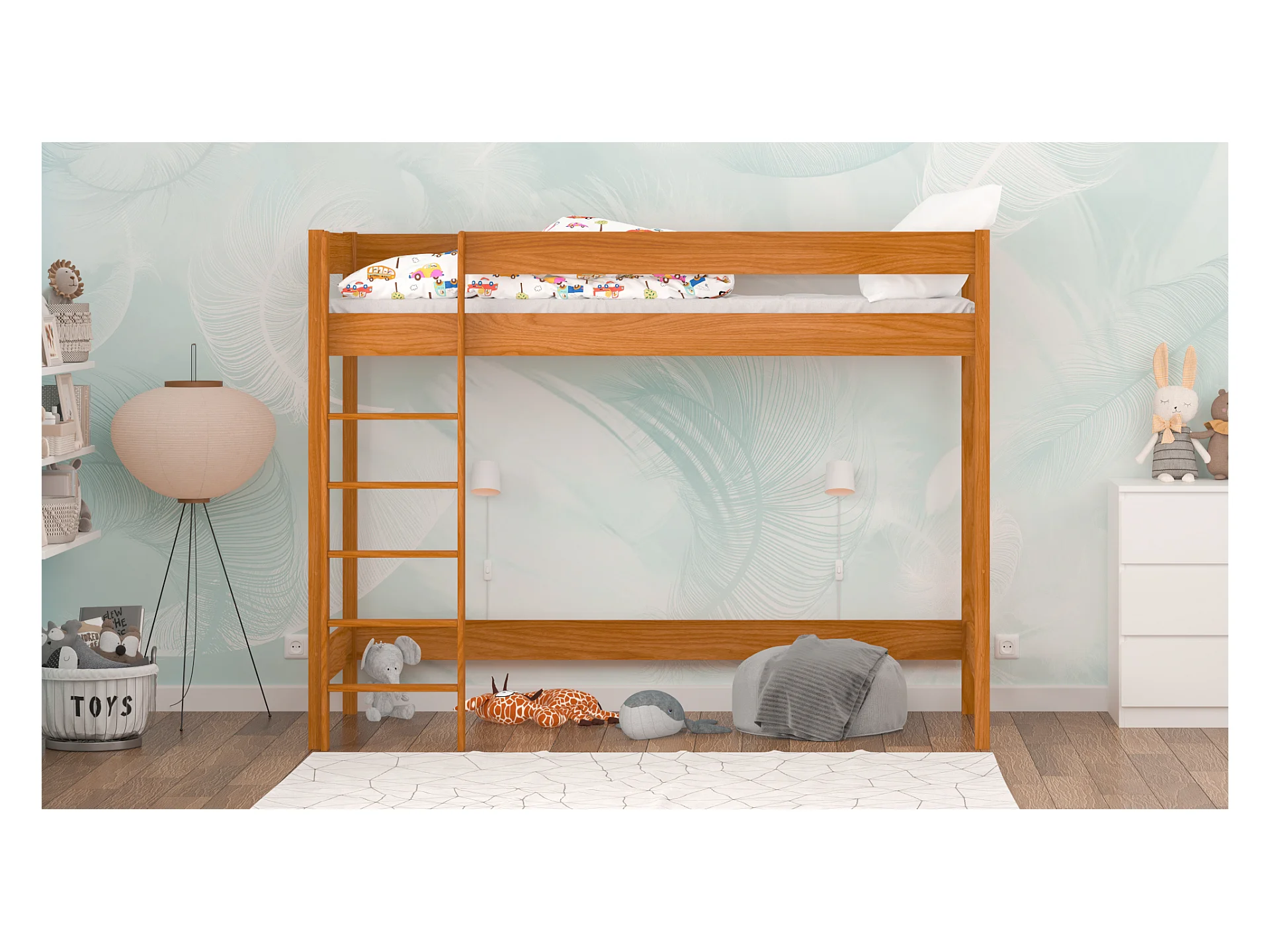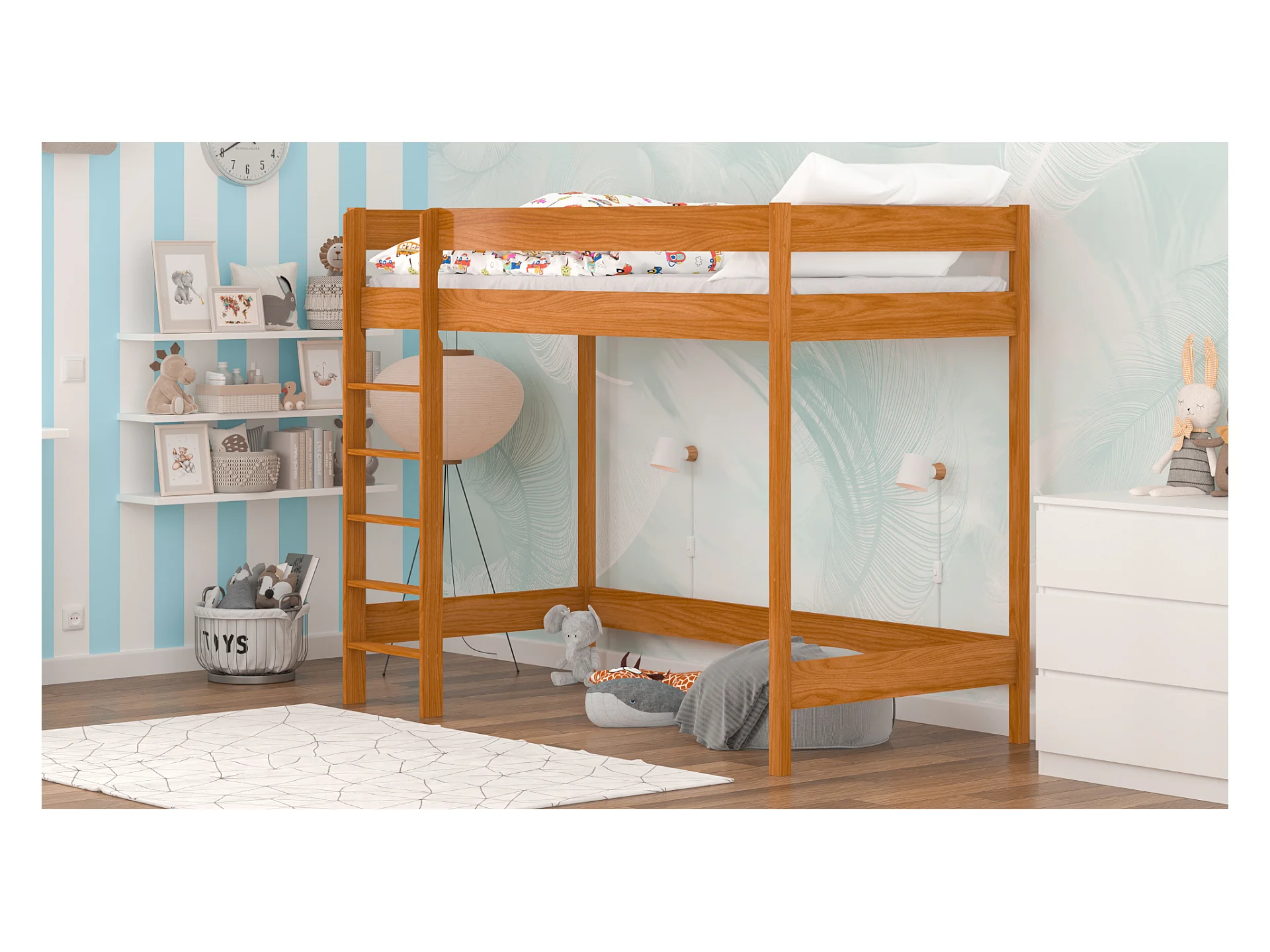 Lit mezzanine en pin massif 200x90 teck