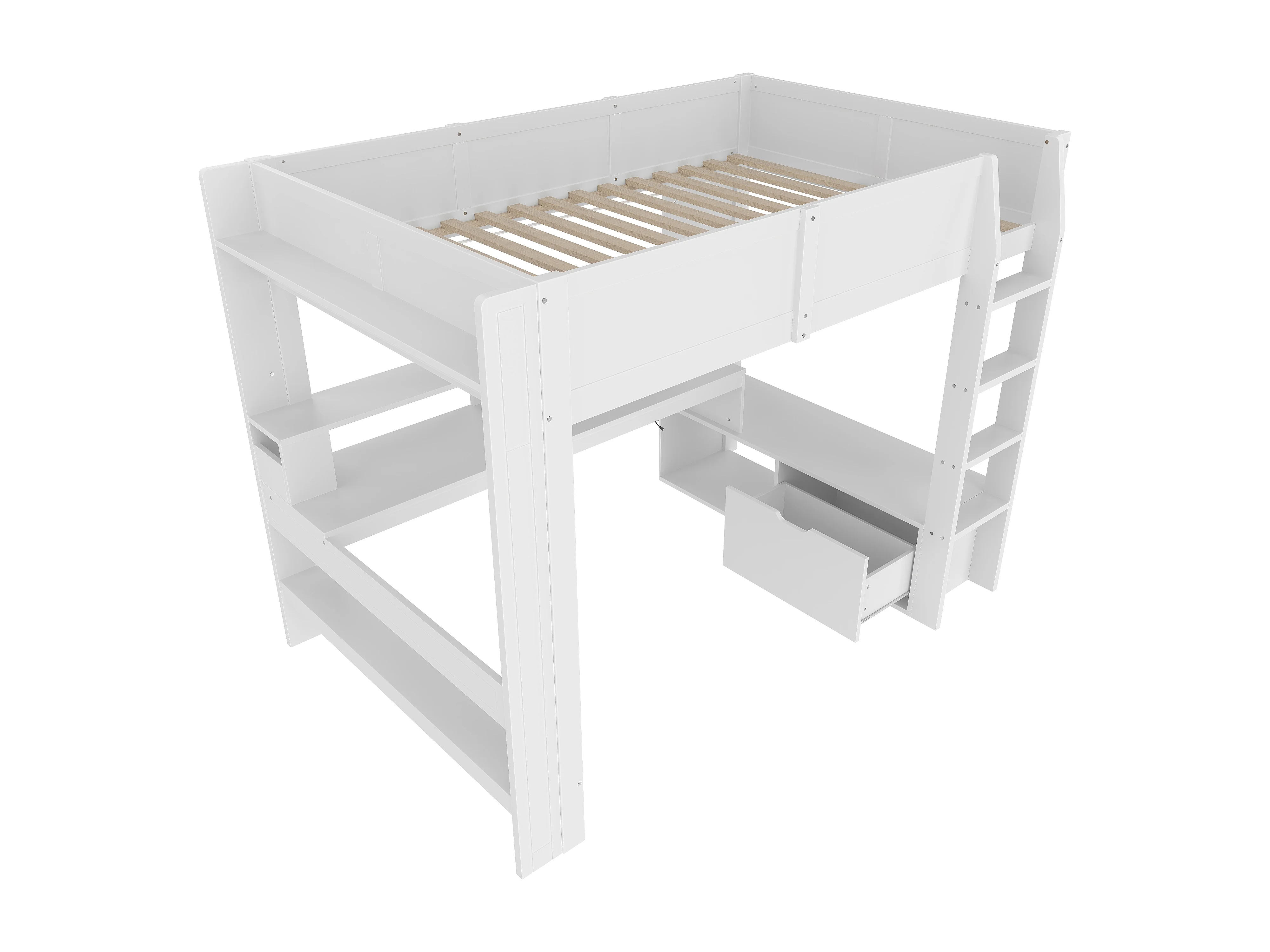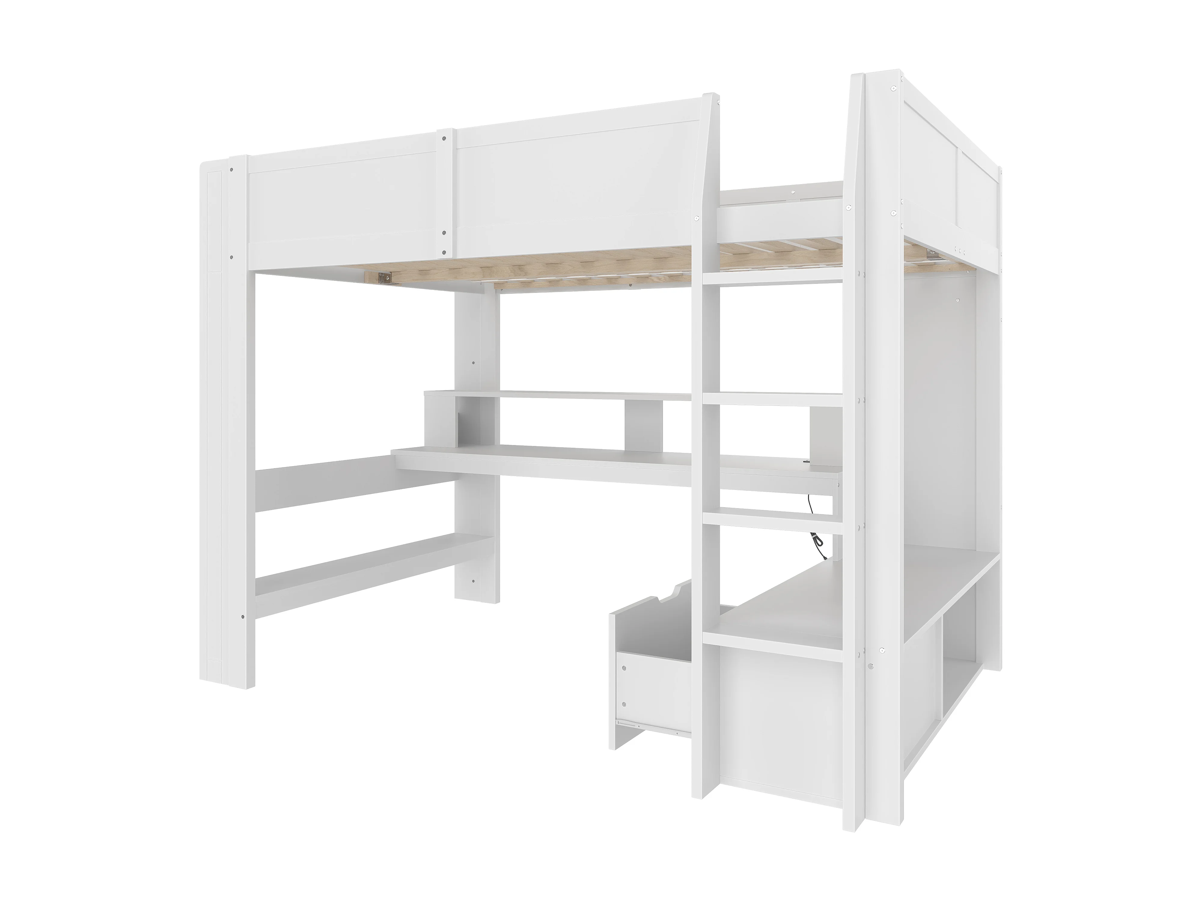 Lit mezzanine enfant 140 x 200 cm avec bureau , LED, pris USB et rangemnet - Blanc (sans matelas)