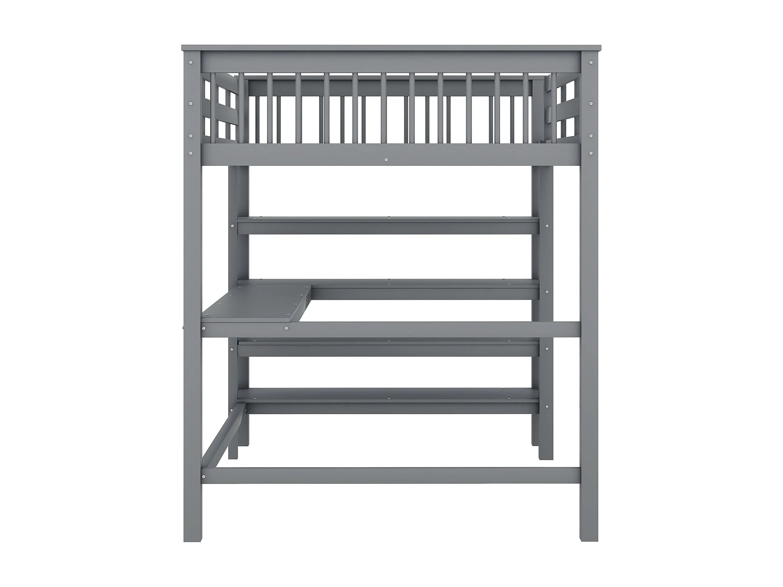 Lit mezzanine enfant 140 x 200 cm avec rangement et bureau - Bois en pin et MDF - Gris( sans matelas )