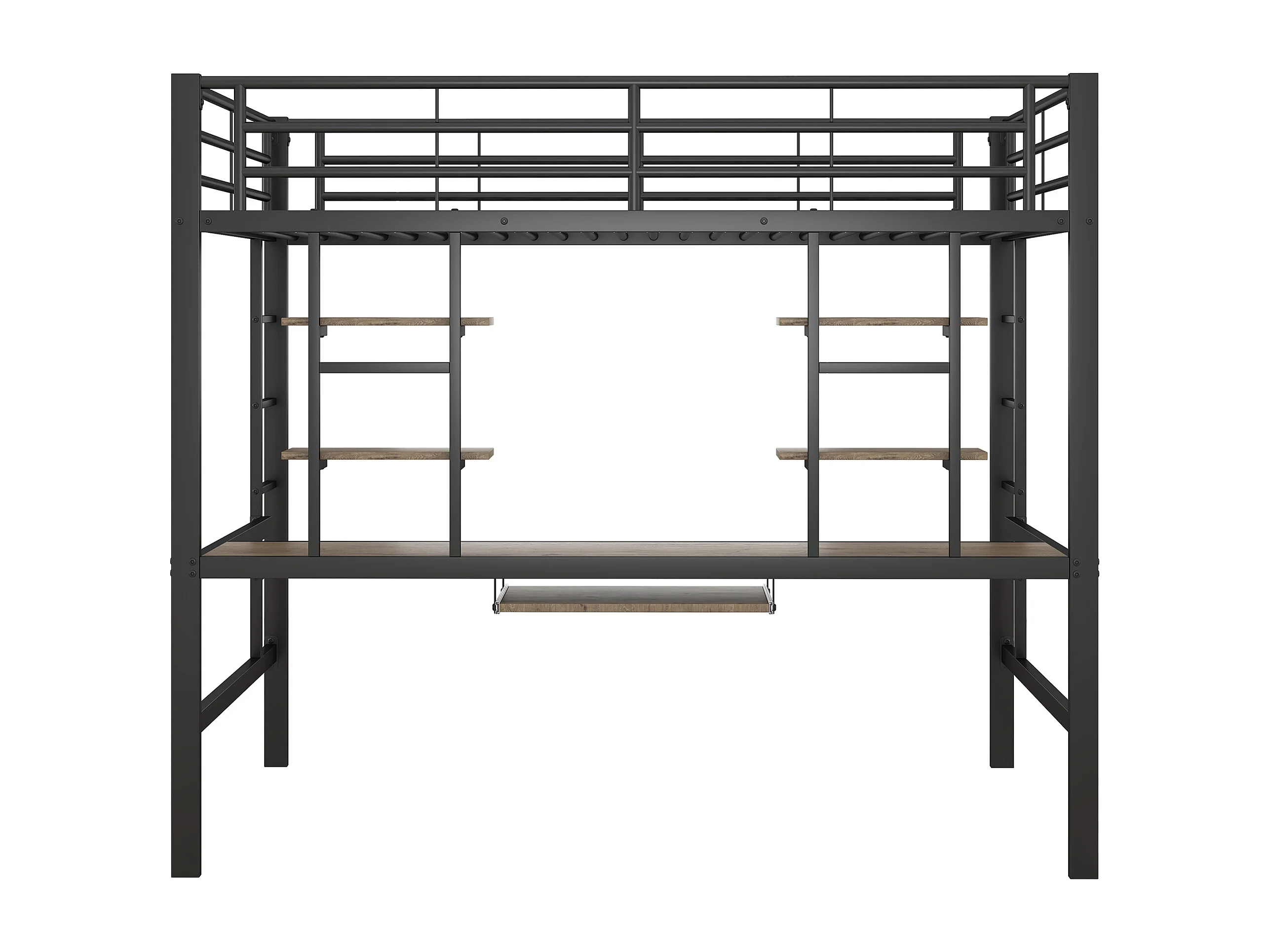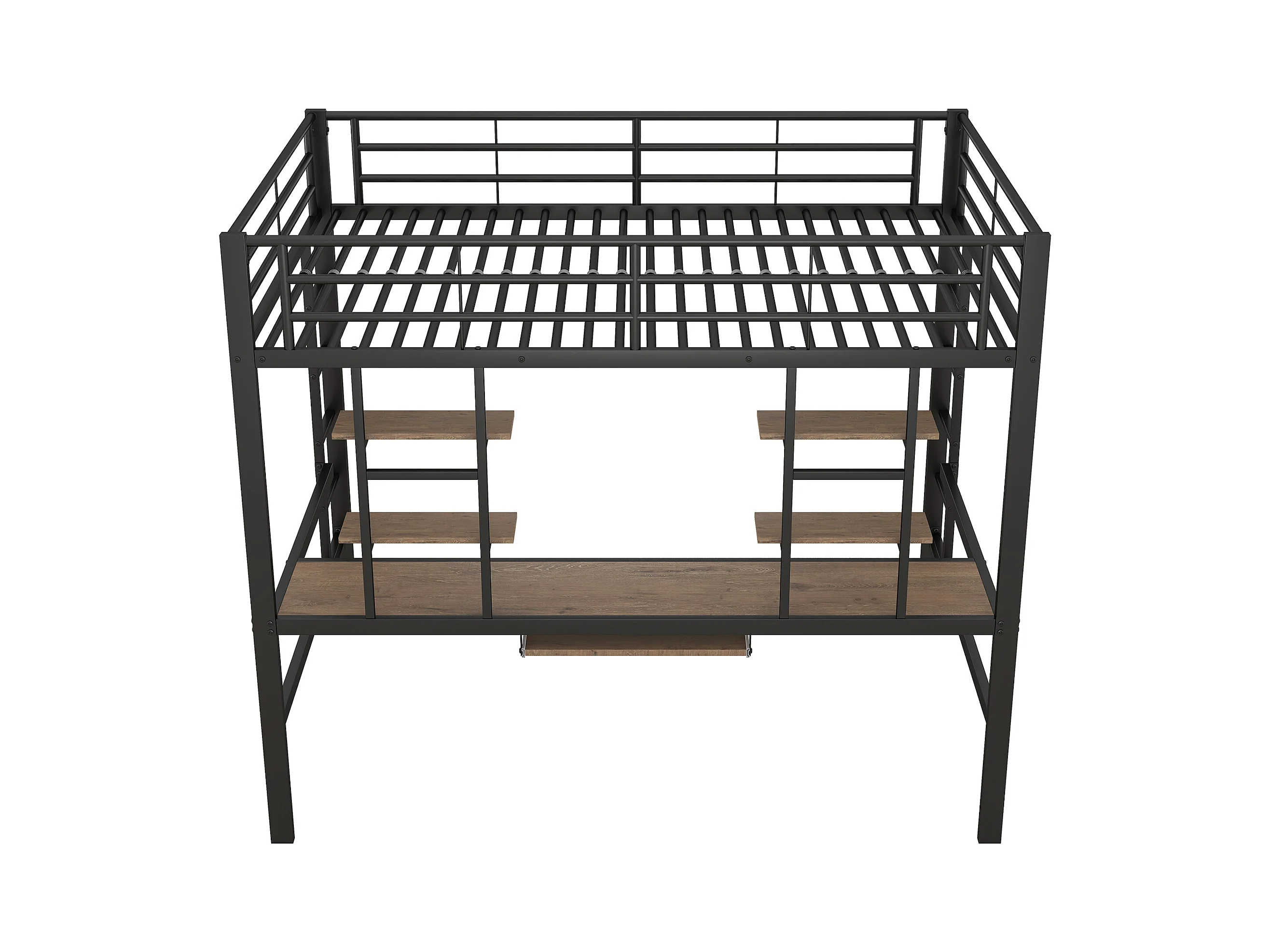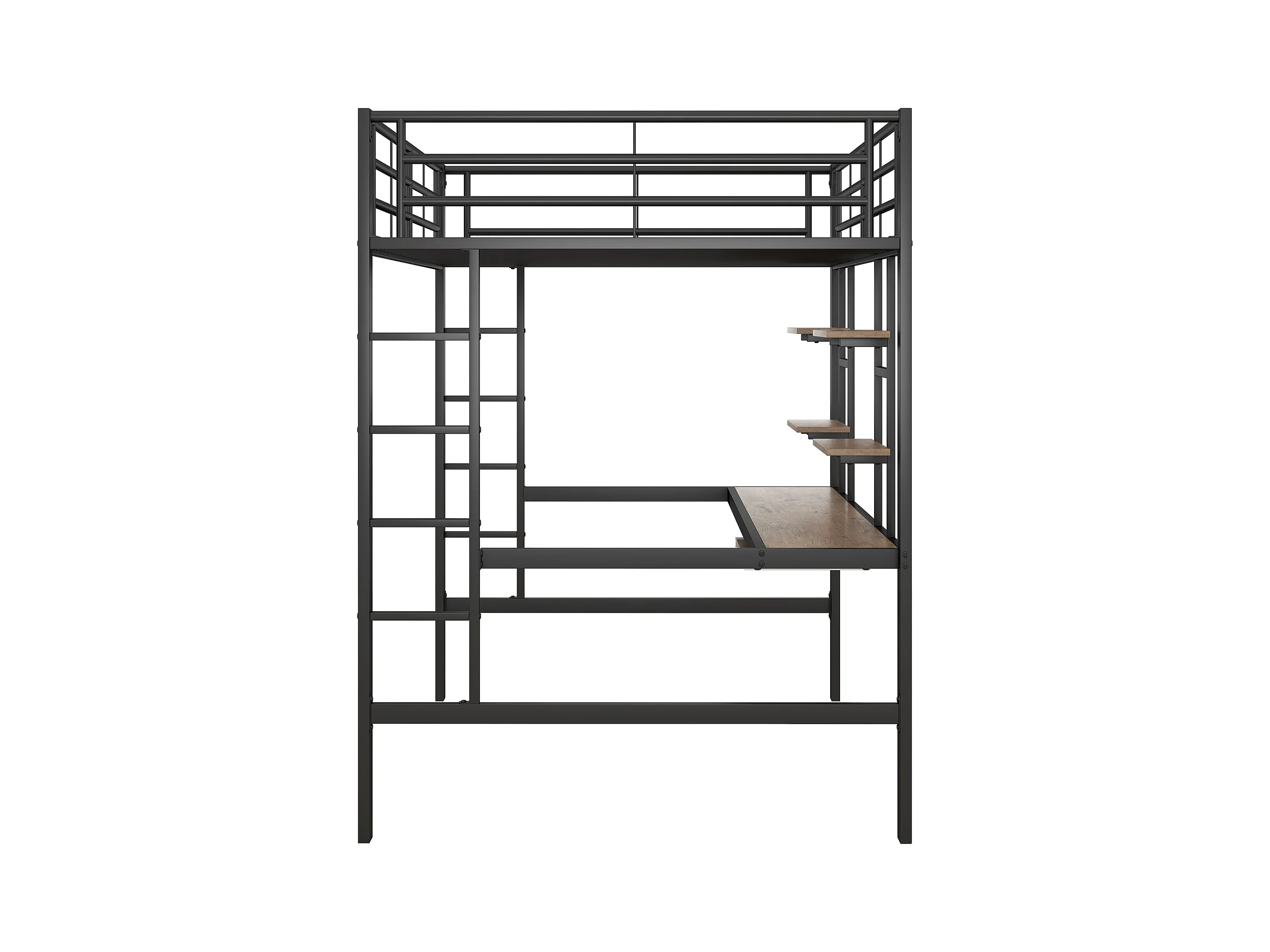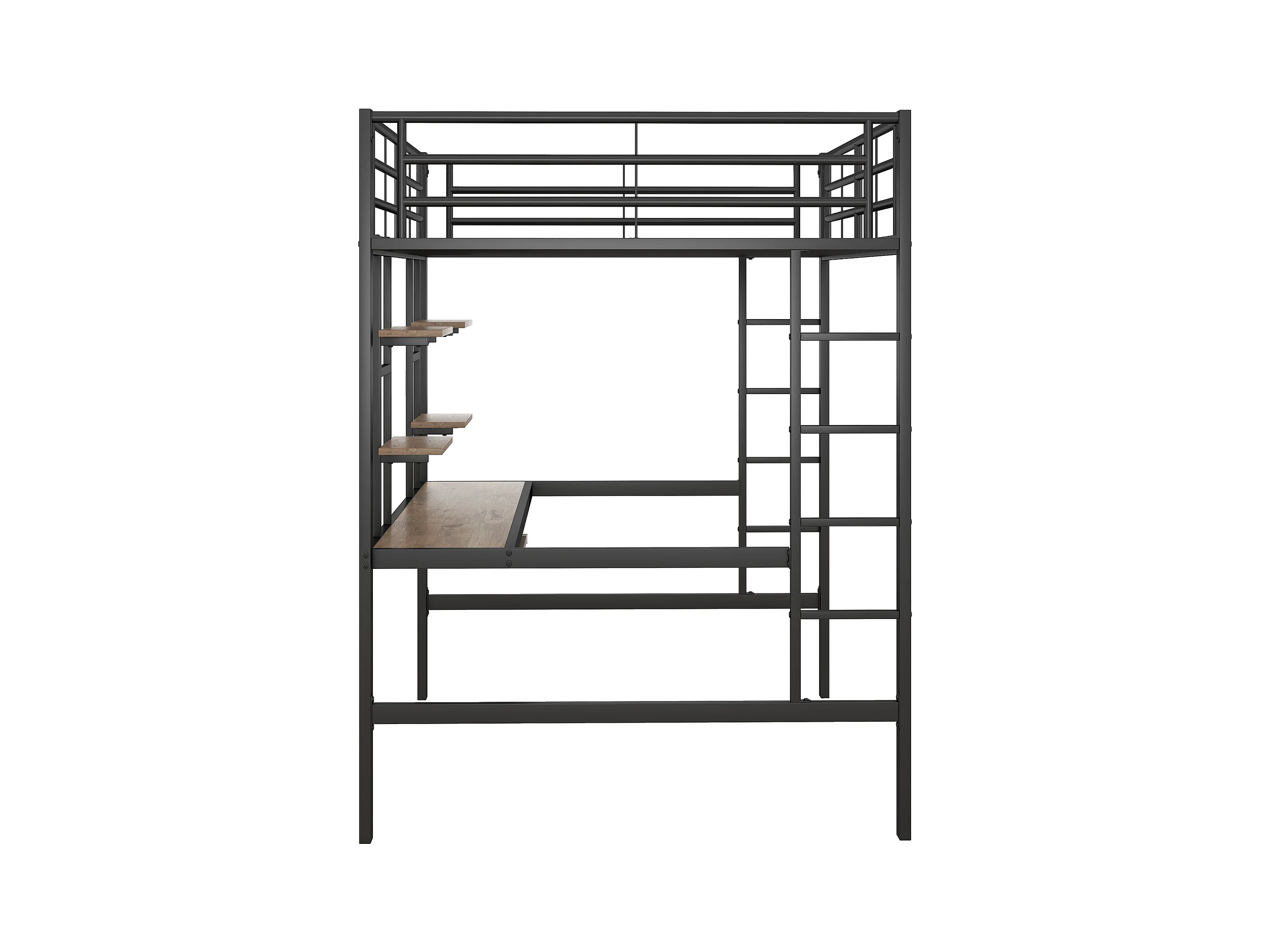 Lit mezzanine enfant 140x200cm avec bureau et escalier, Métal+MDF, noir, sans matelas