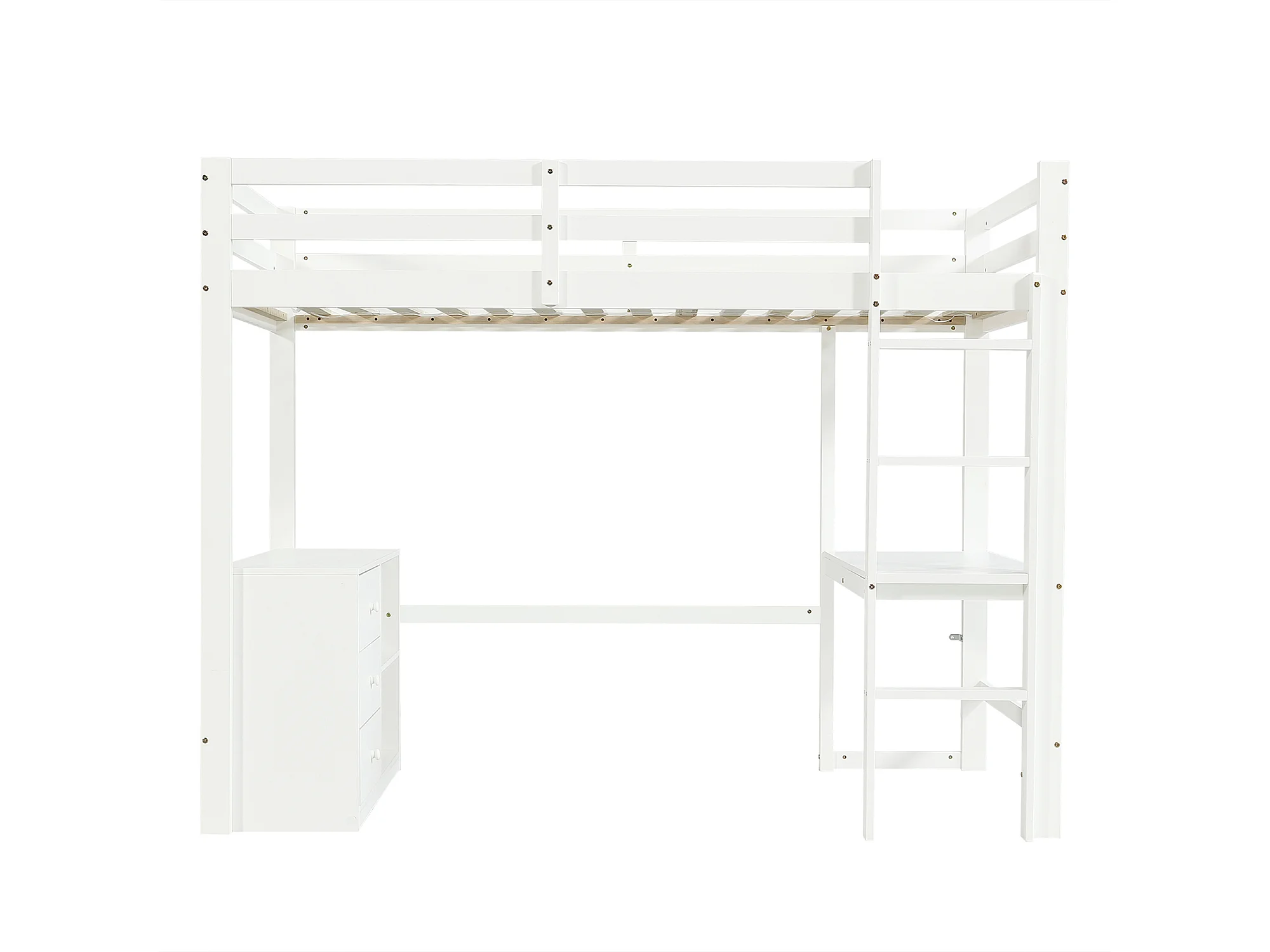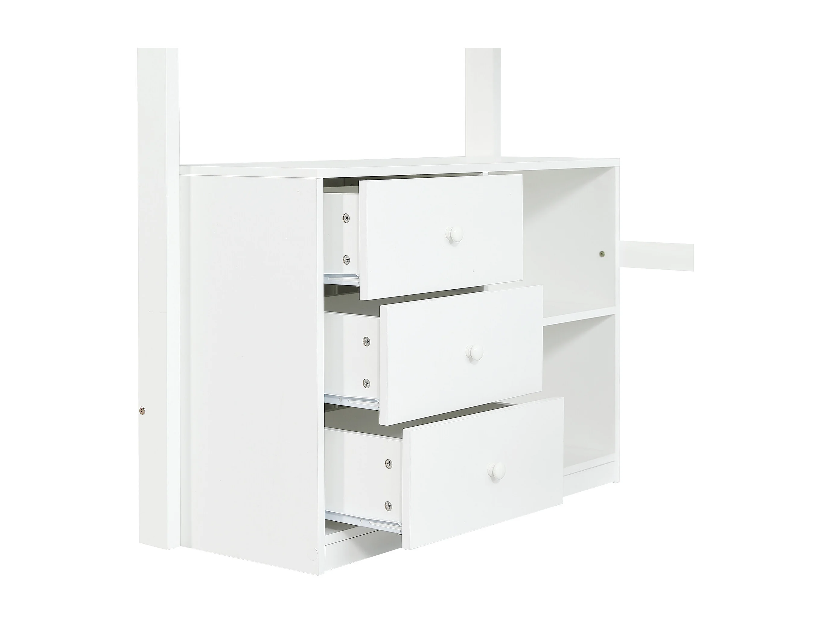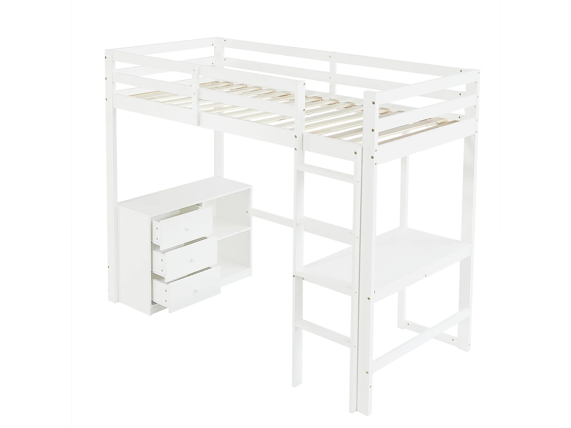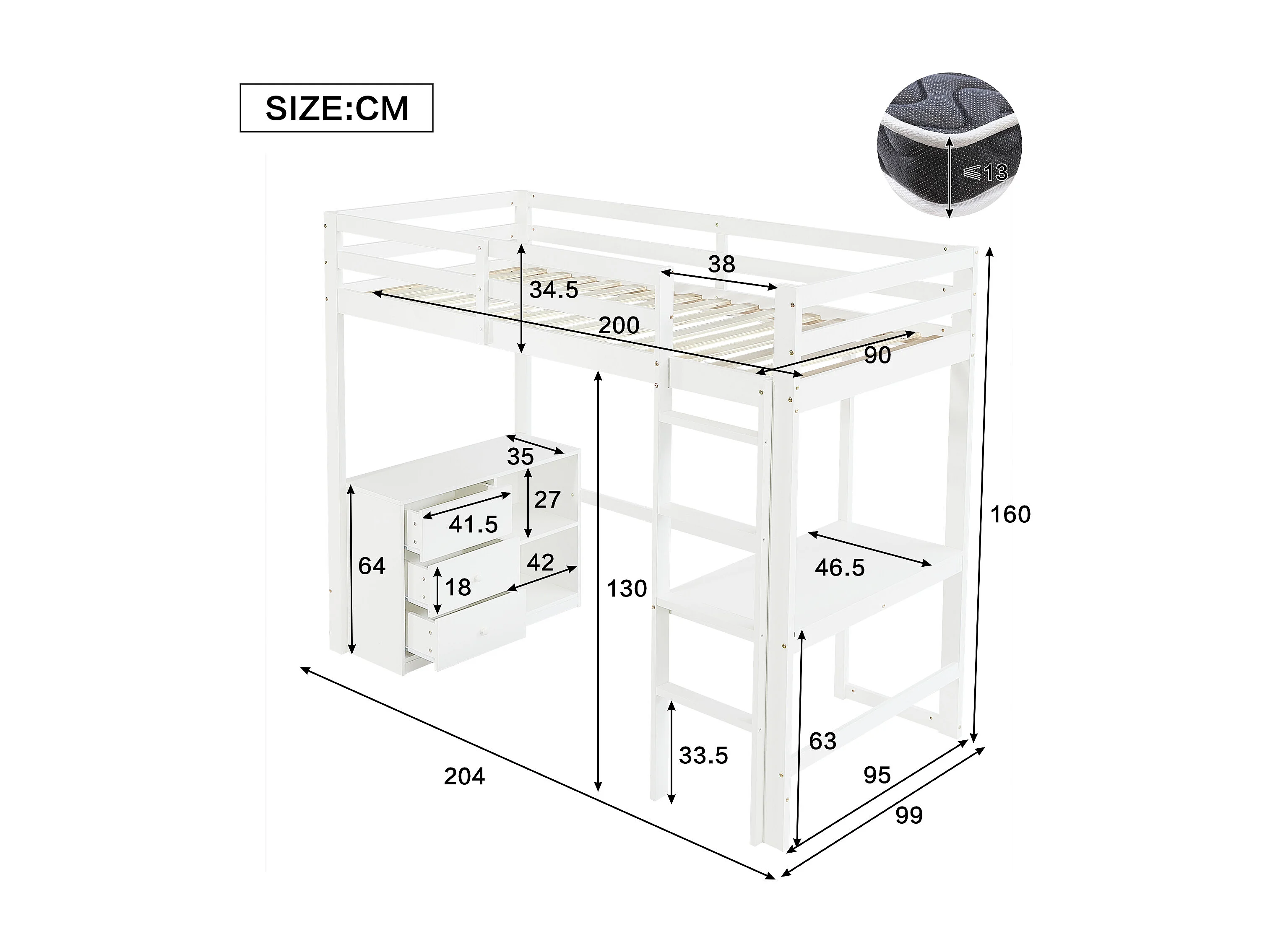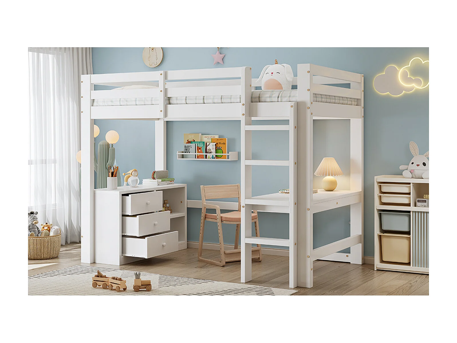 Lit mezzanine enfant 90 x 200 cm avec bureau et 3 tiroirs - Bois en pin et MDF - Blanc