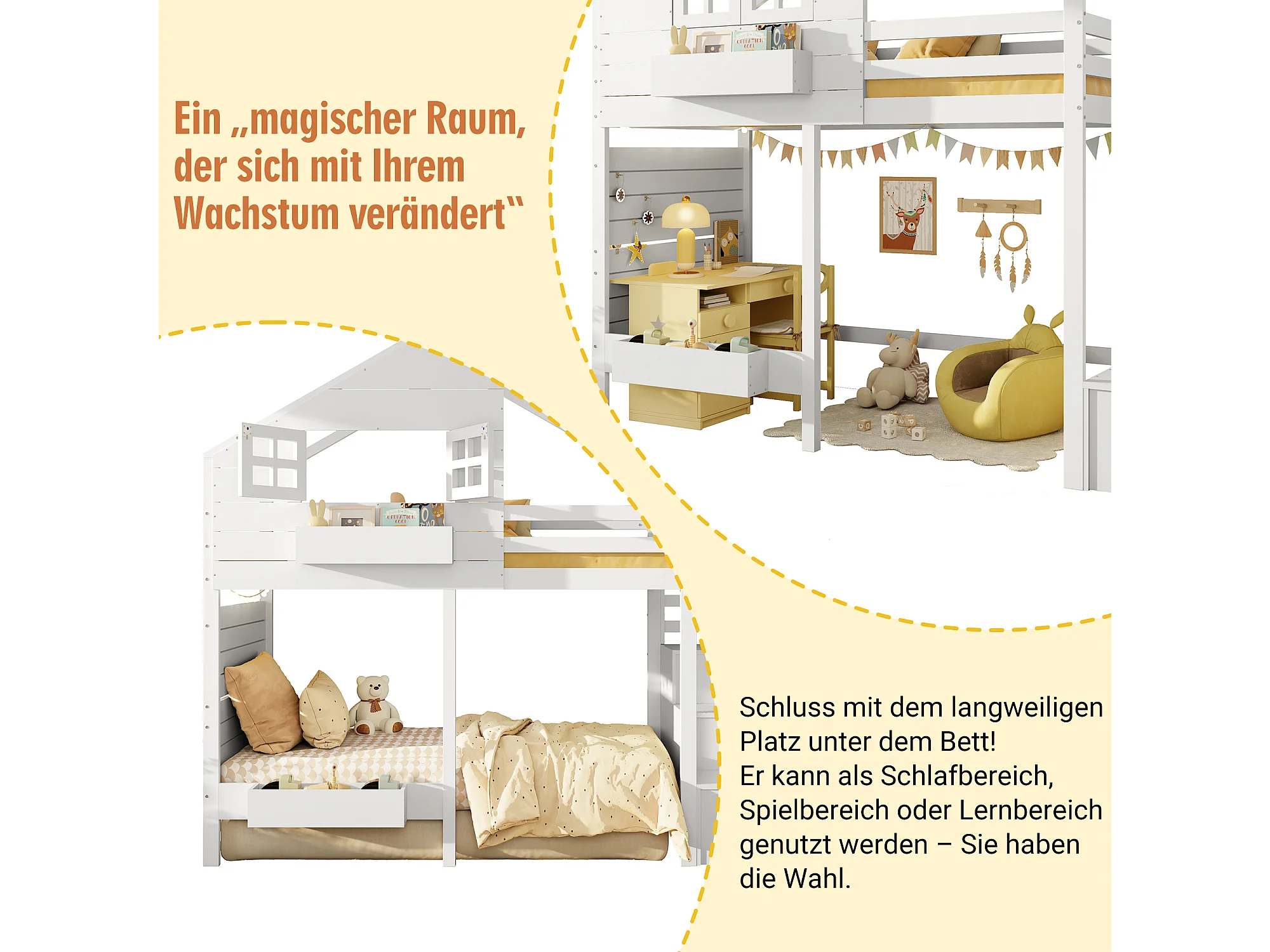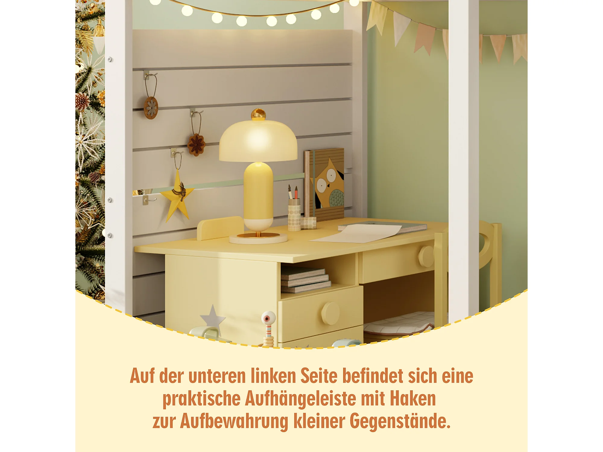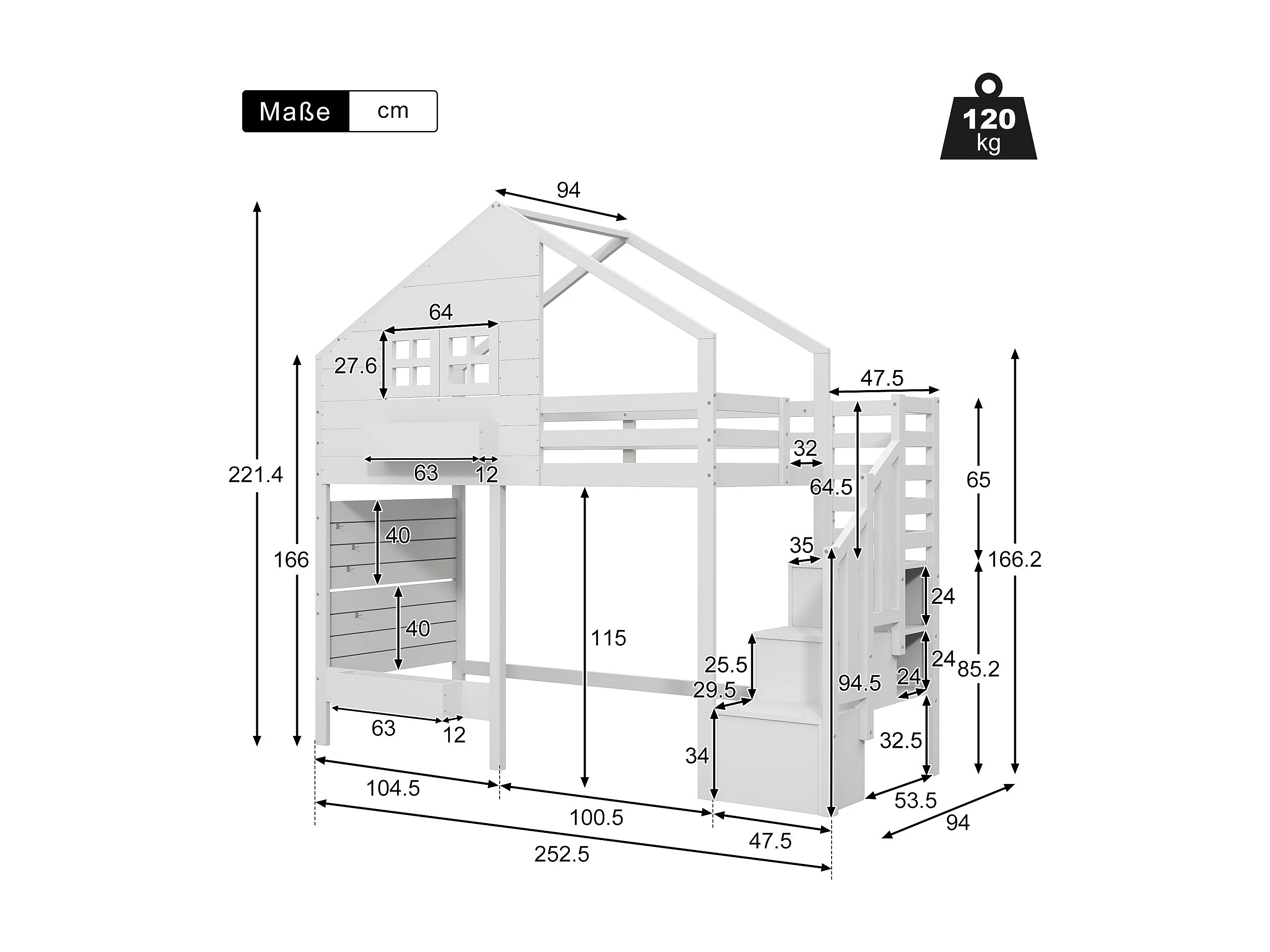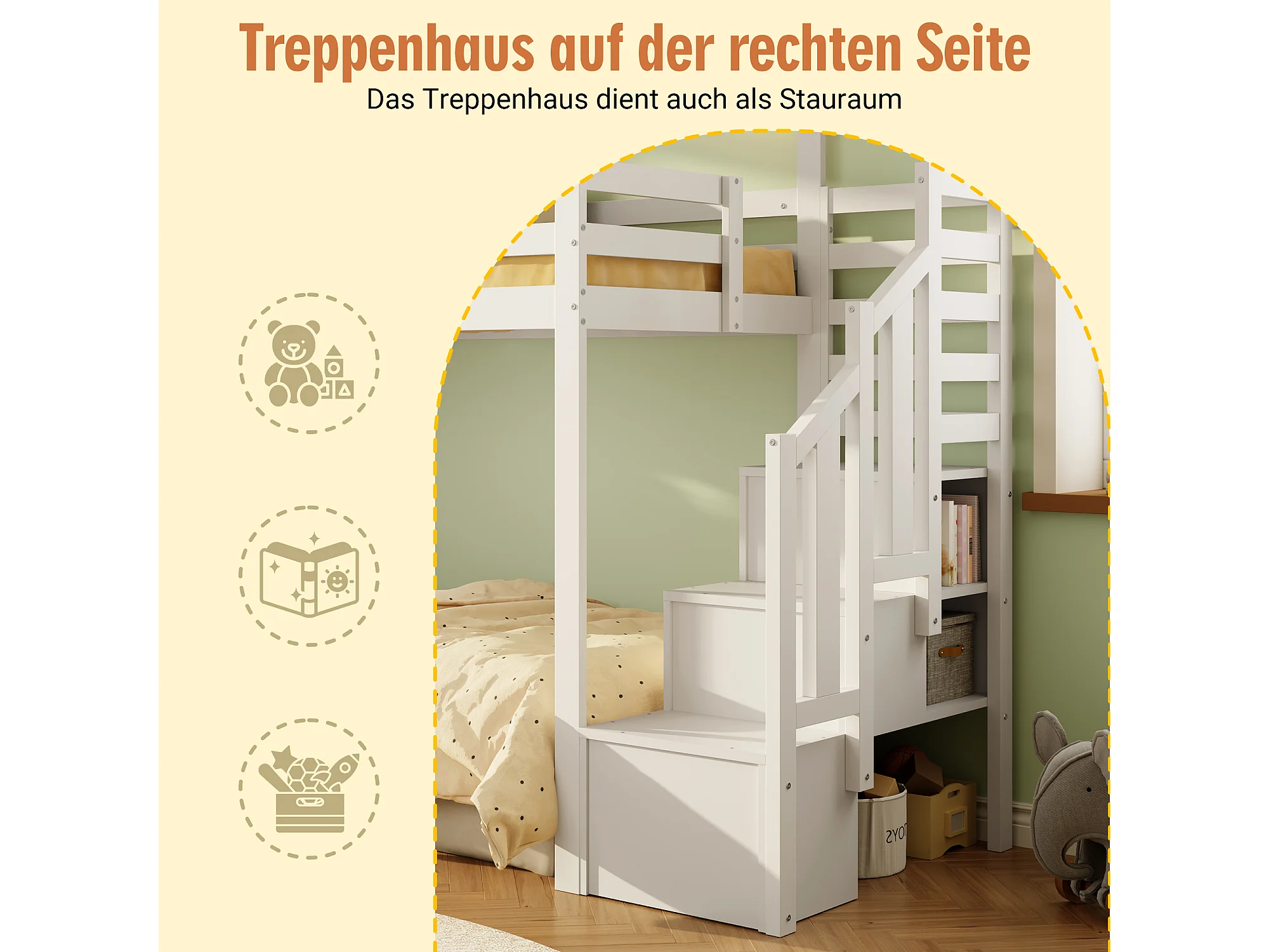 Lit mezzanine enfant - 90 x 200 cm - avec escalier de rangement + fenêtre - bois massif - blanc