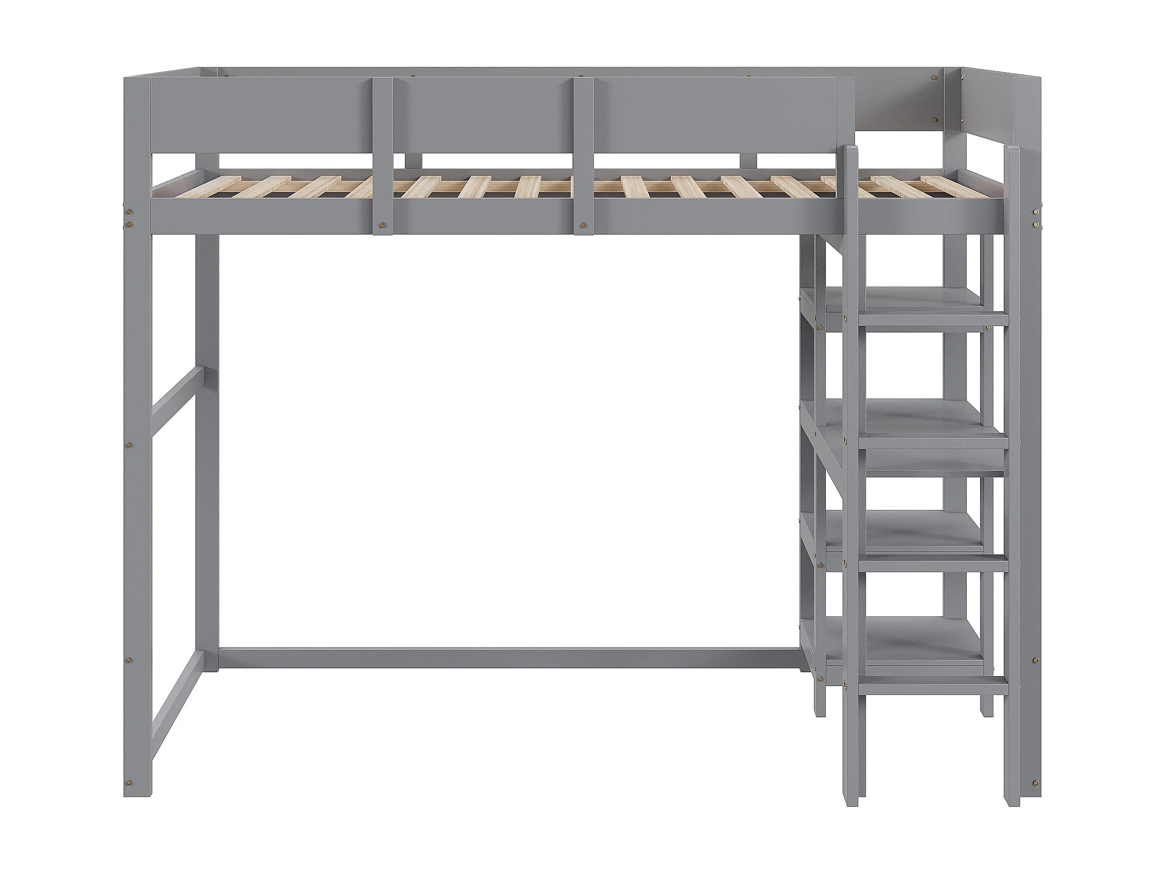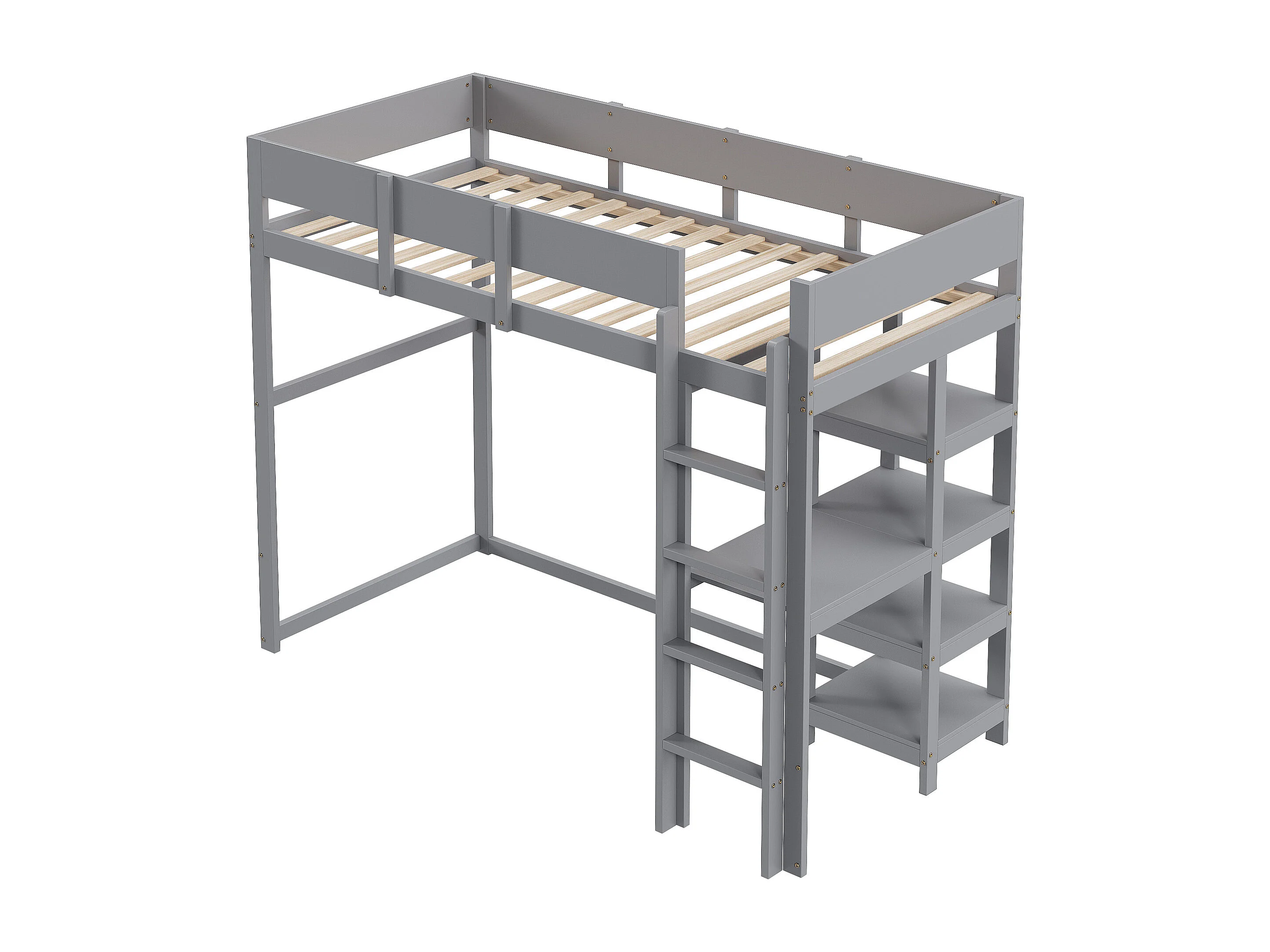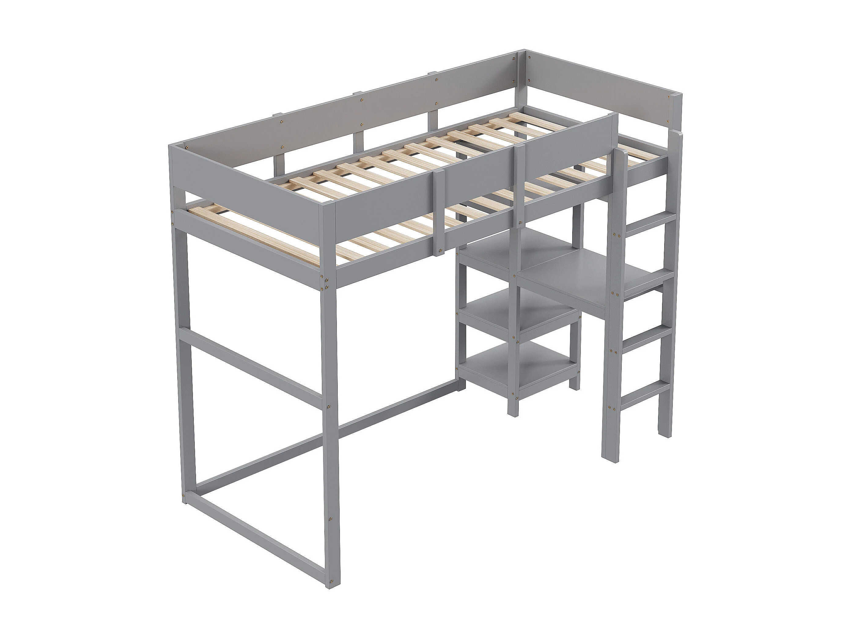 Lit mezzanine enfant 90 x 200 cm avec rangement et sommier à lattes- Cadre en bois pin et MDF- Gris