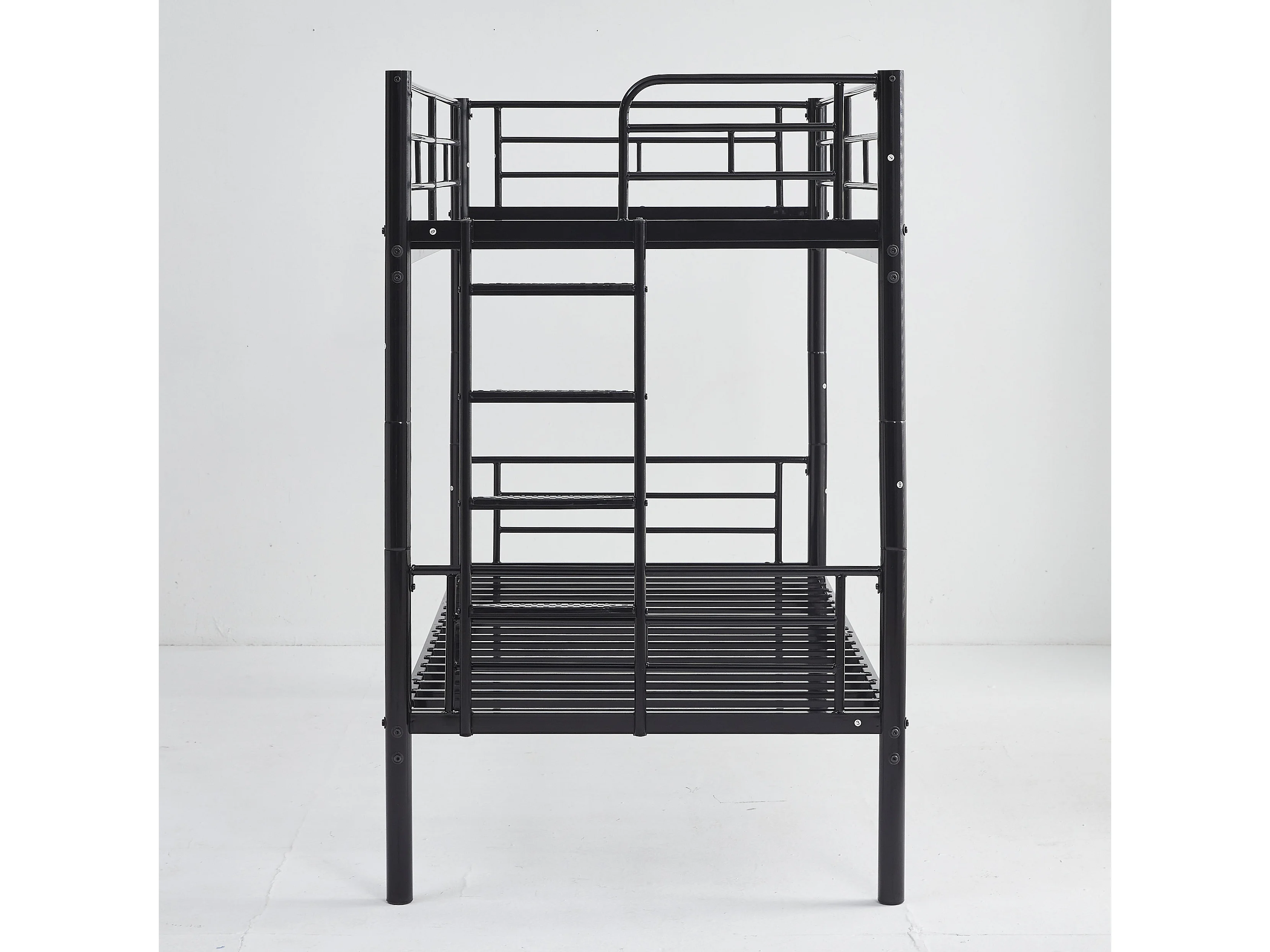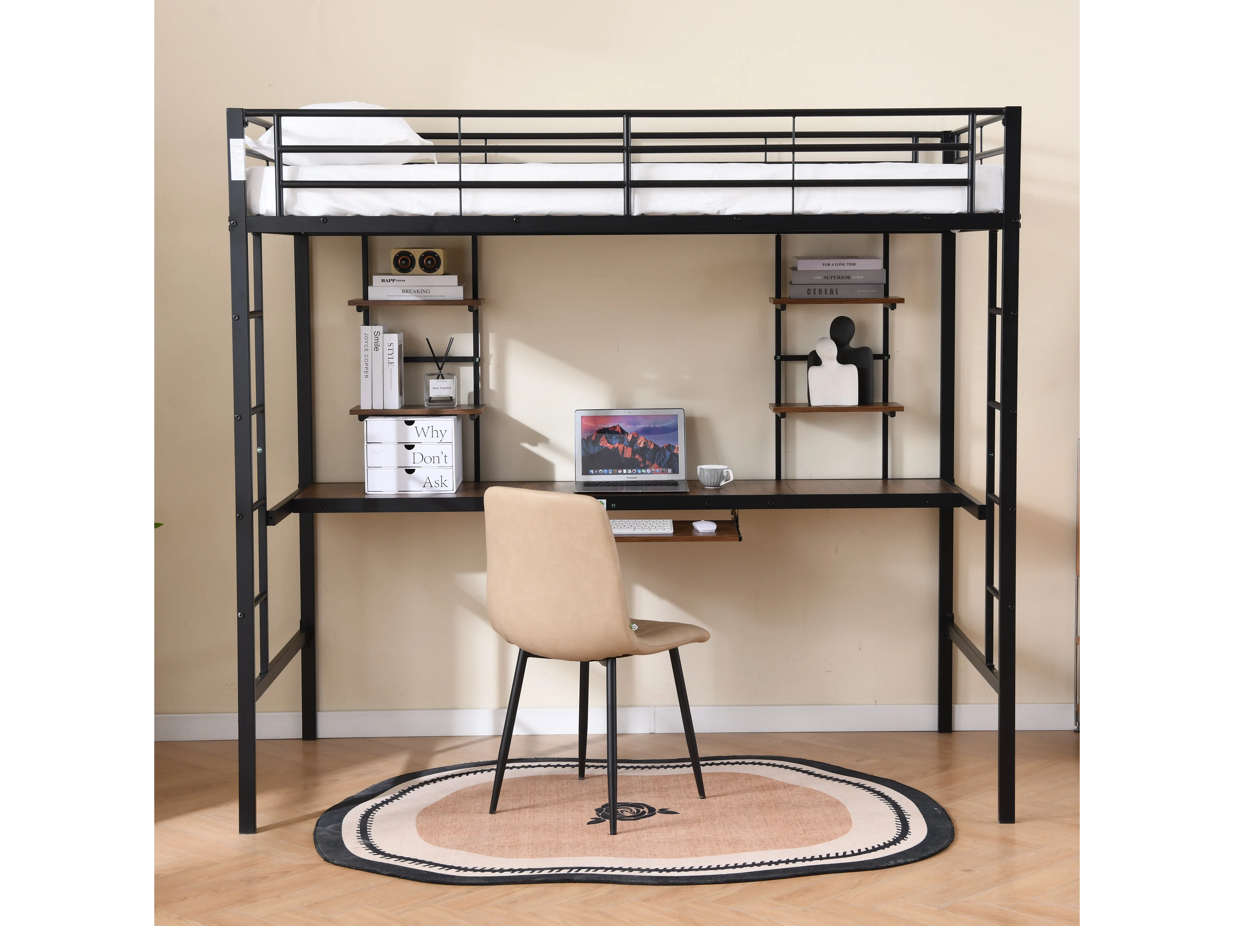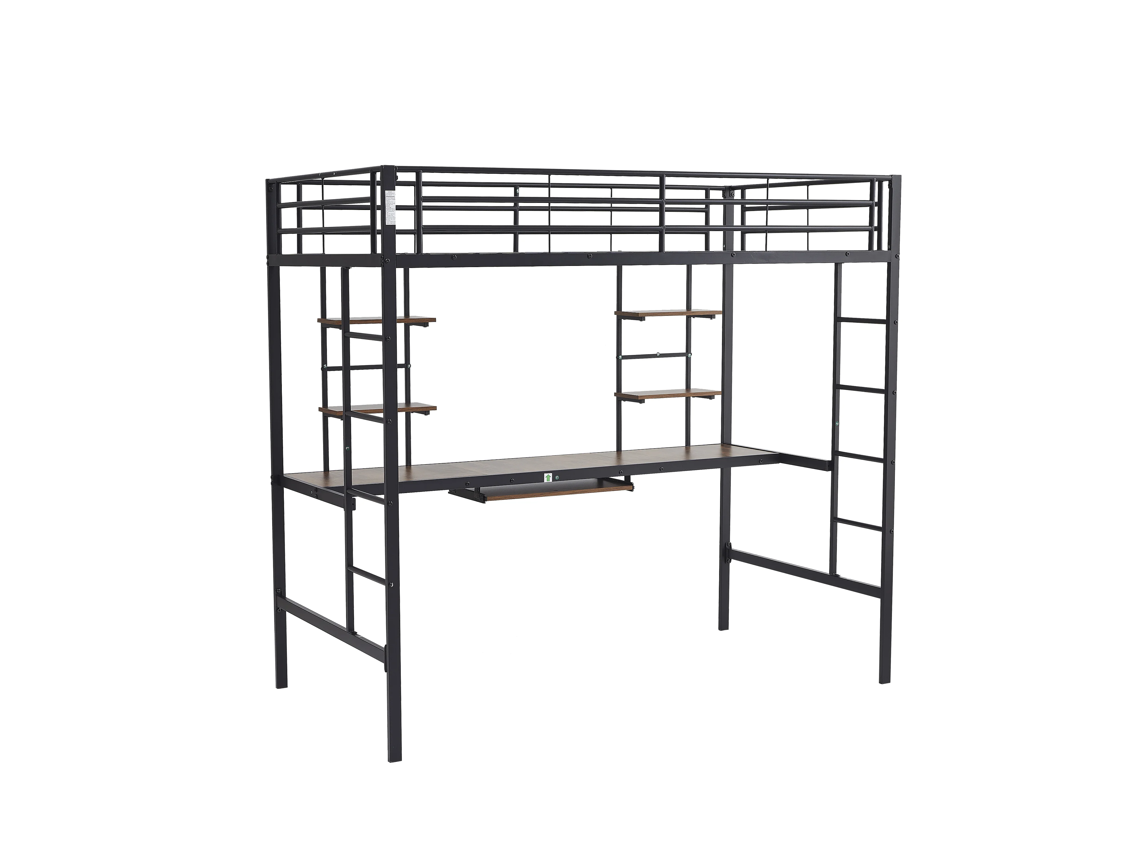 Lit mezzanine enfant 90x190 cm noir avec table, étagère et barrières de sécurité, structure métallique (sans matelas)