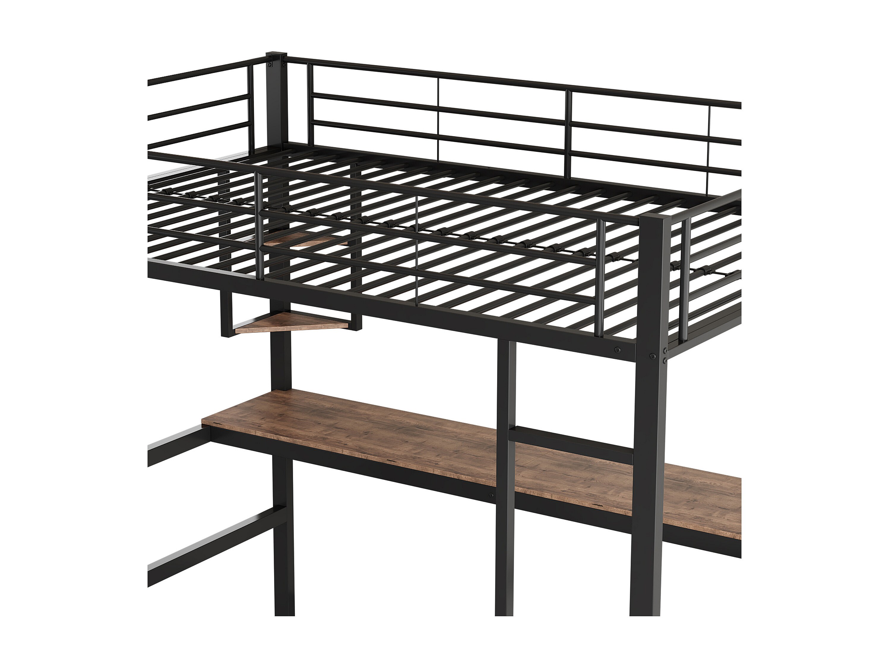 Lit mezzanine enfant 90x200 cm avec bureau et étagère de rangement, noir - sans matelas