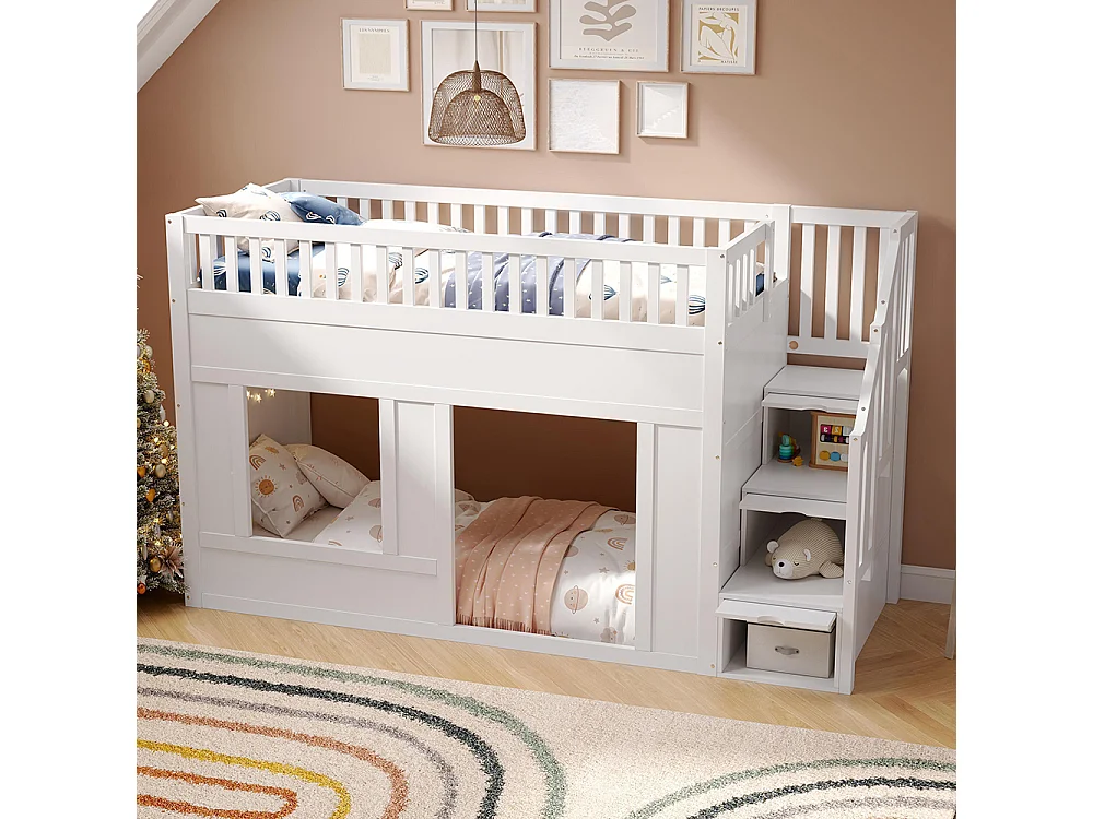 Lit mezzanine enfant 90x200 cm multifonctionnel armoire escalier espace jeu sans matelas blanc