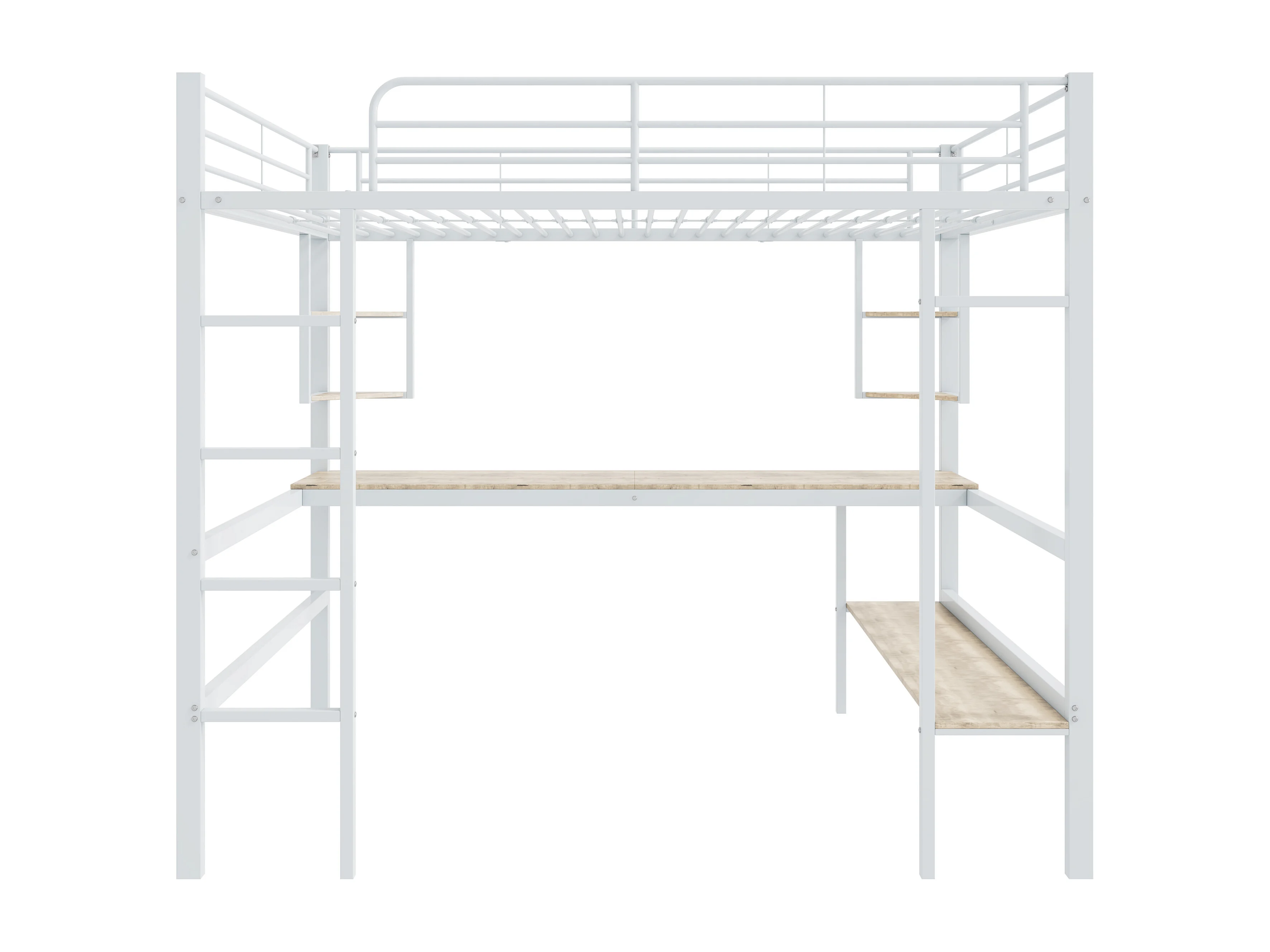 Lit mezzanine 90x200 cm avec sommier - protection anti-chute bureau et rangements - métal - blanc (sans matelas)