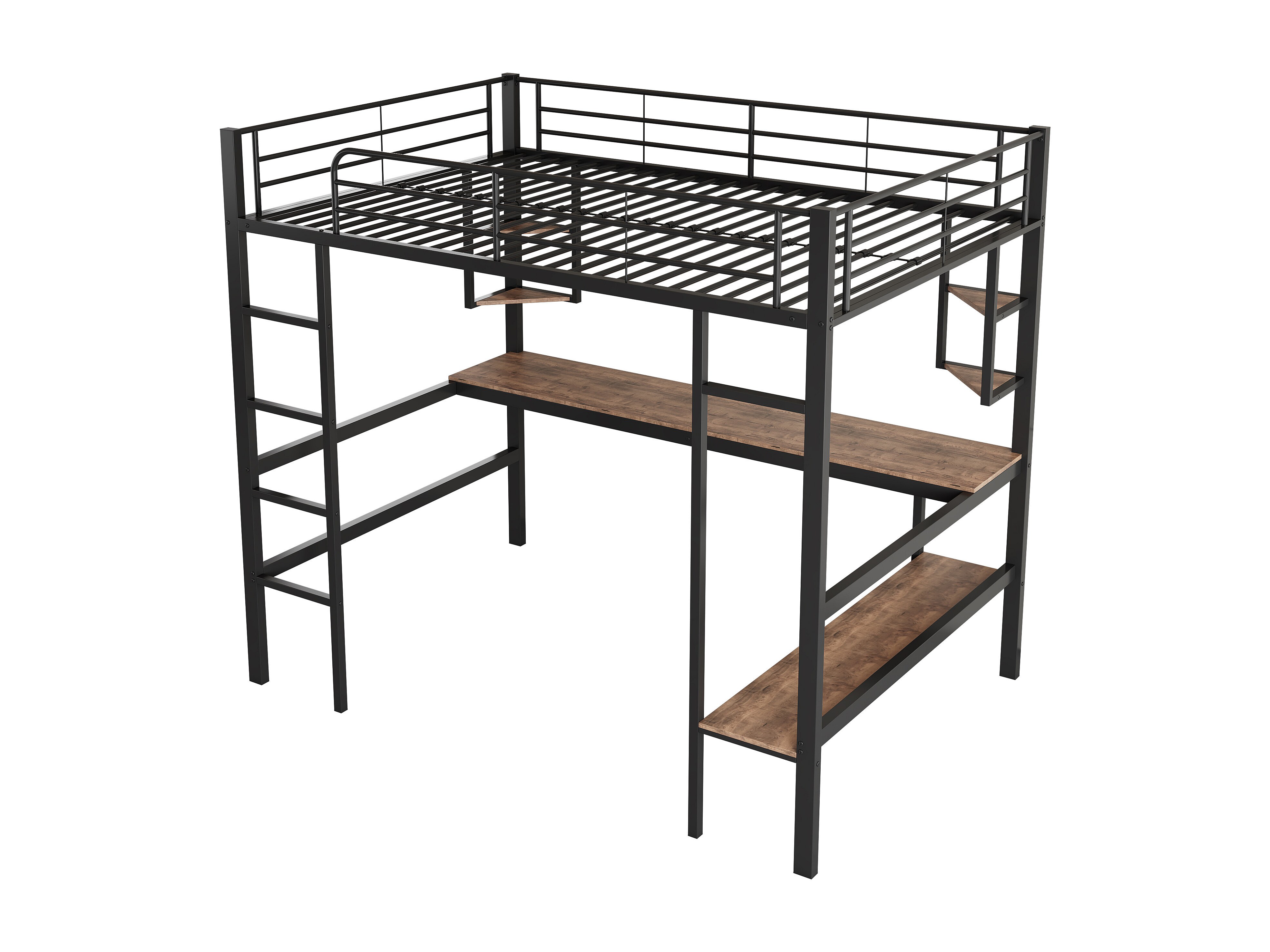 Lit mezzanine enfant 90x200cm avec sommier - protection anti-chute bureau et rangements - métal - noir (sans matelas)