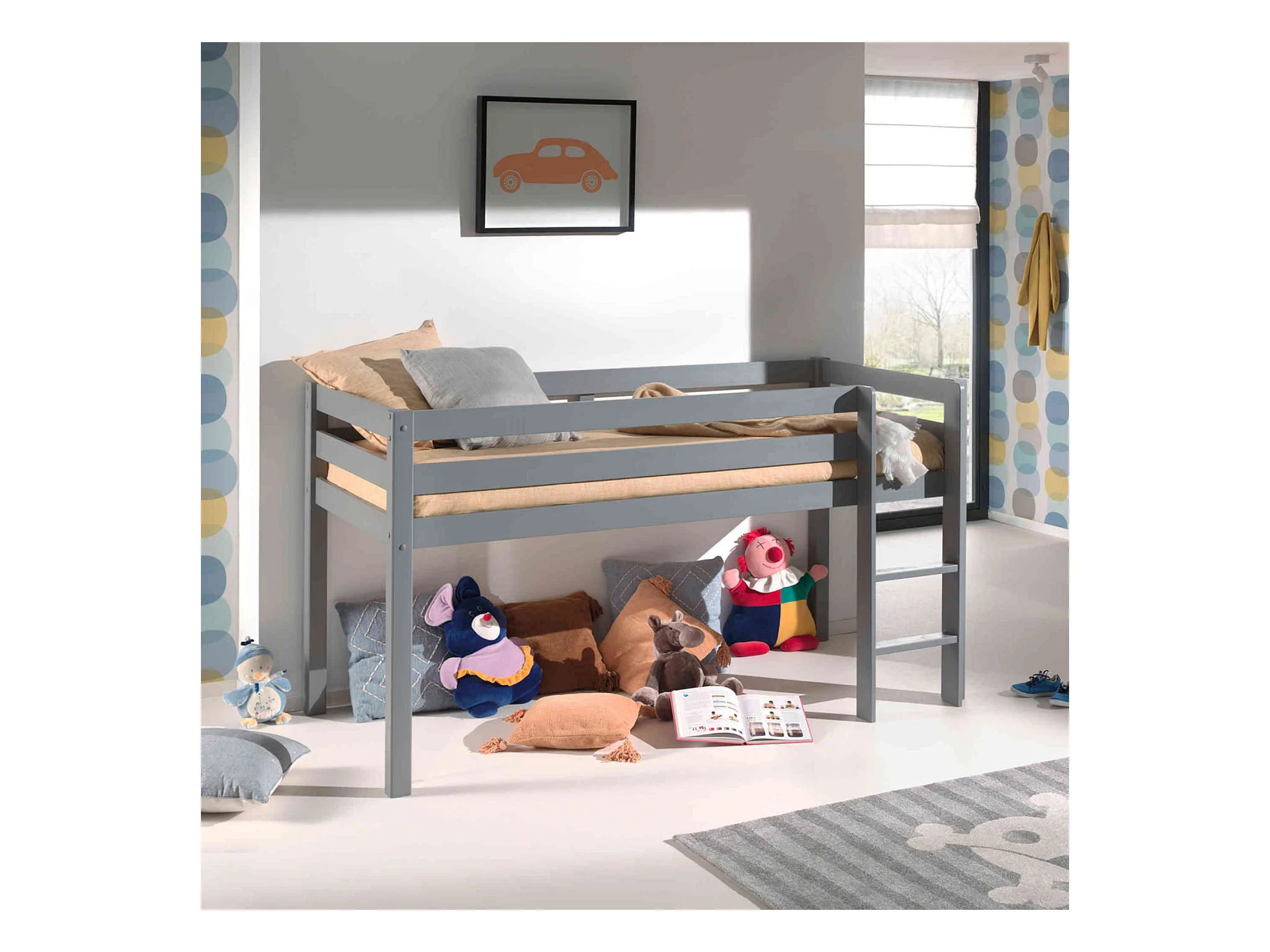 Lit mezzanine enfant en bois massif gris 90x20 cm - LT2039