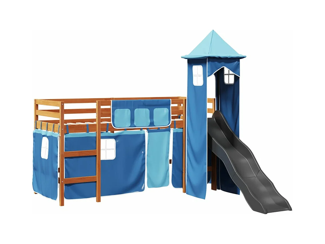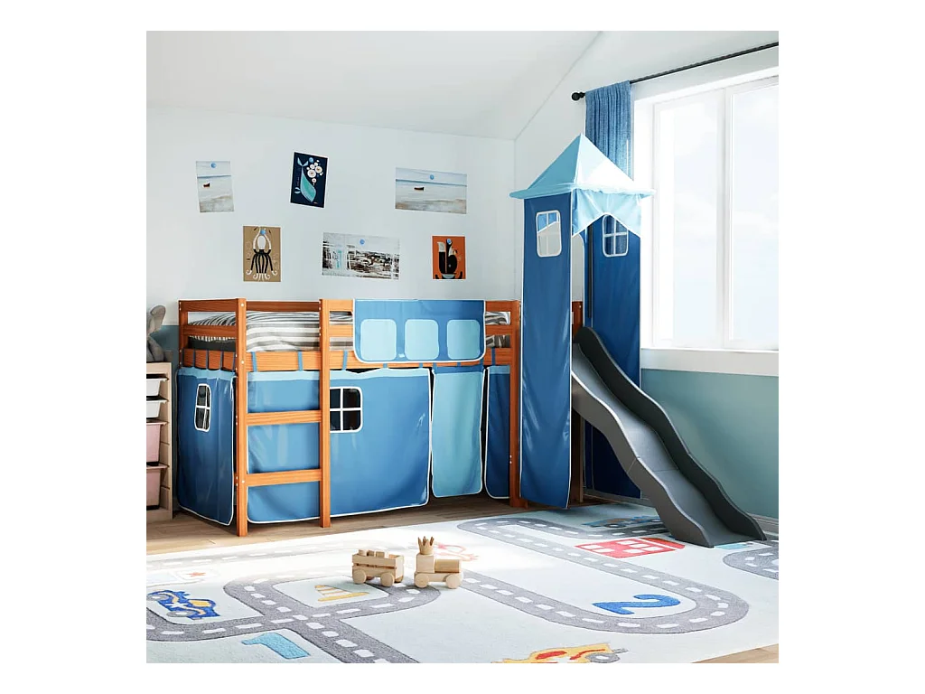 Lit mezzanine enfants avec tour bleu 80x200cm bois pin massif