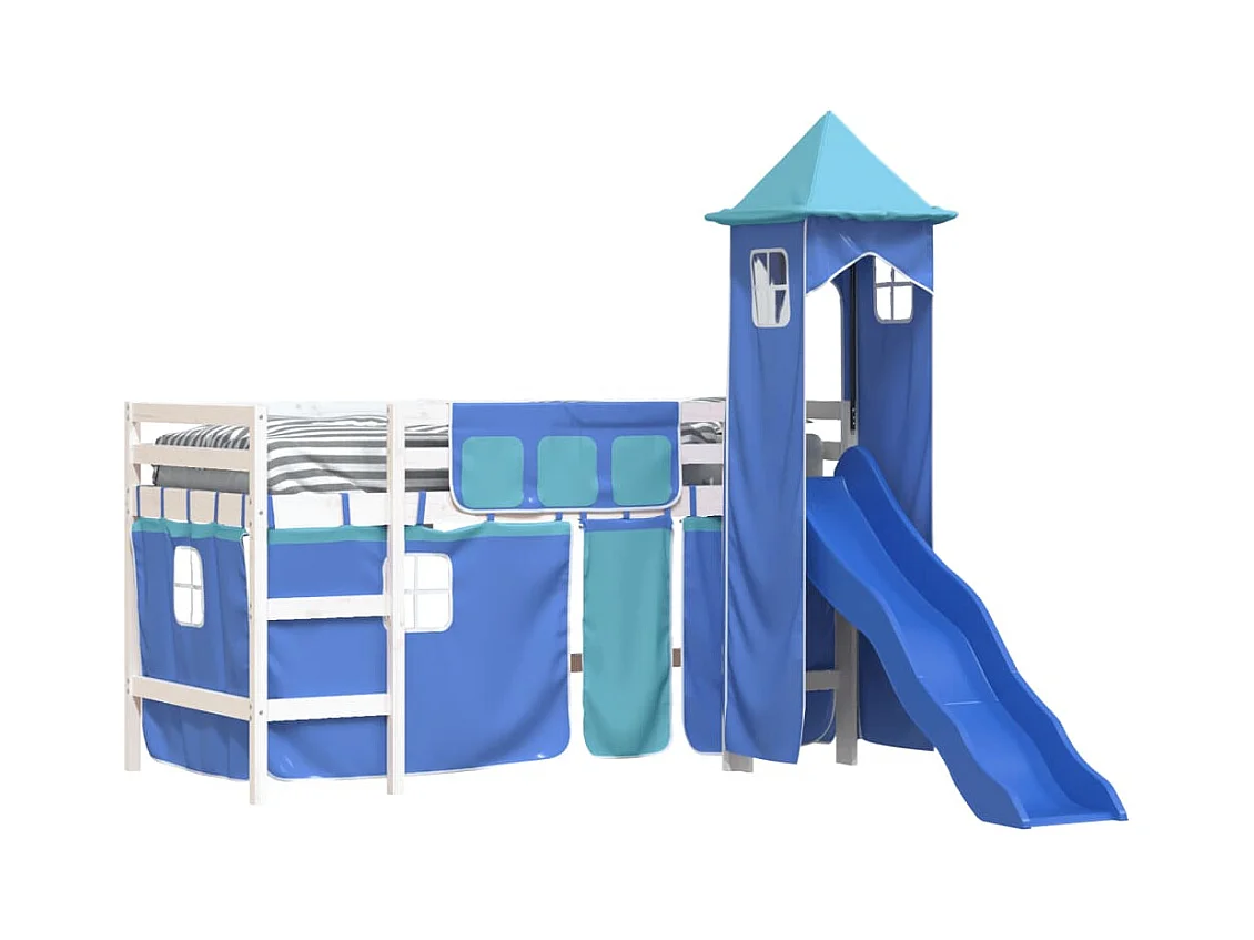 Lit mezzanine enfants avec tour bleu 80x200cm bois pin massif HOQW42393