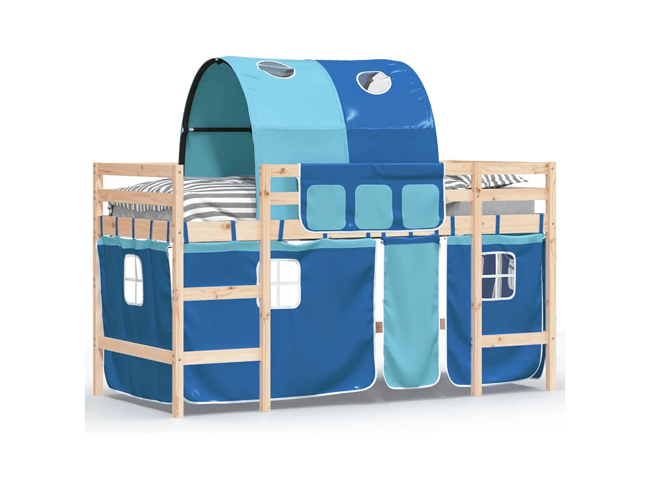 Lit mezzanine enfants avec tunnel bleu 80x200 bois pin massif