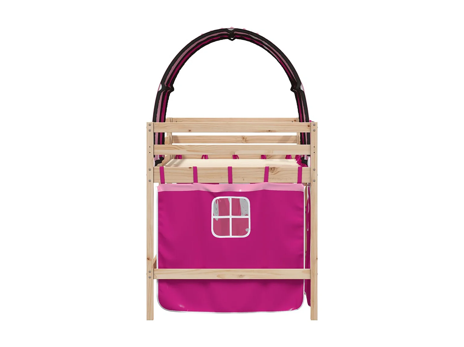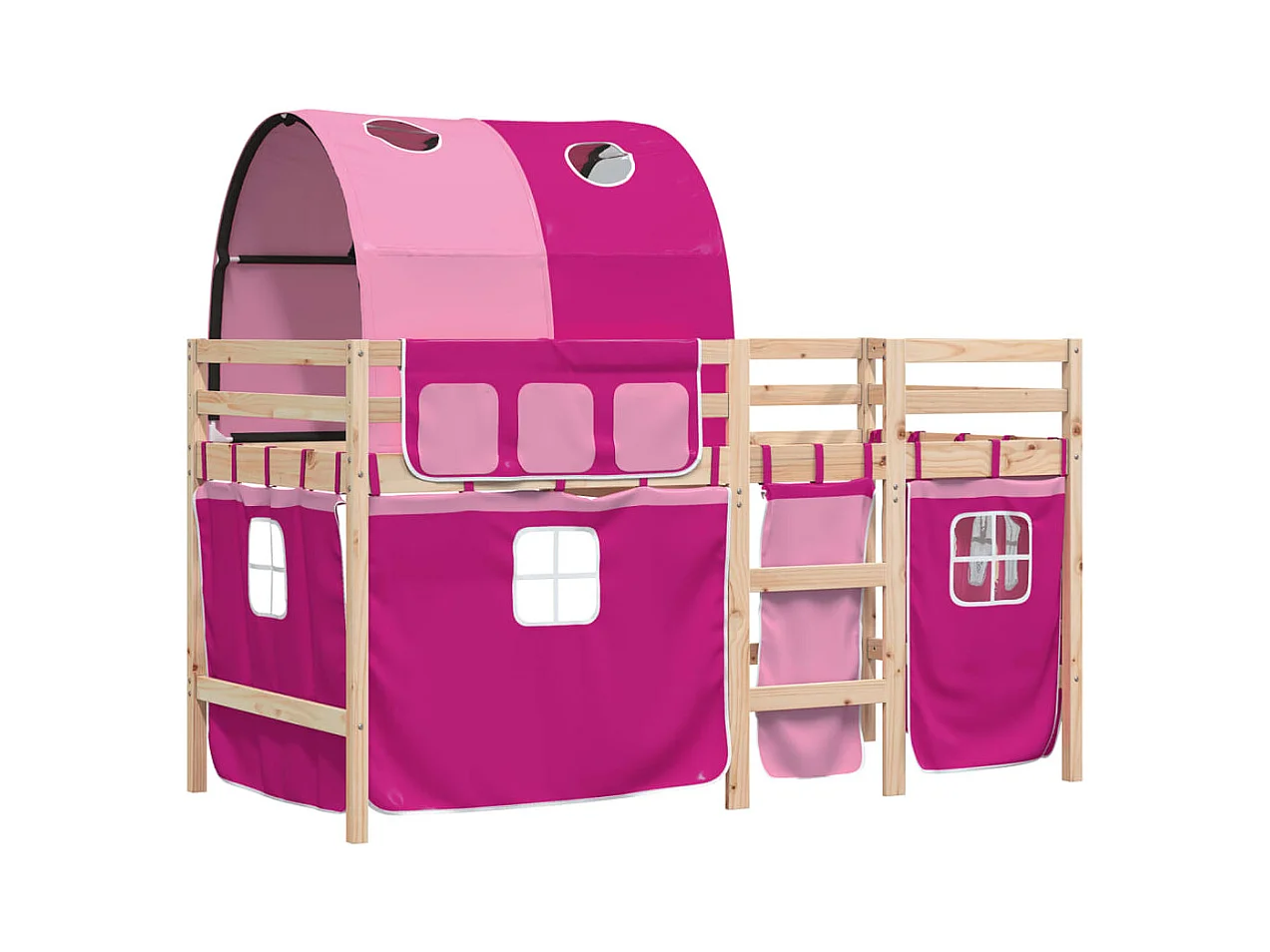 Lit mezzanine enfants avec tunnel rose 90x200 bois pin massif
