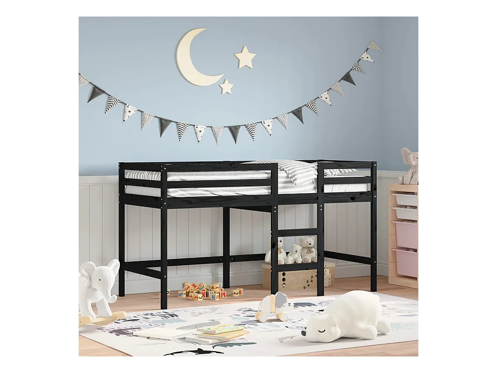 Lit mezzanine enfants échelle 90x190 cm bois pin massif HOQW24020