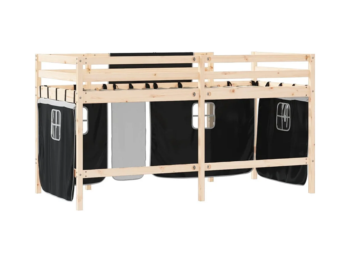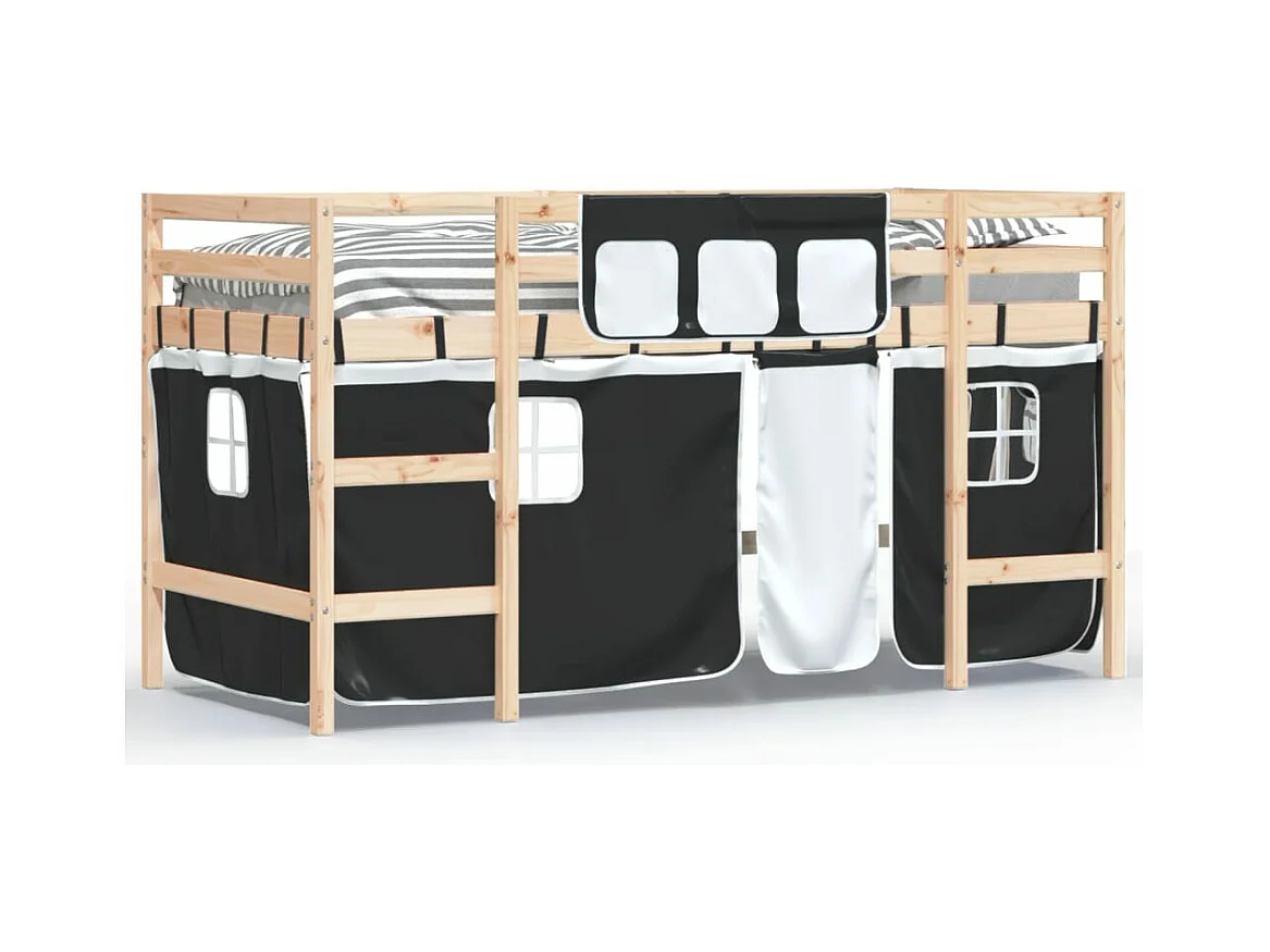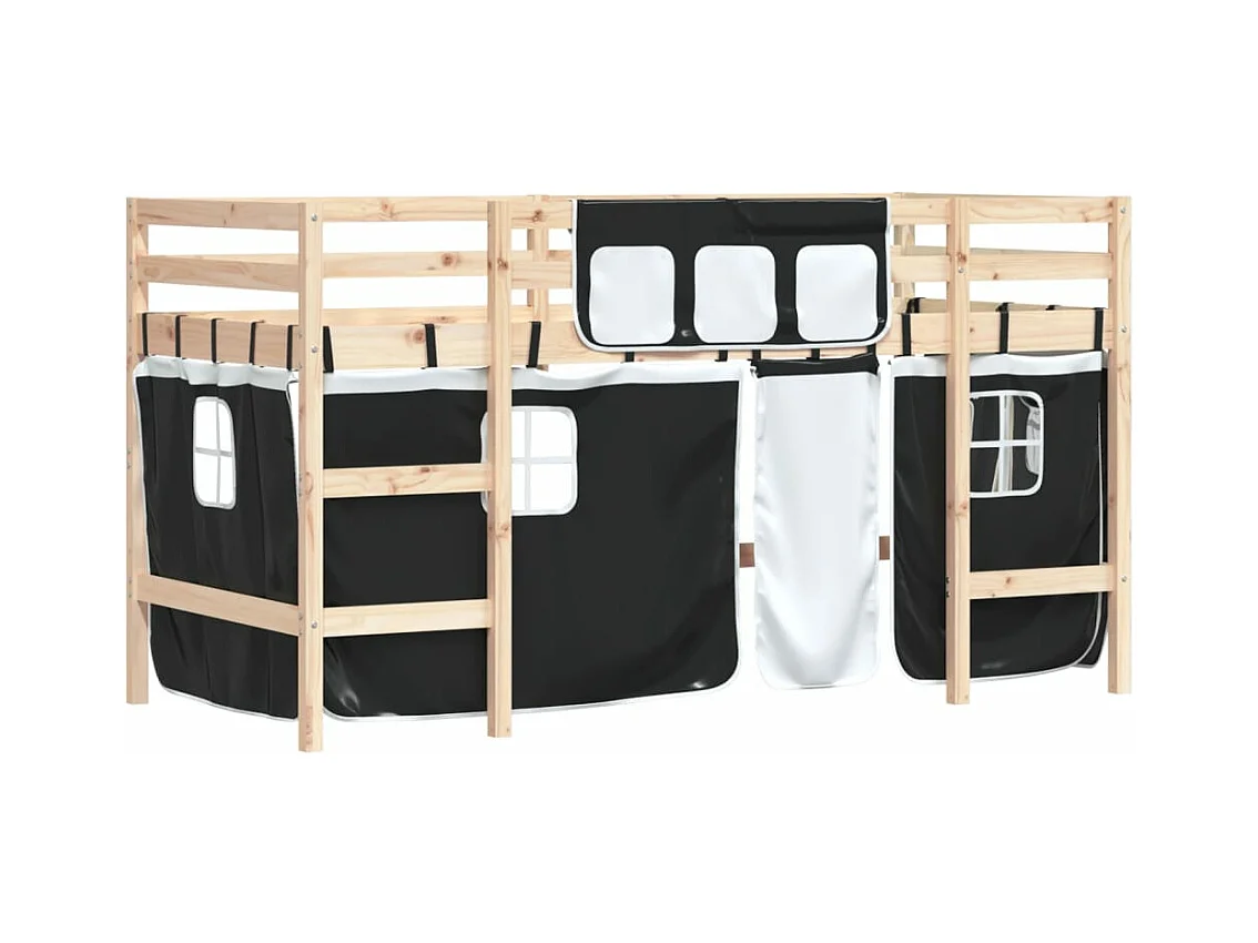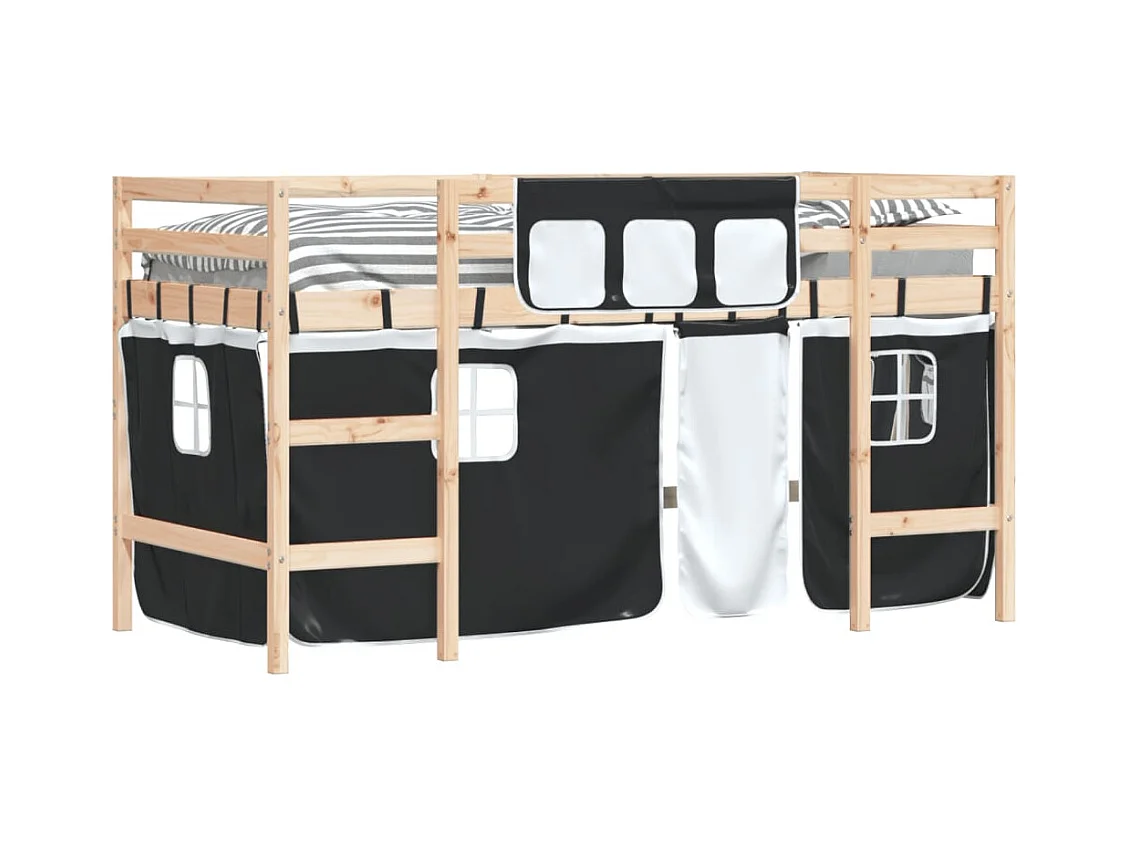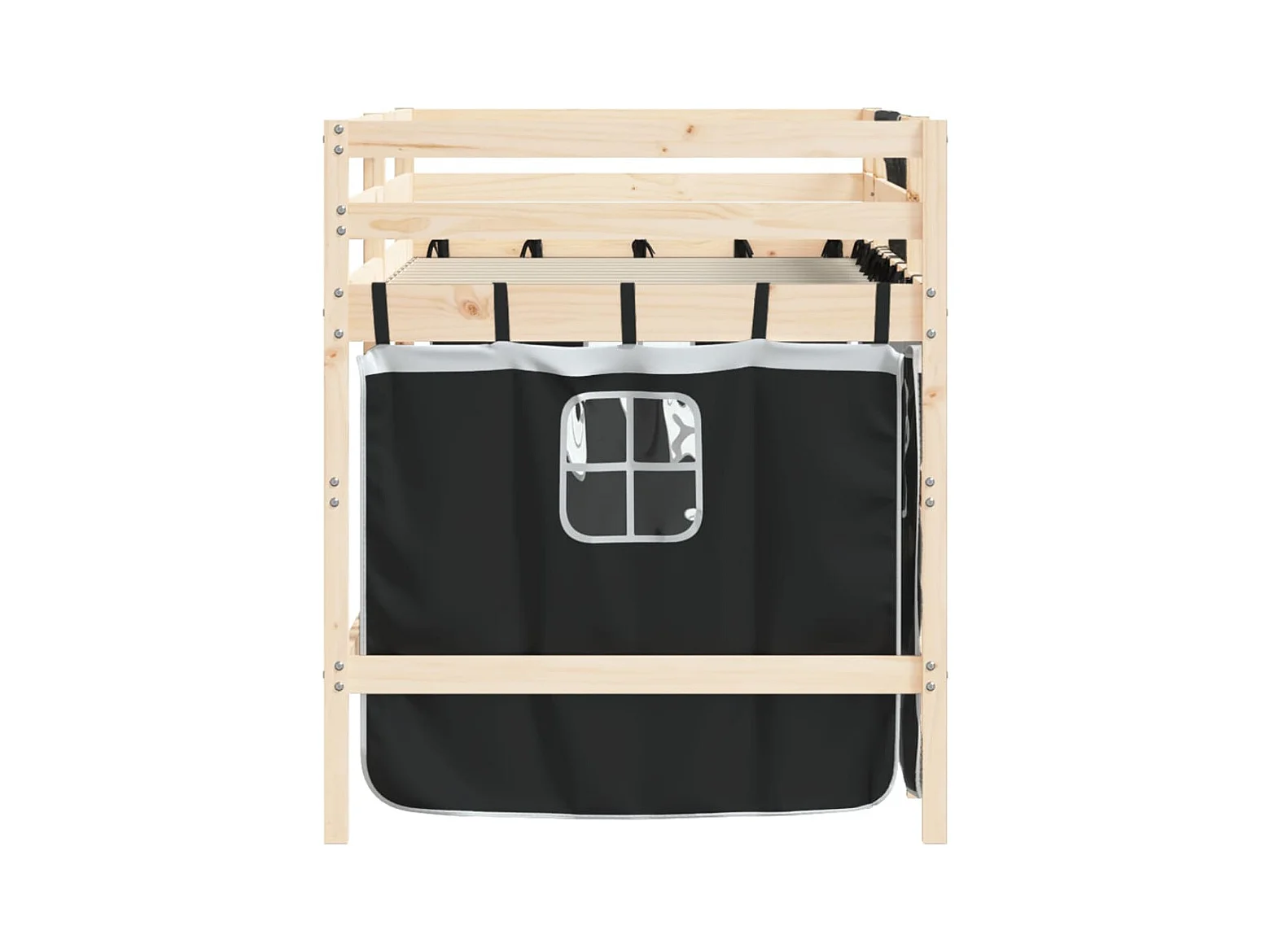 Lit mezzanine enfants et rideaux blanc-noir 80x200 pin massif