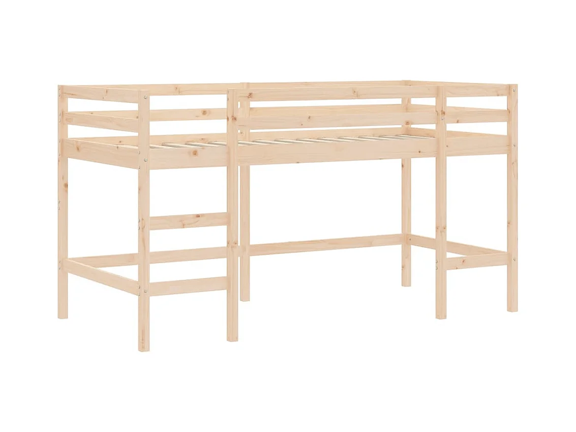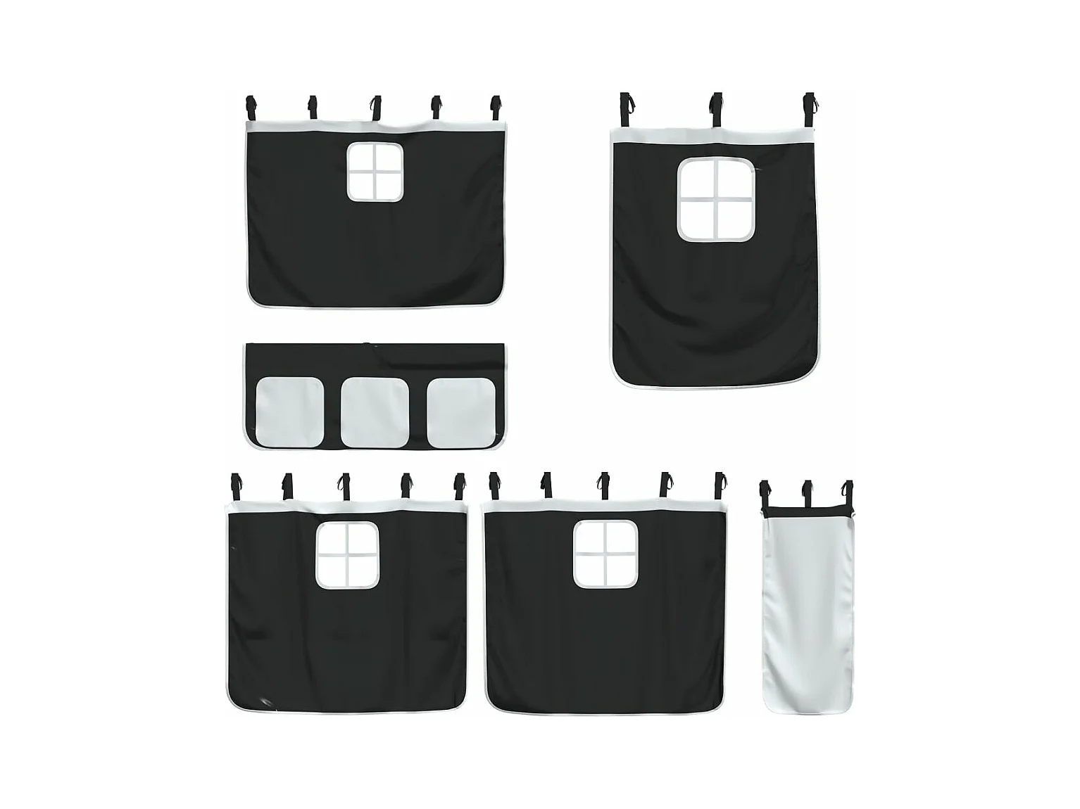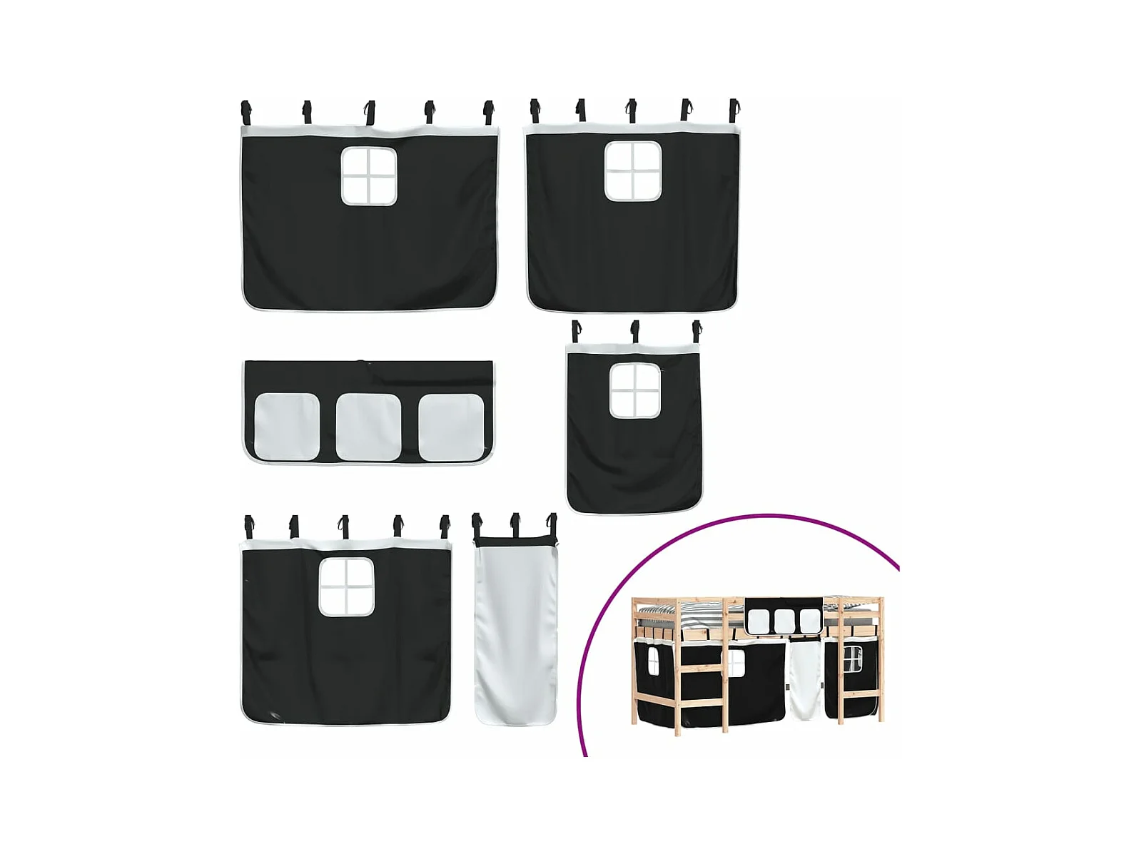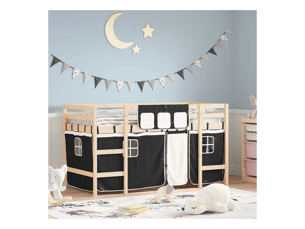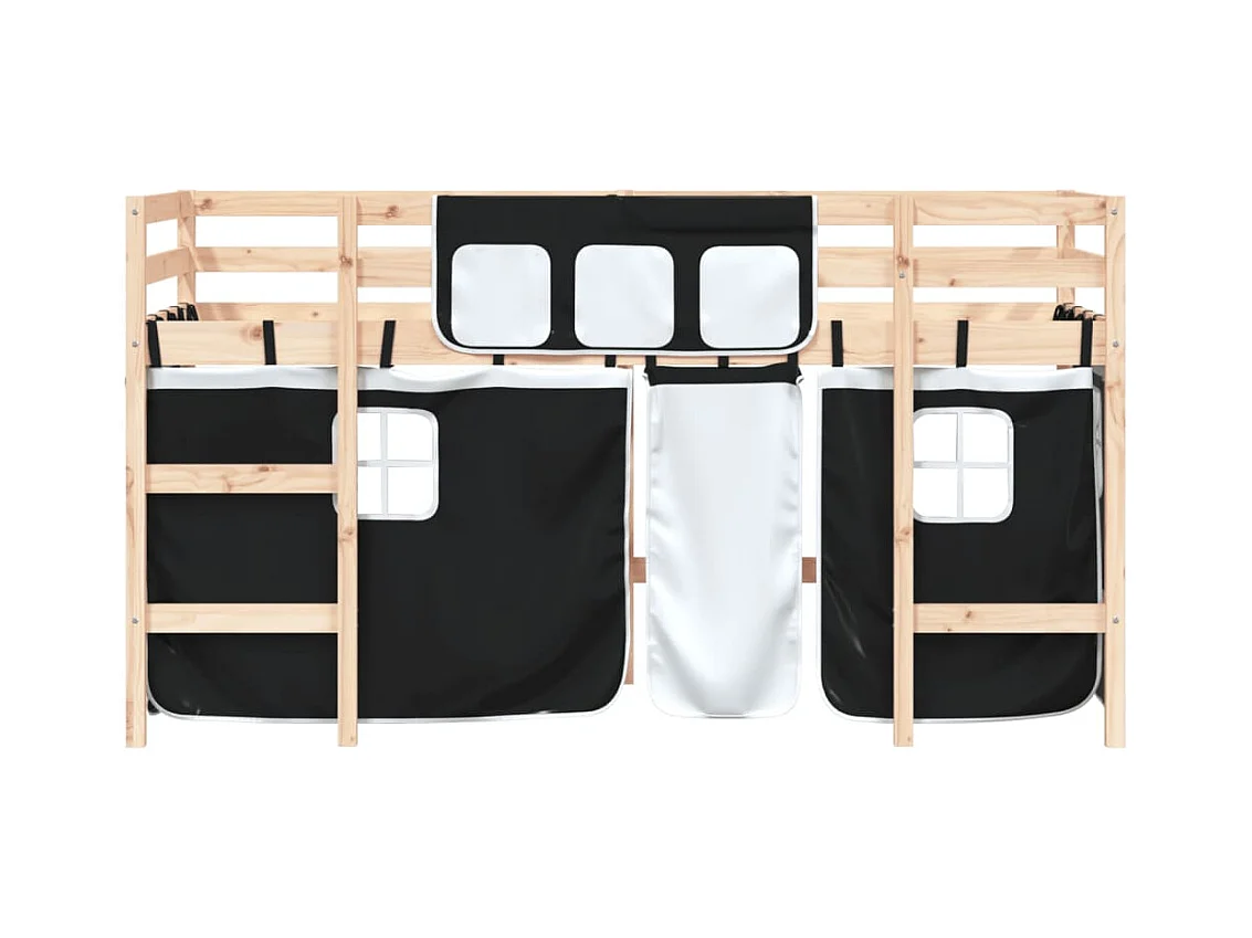 Lit mezzanine enfants et rideaux blanc-noir 80x200 pin massif