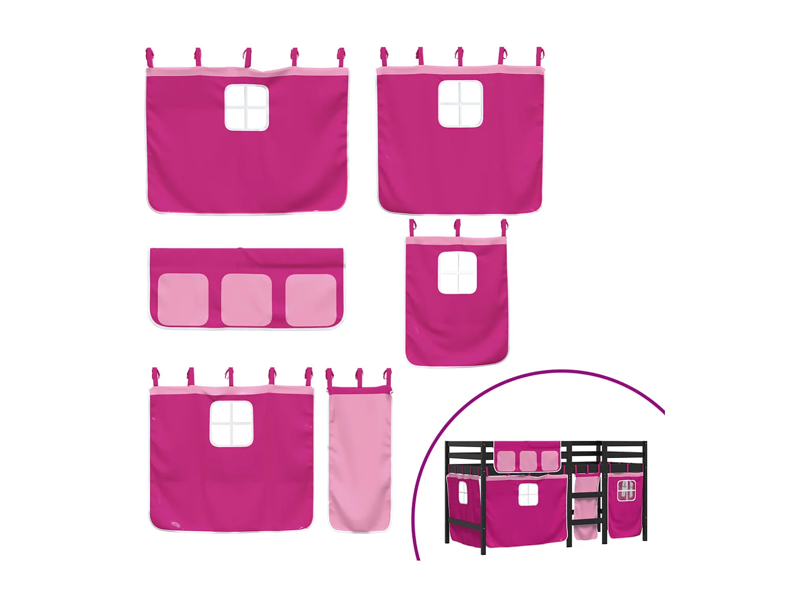 Lit mezzanine enfants et rideaux rose 80x200 bois pin massif