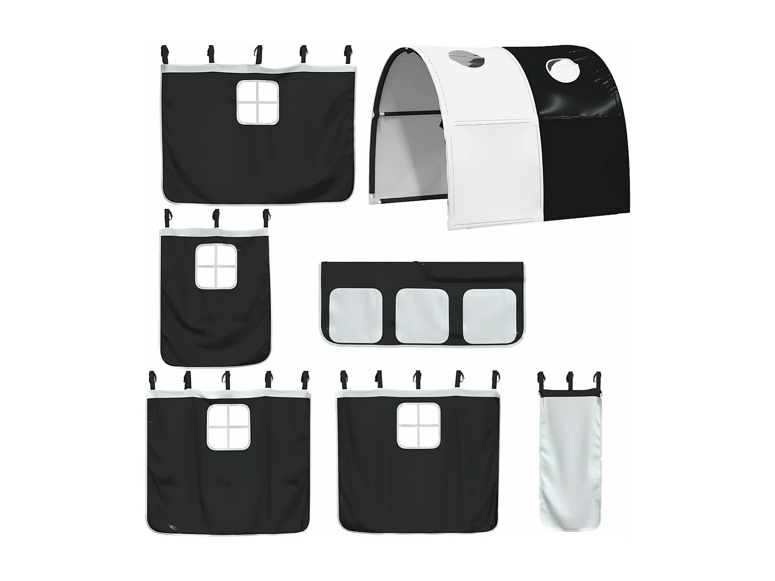 Lit mezzanine enfants et tunnel blanc/noir 80x200cm pin massif