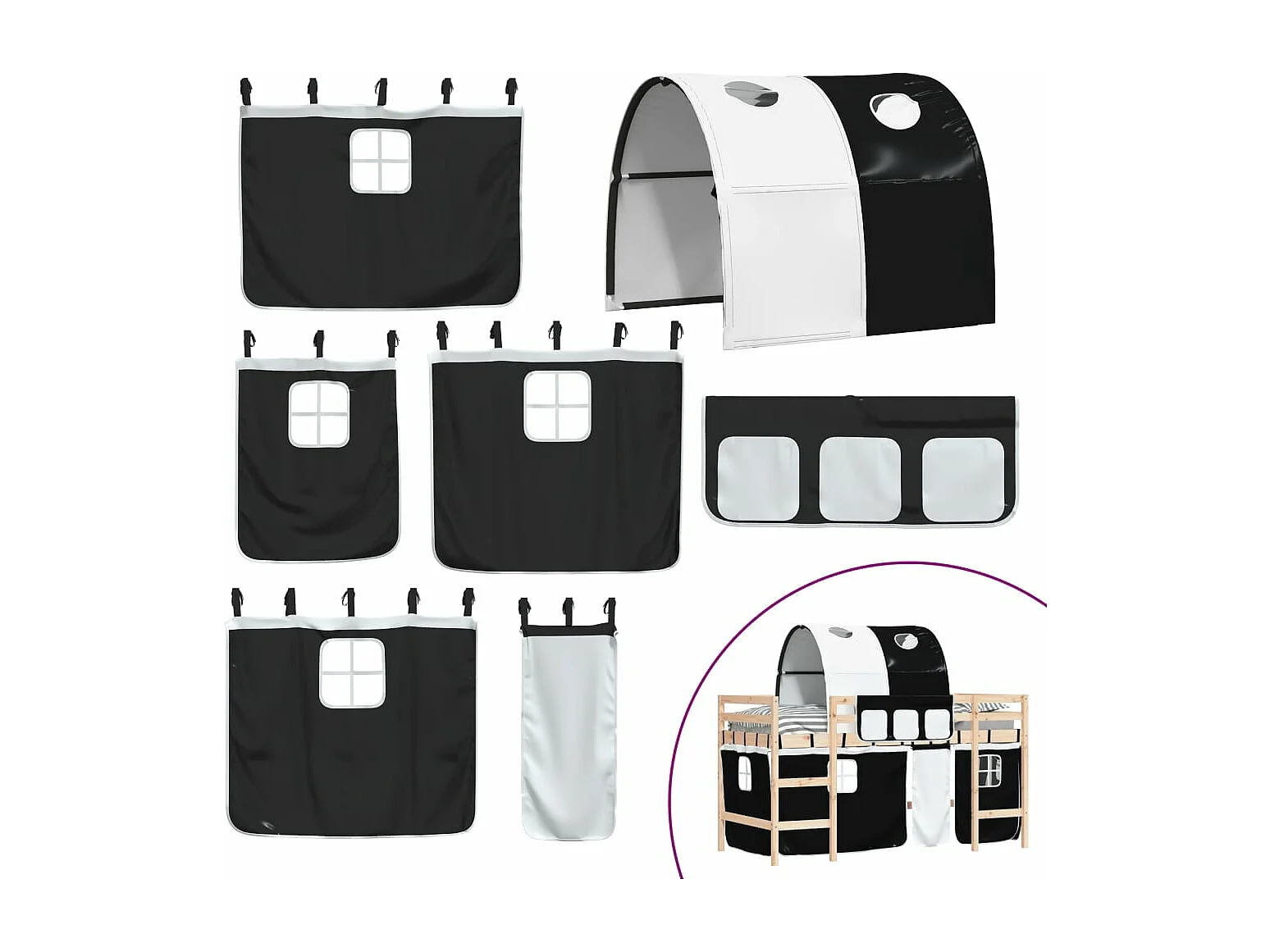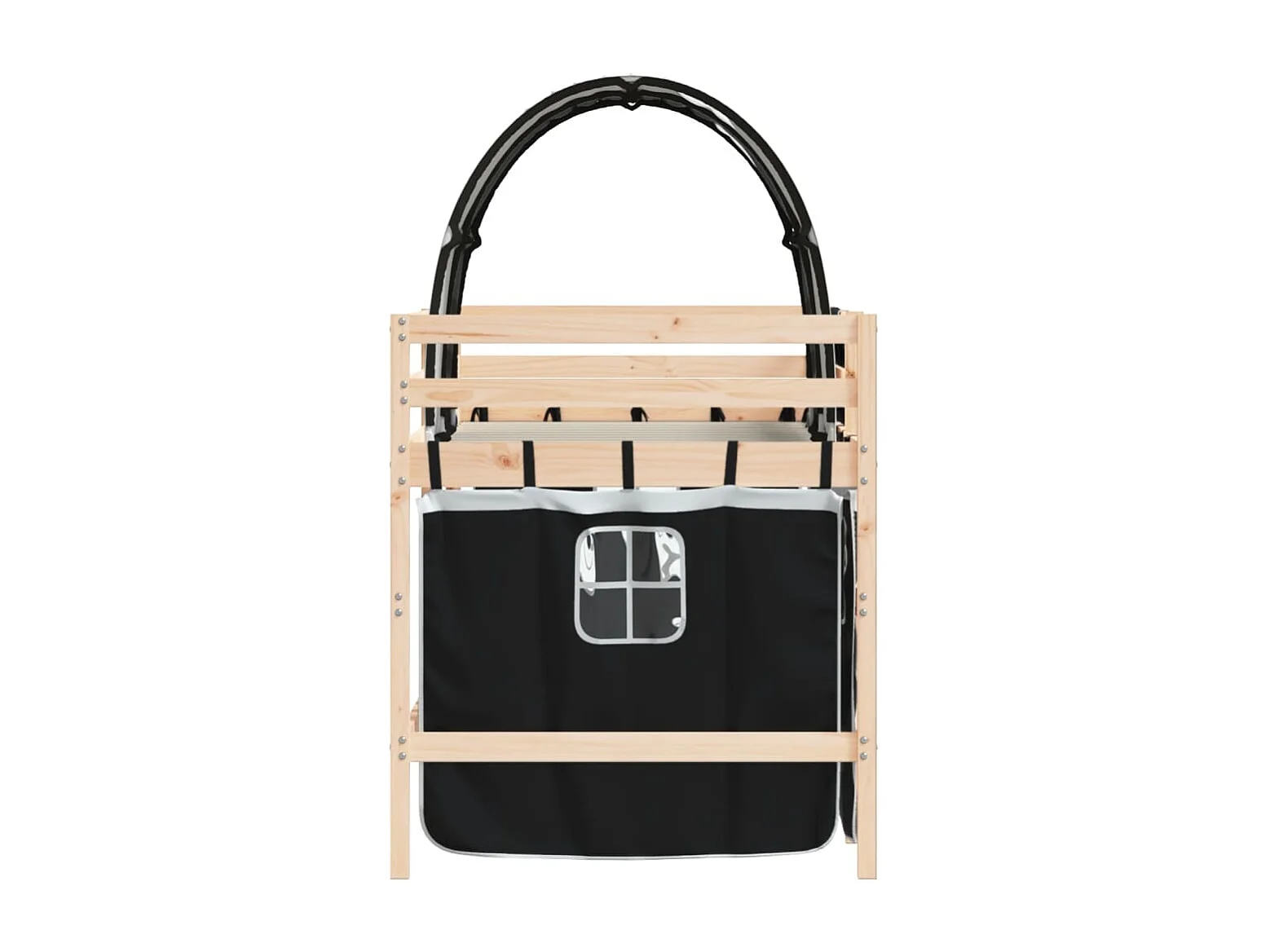 Lit mezzanine enfants et tunnel blanc-noir 90x190 pin massif