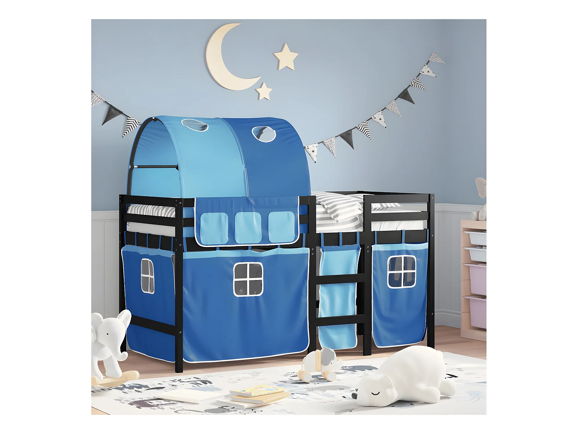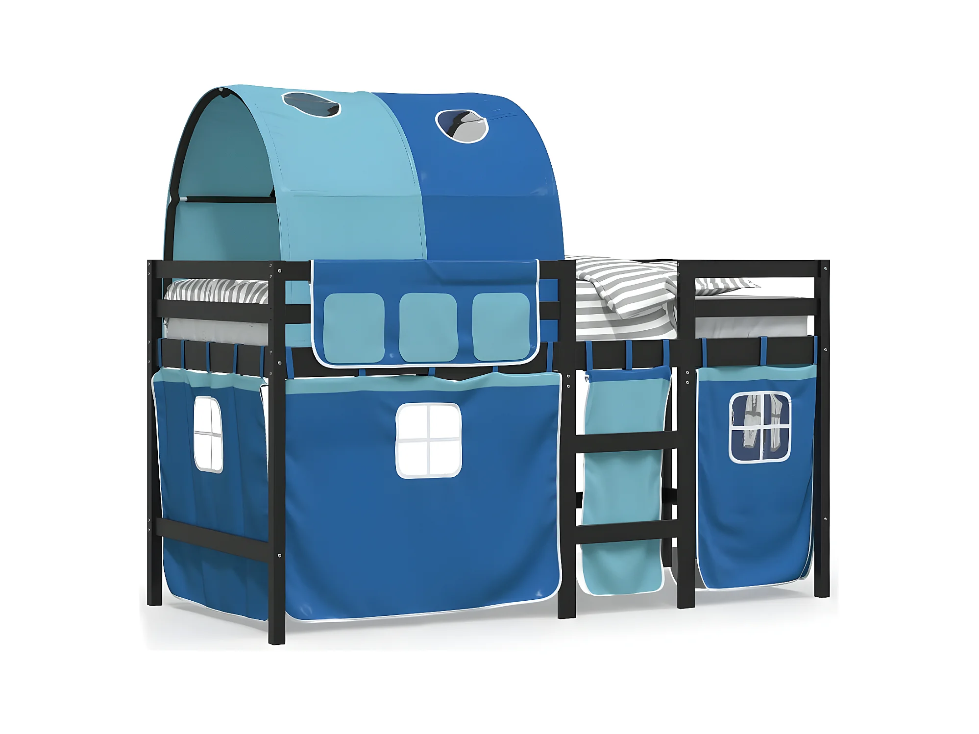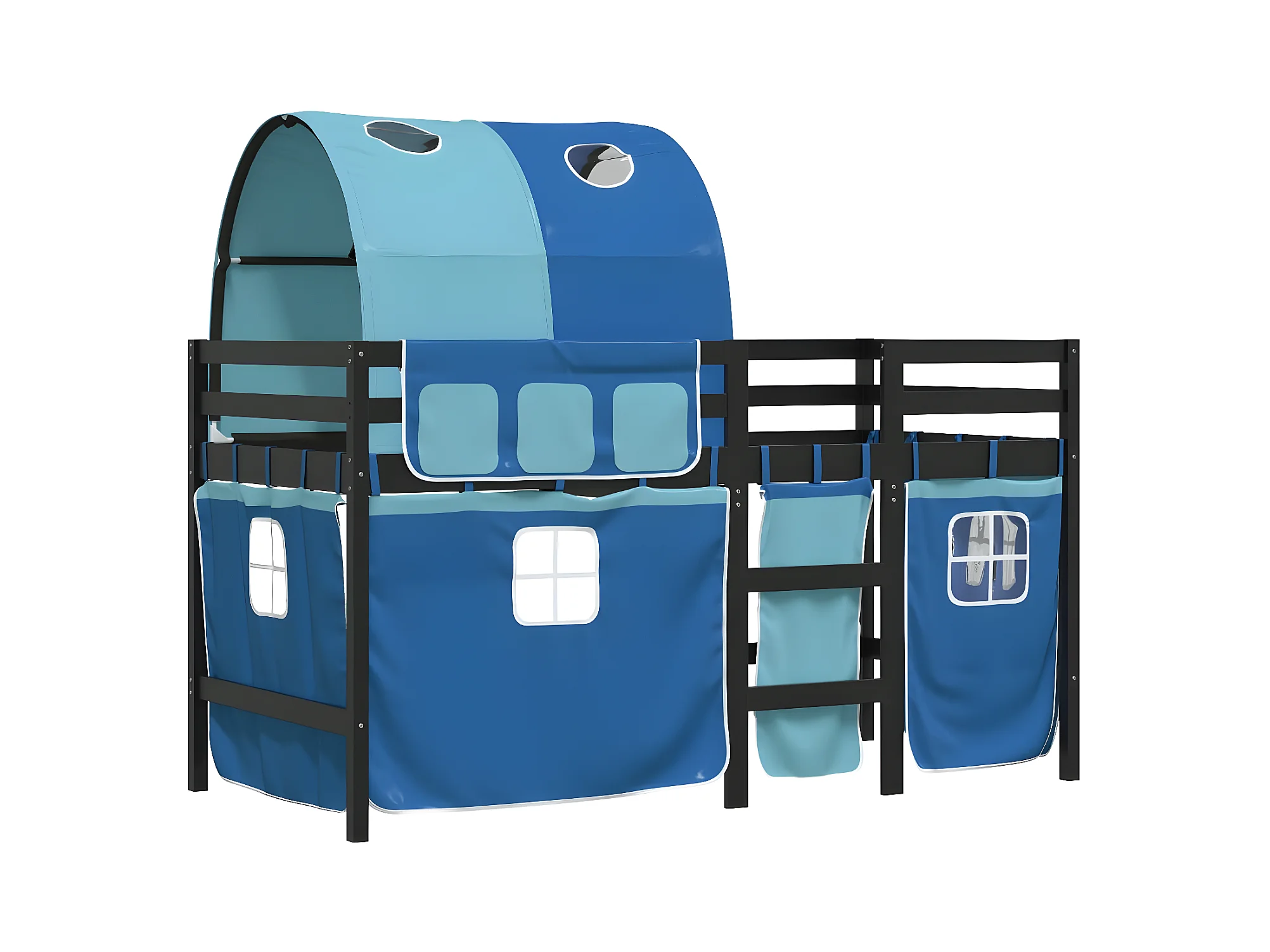 Lit mezzanine enfants et tunnel bleu 90x200cm bois pin massif