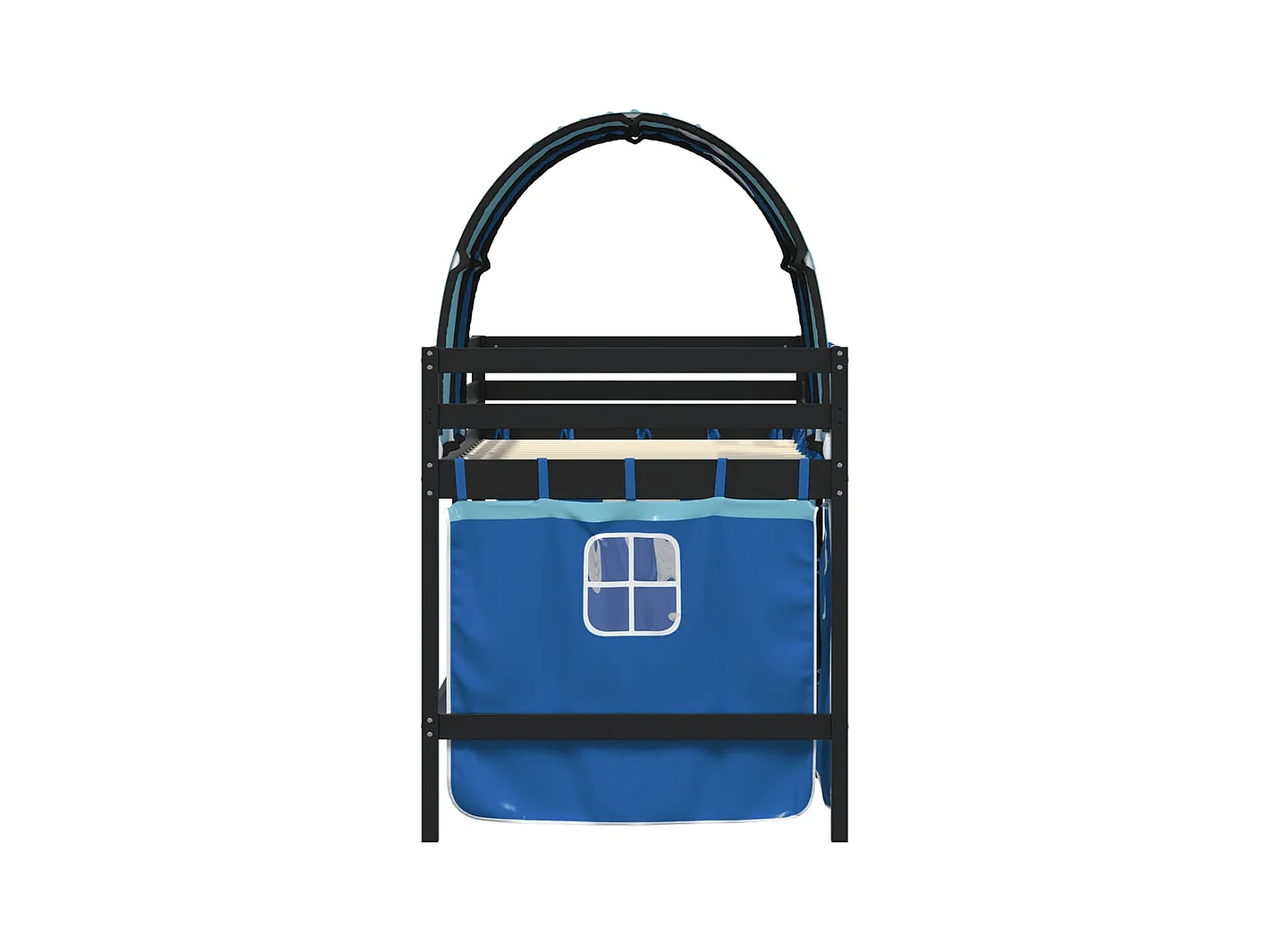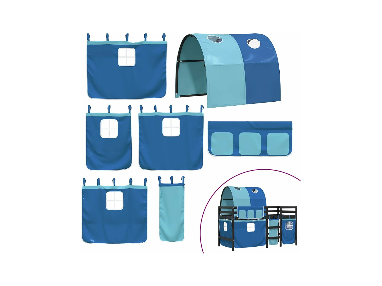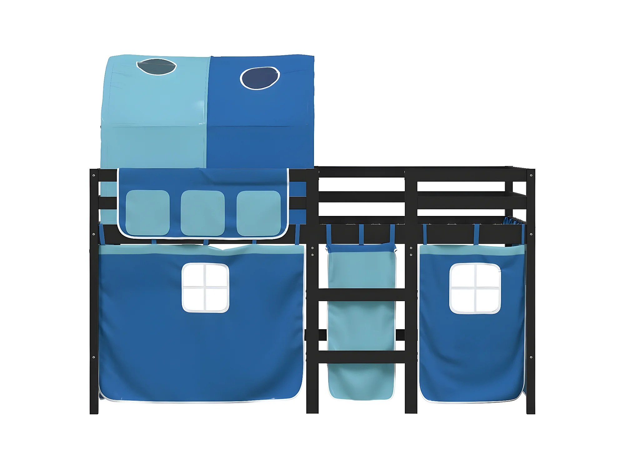 Lit mezzanine enfants et tunnel bleu 90x200cm bois pin massif