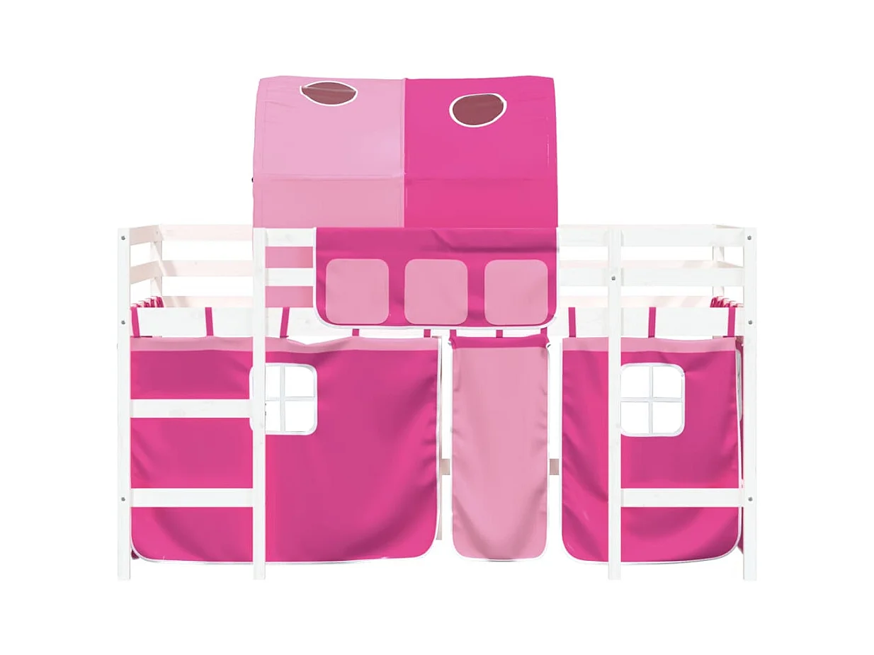 Lit mezzanine enfants et tunnel rose 90x190 bois pin massif