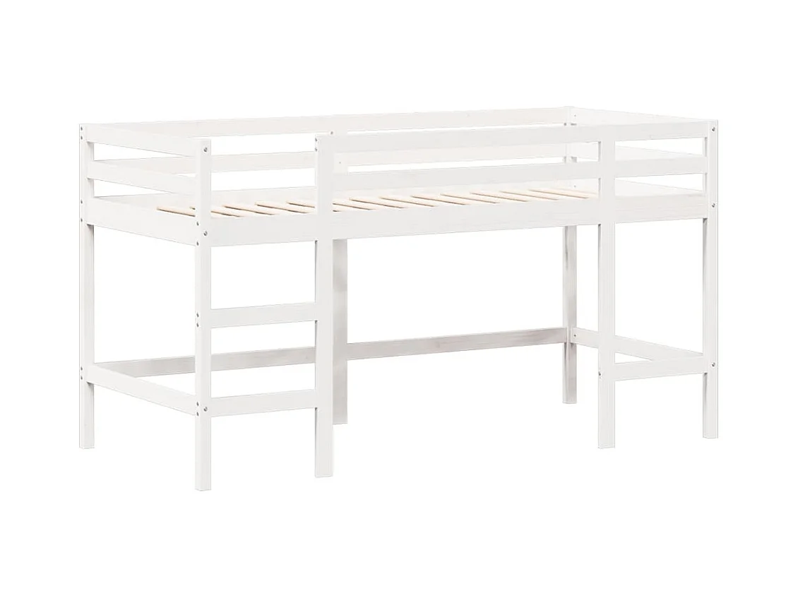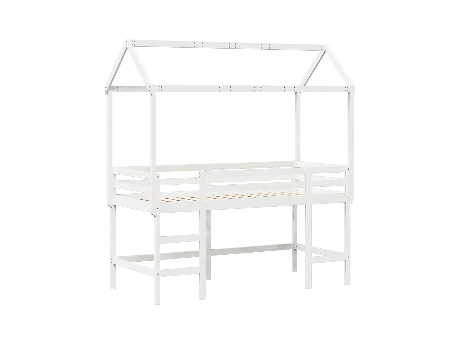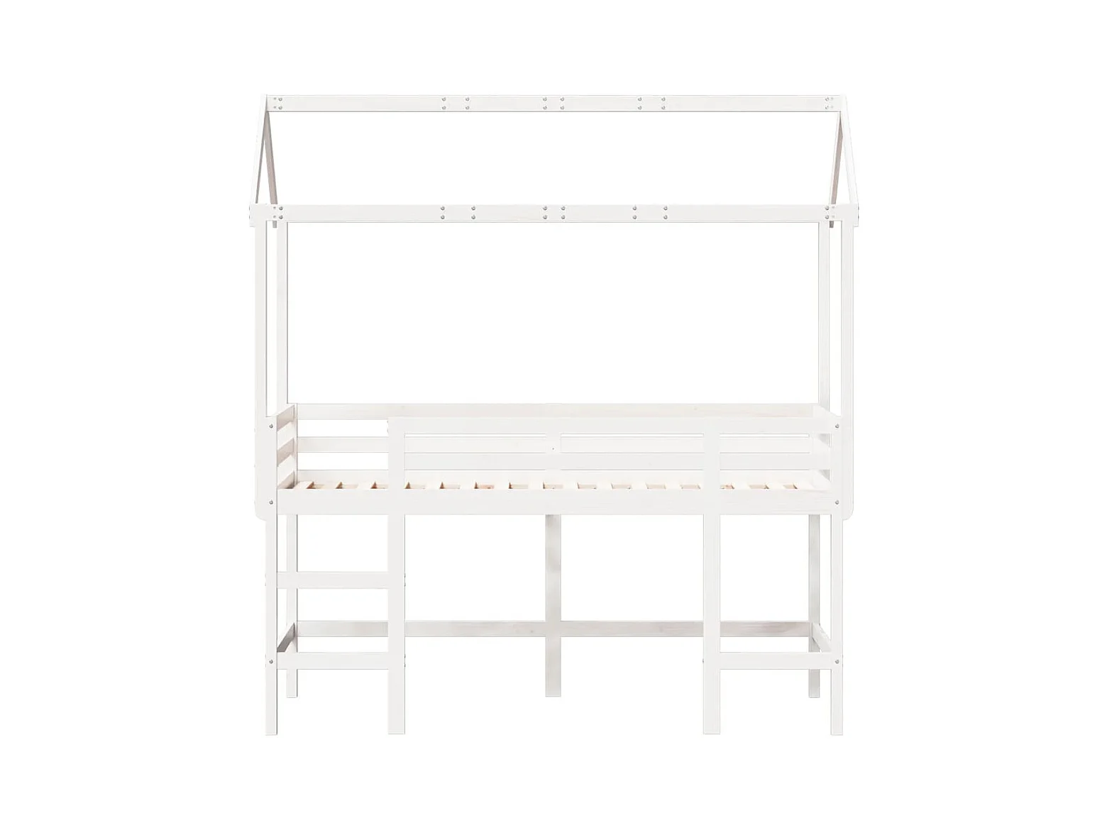 Lit mezzanine et échelle et toit blanc 90x200cm bois pin massif FR97148