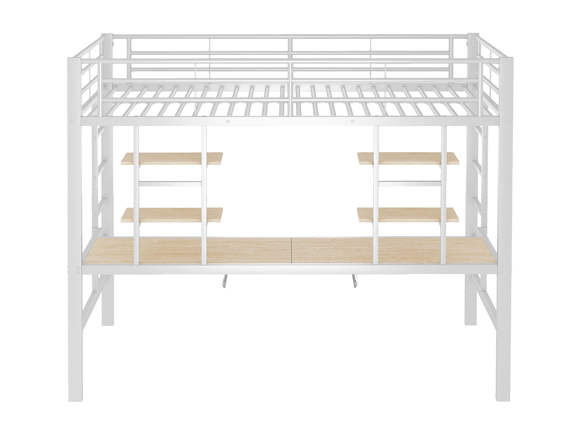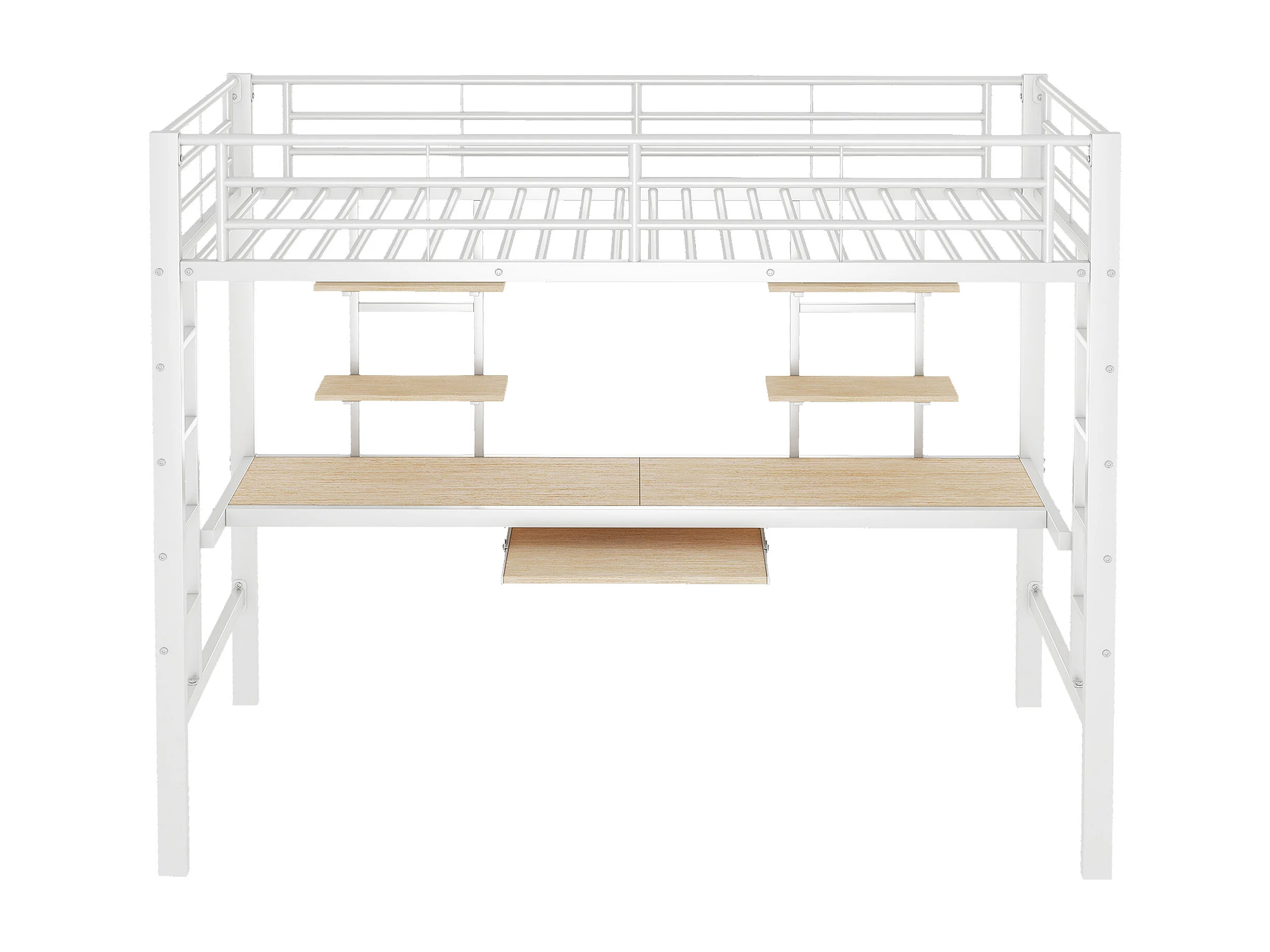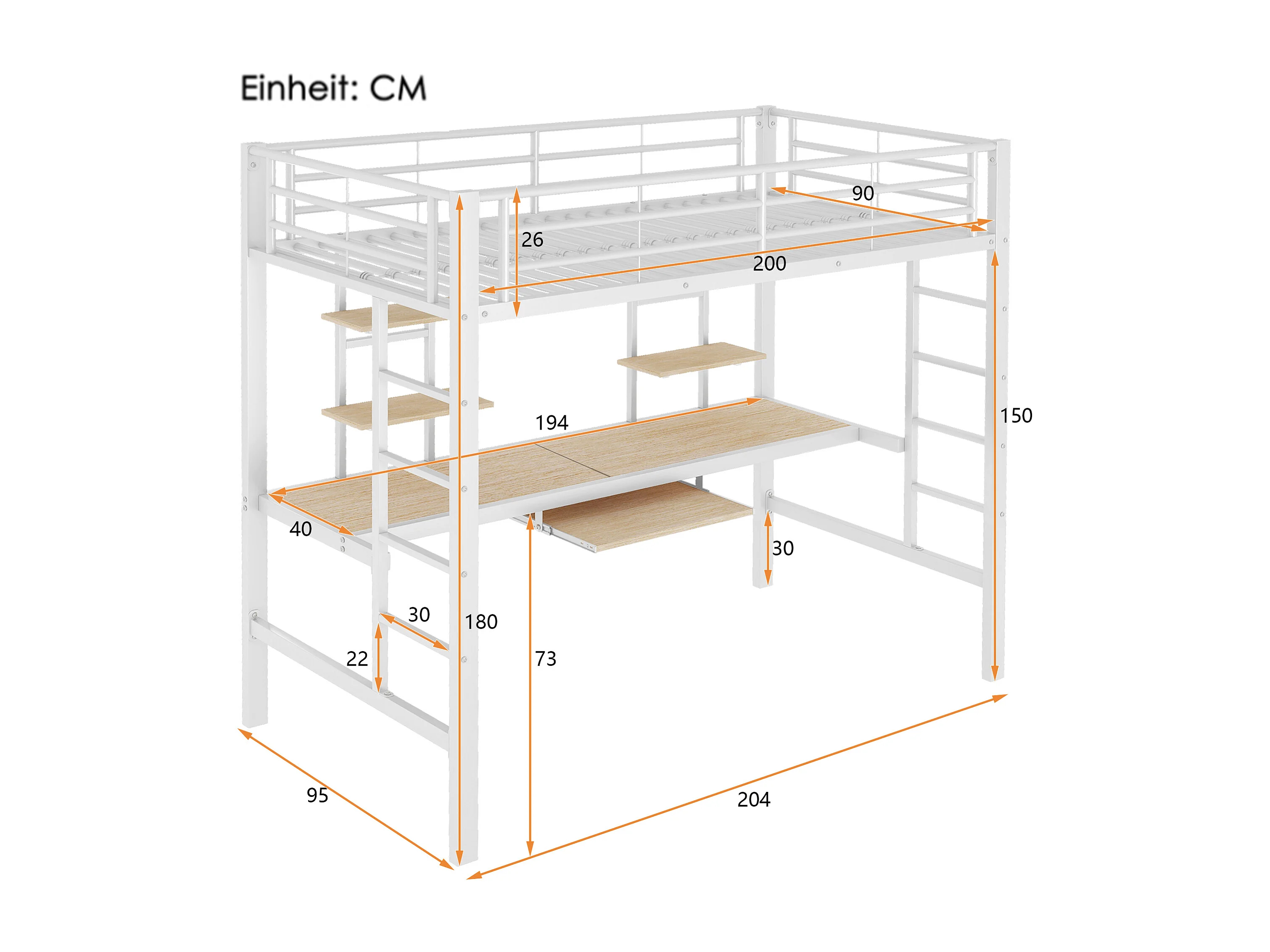 Lit mezzanine pour enfant - 90 x 200 cm - avec bureau + étagères de rangement - métal + MDF - blanc