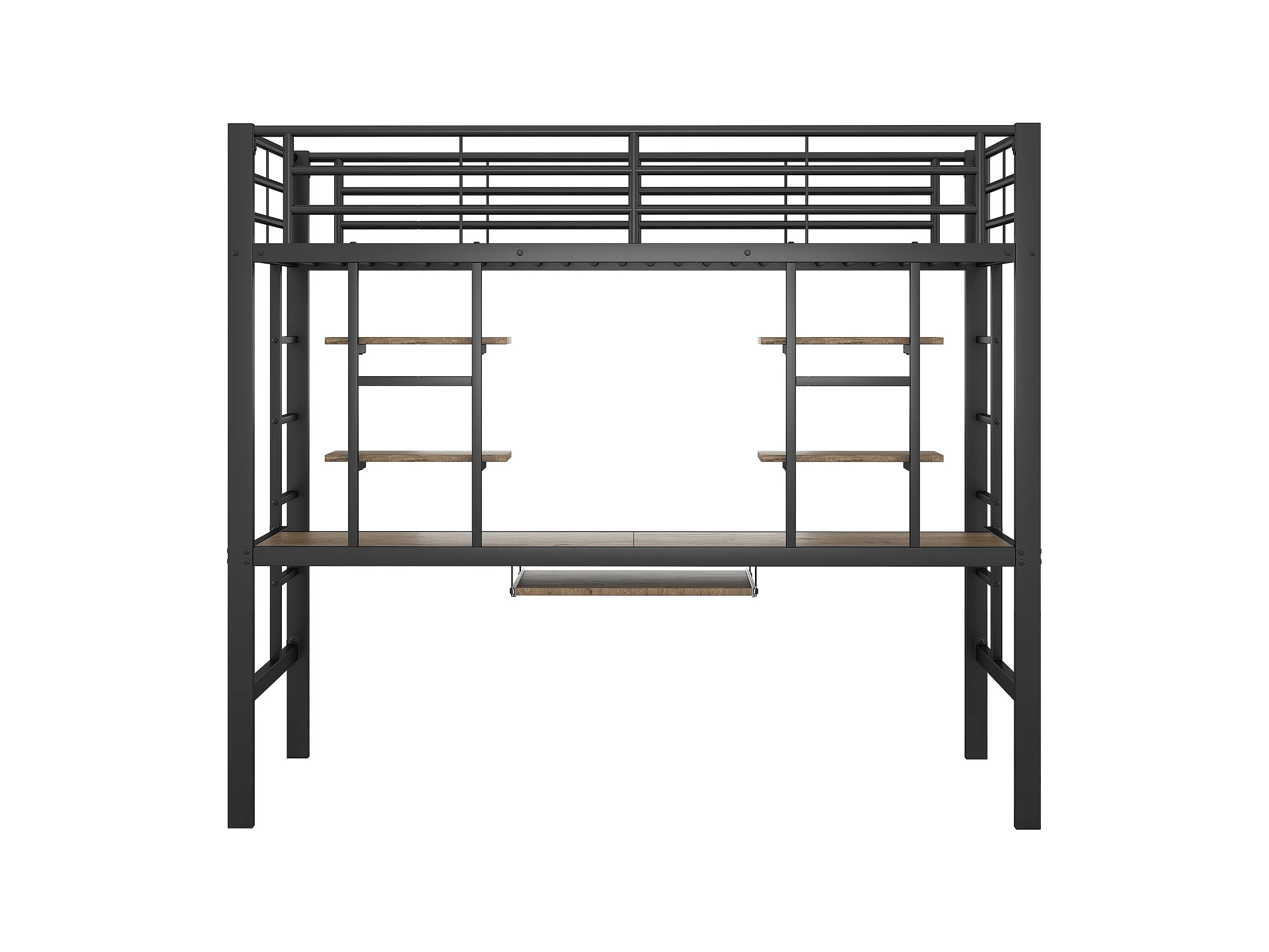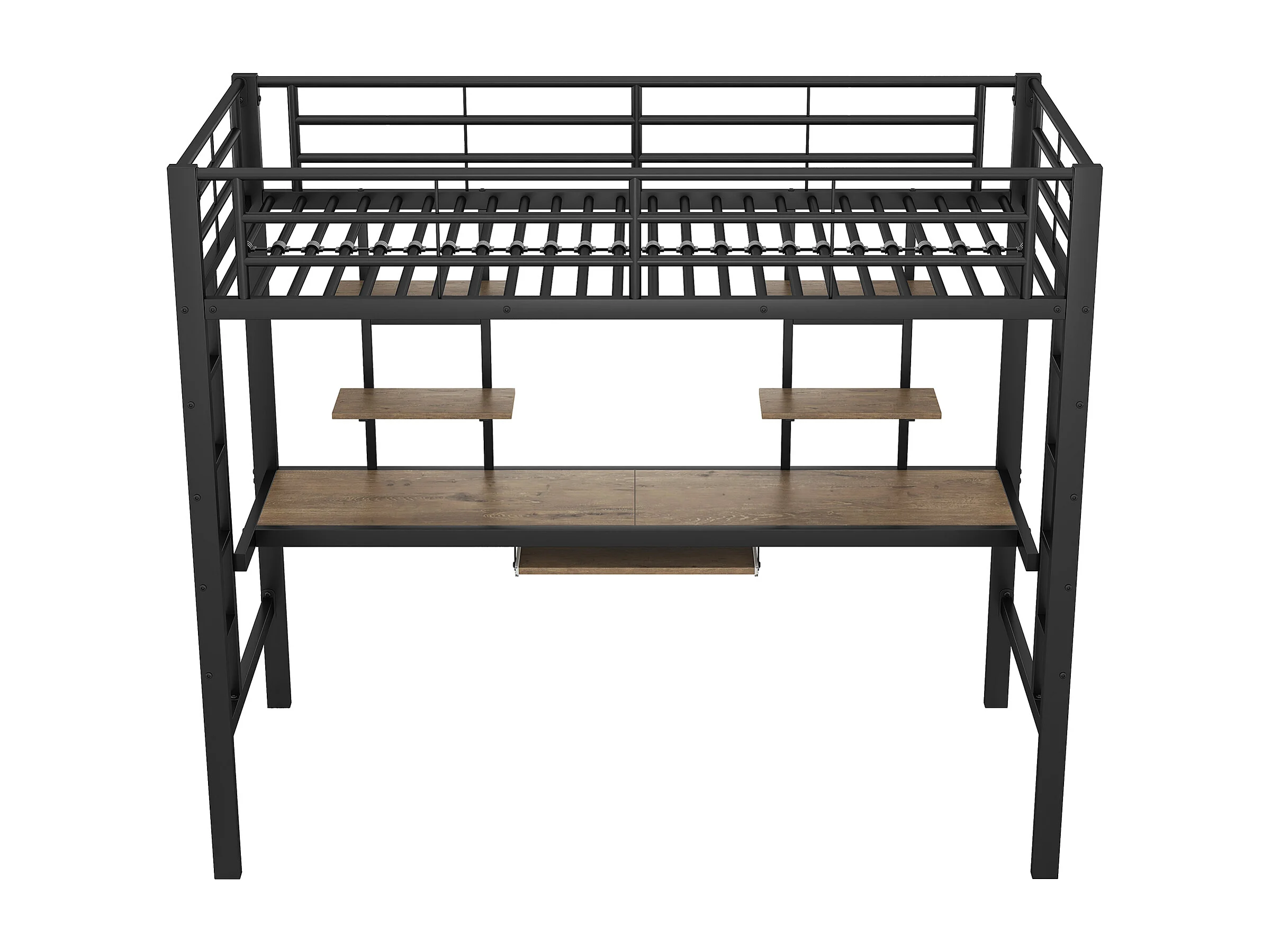 Lit mezzanine pour enfant - 90 x 200 cm - avec bureau + étagères de rangement - métal + MDF - noir