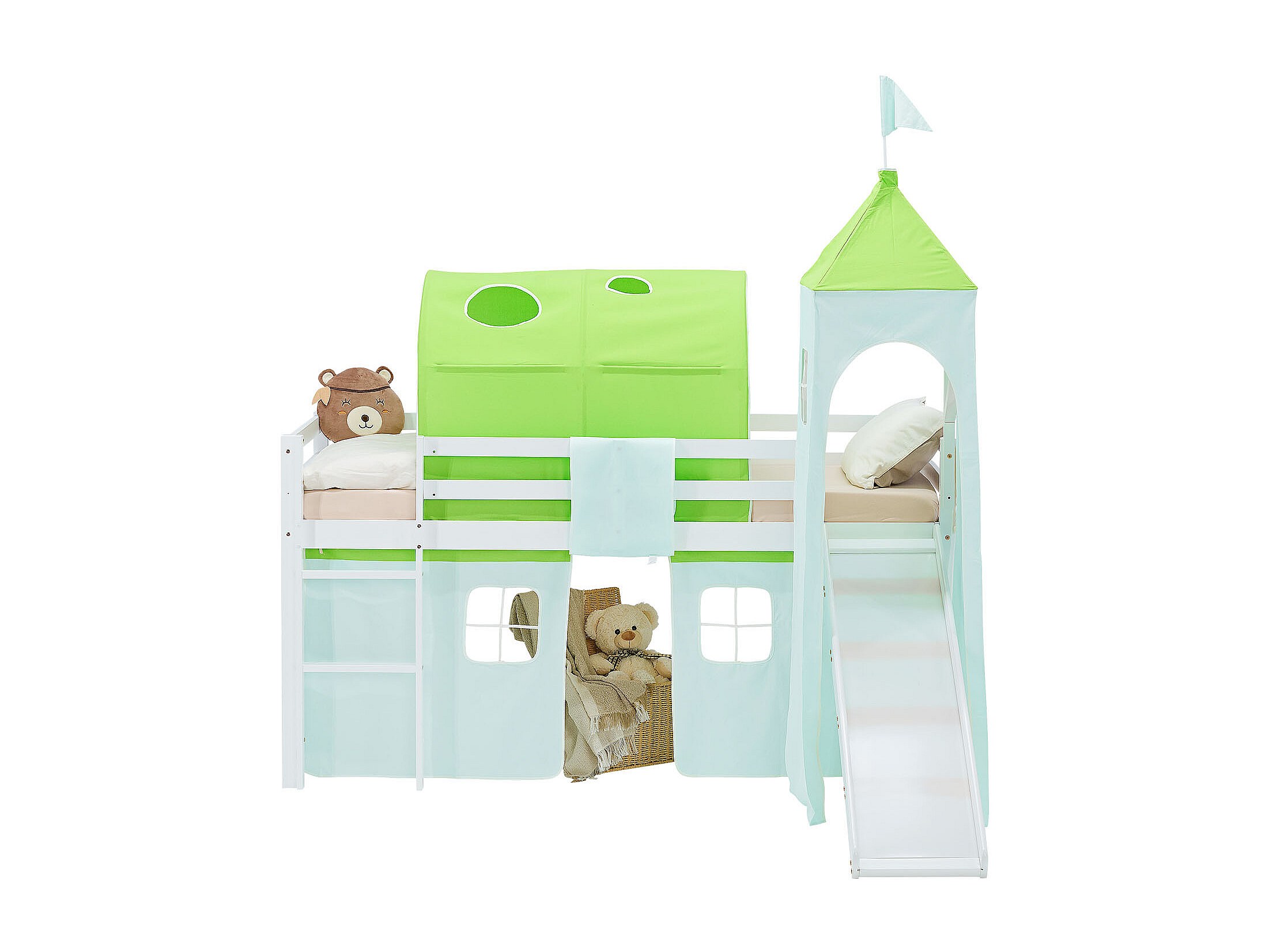 Lit mezzanine pour enfants 90x200 cm Blanc Rideau Vert