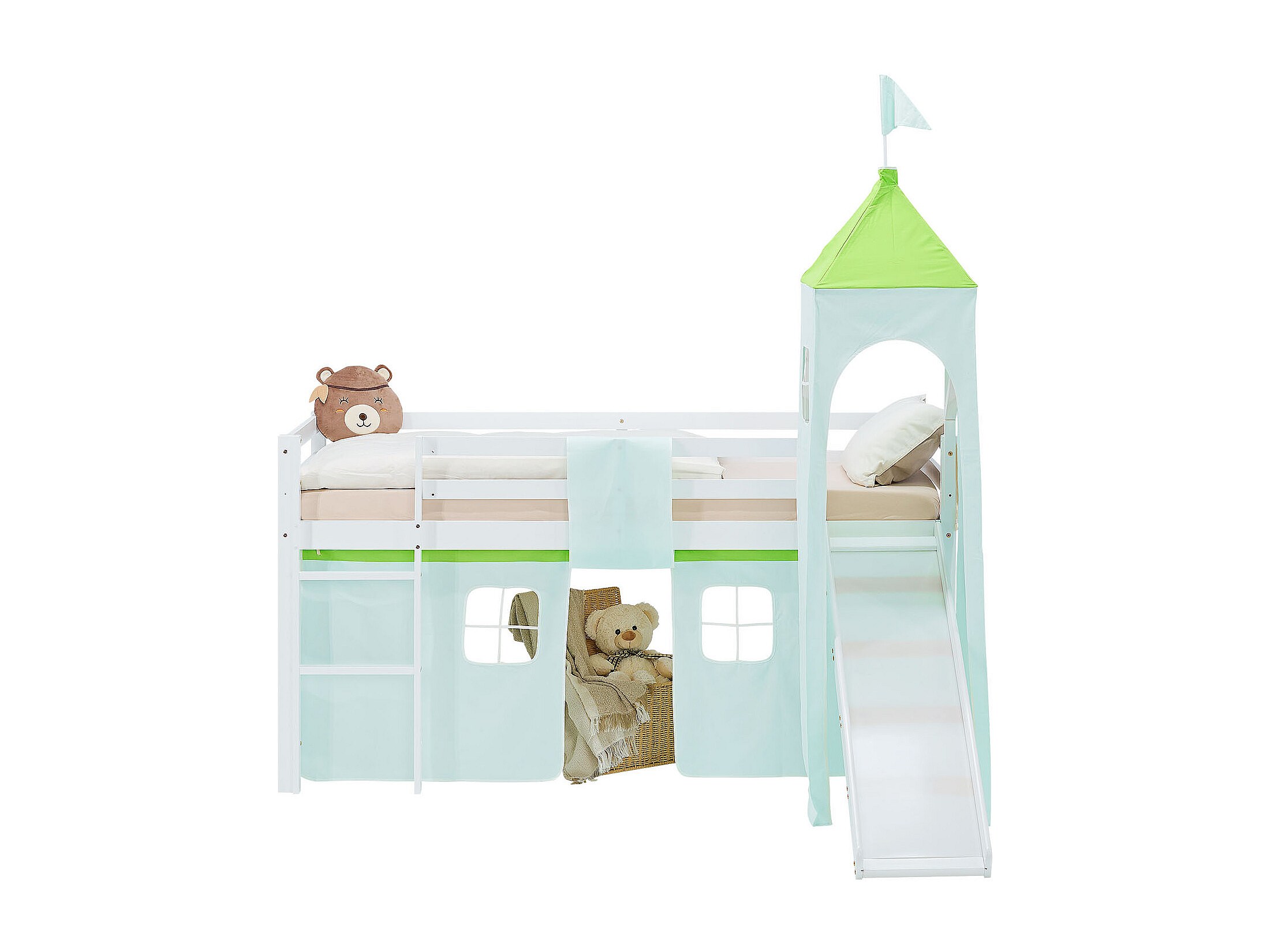 Lit mezzanine pour enfants 90x200 cm blanc vert