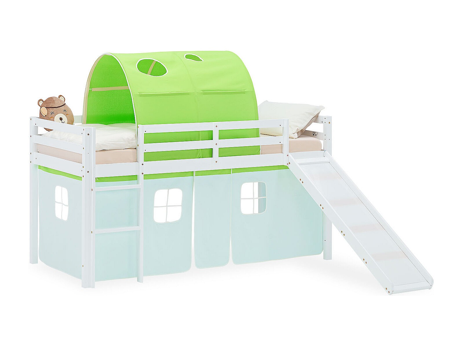 Lit Mezzanine pour Enfants 90x200 cm Blanc Vert
