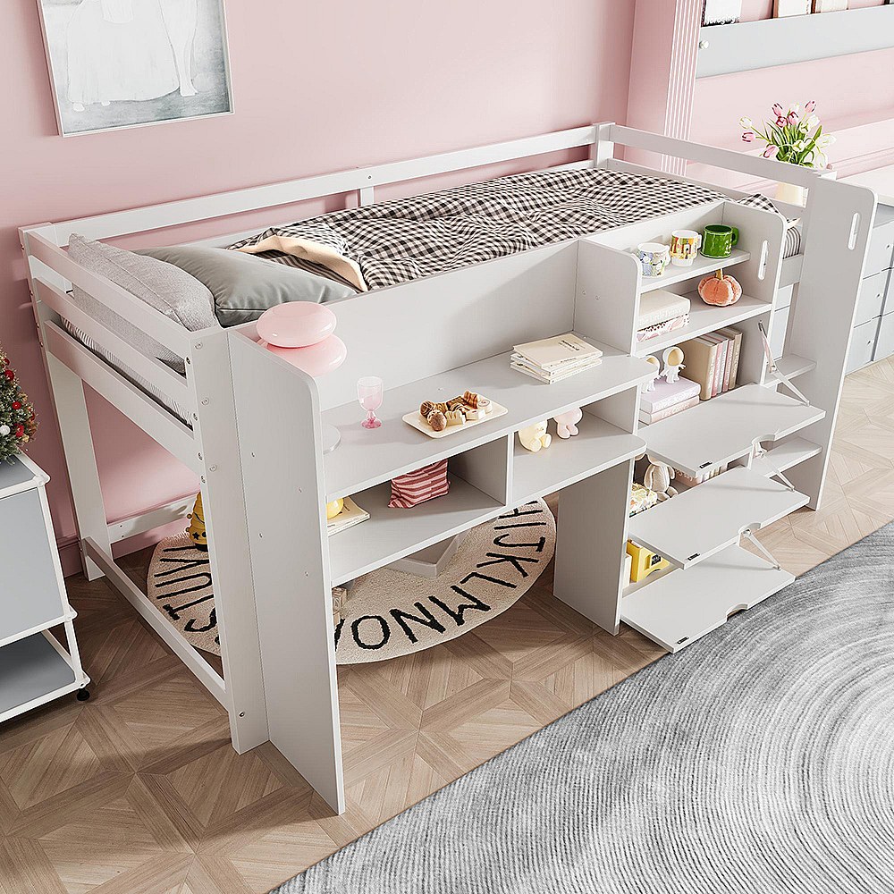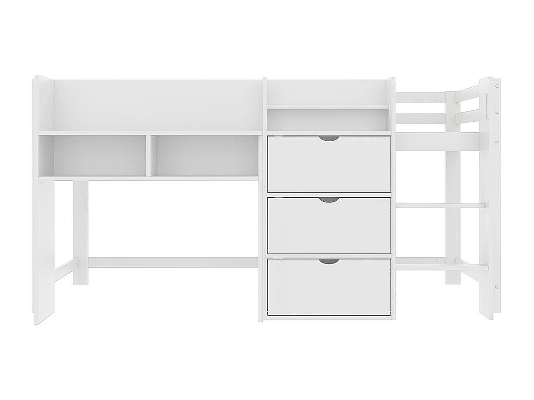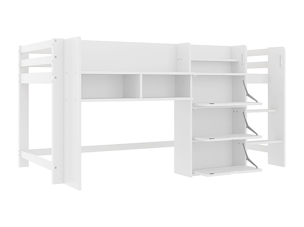 Lit mi-haut maison 90x200 cm rangement espace divertissement sans matelas blanc