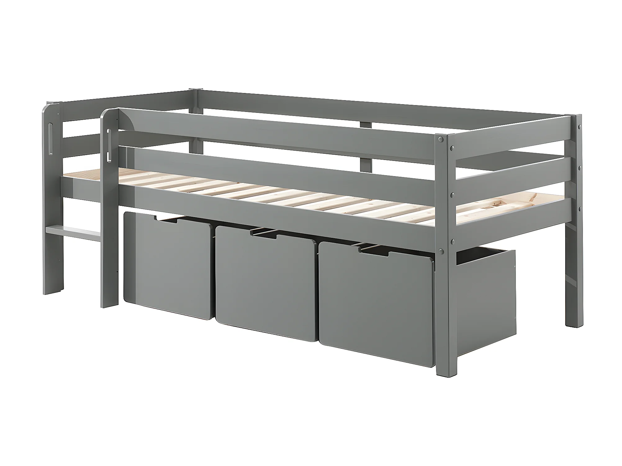 Pack - Lit Enfant Surélevé & 3 Tiroirs "Pino" Gris