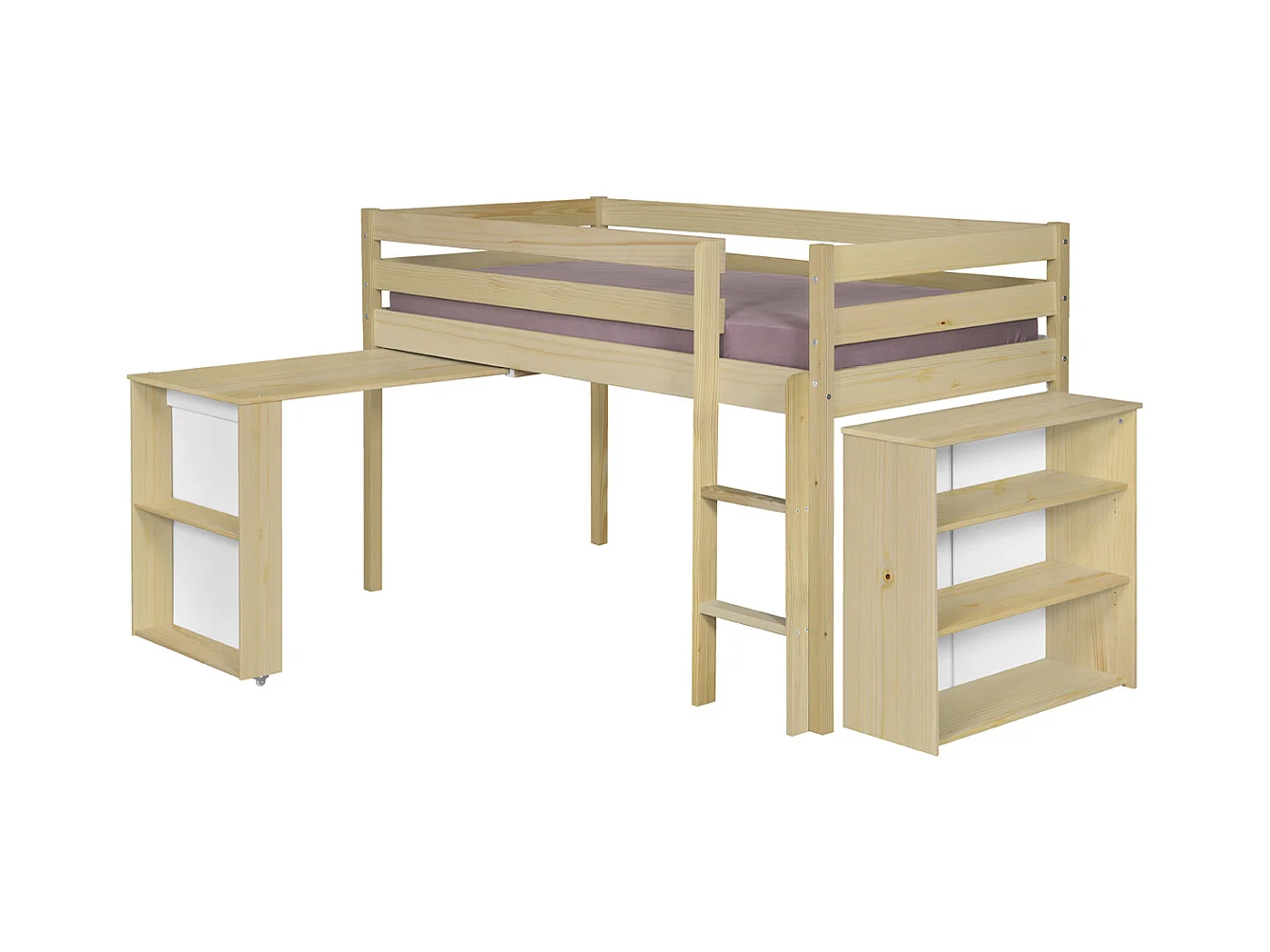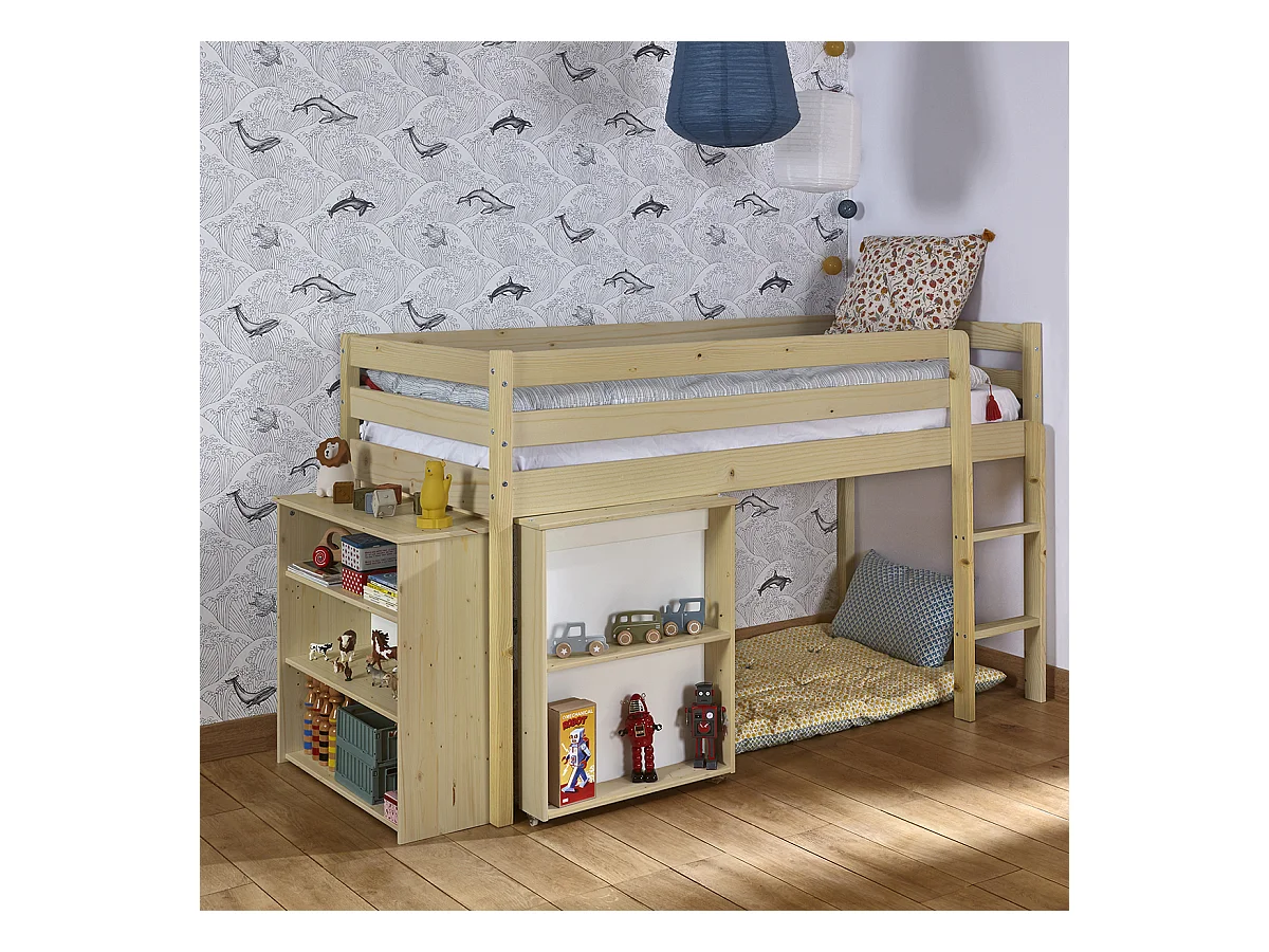 Lit mi-hauteur combiné 90x190 cm bois massif bois DAVON