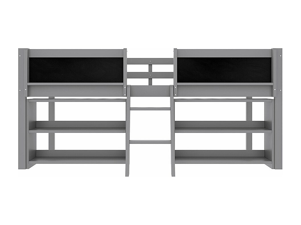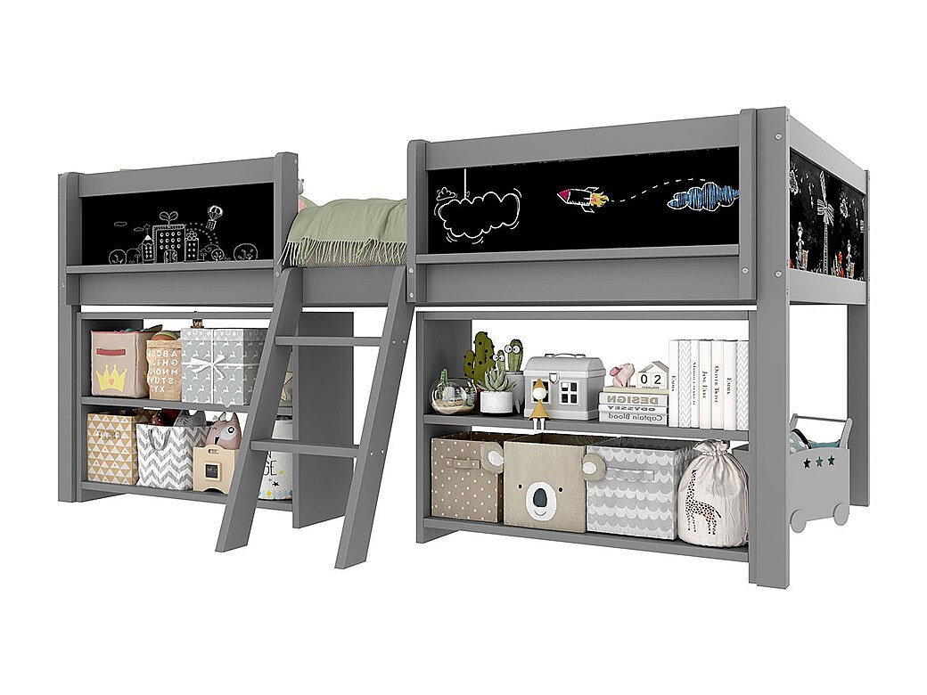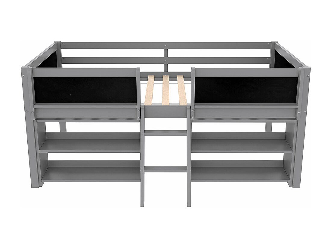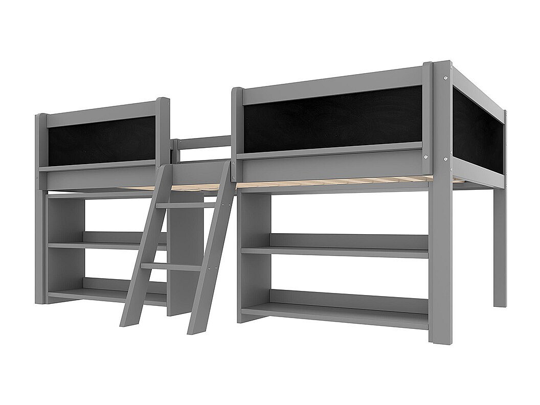 Lit mi hauteur lit mezzanine 90x200 cm pin gris sans matelas échelle barrières étagères style minimaliste