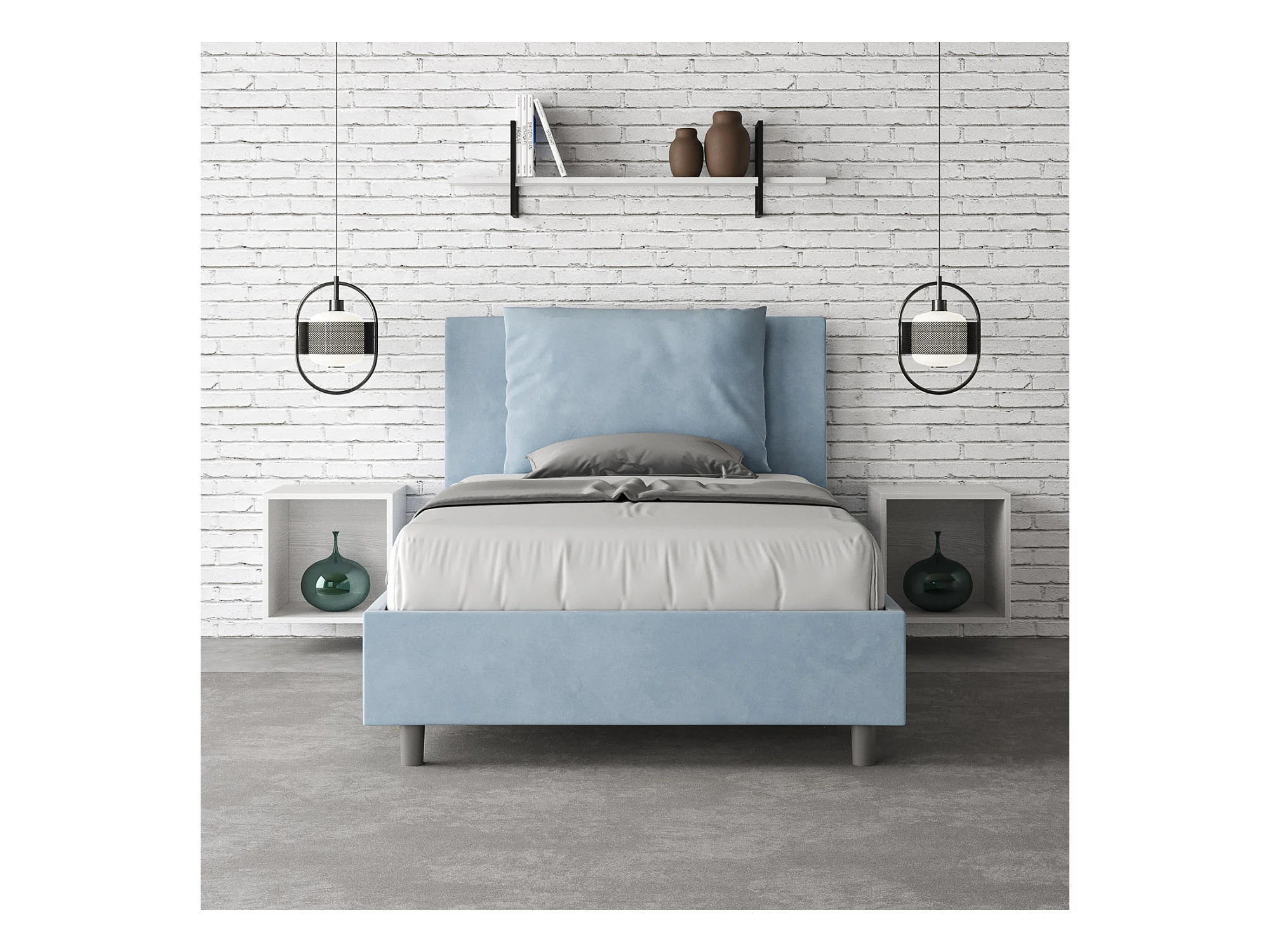 Lit 1 place et demi avec sommier rembourré 120x190 microfibre bleu clair Antea