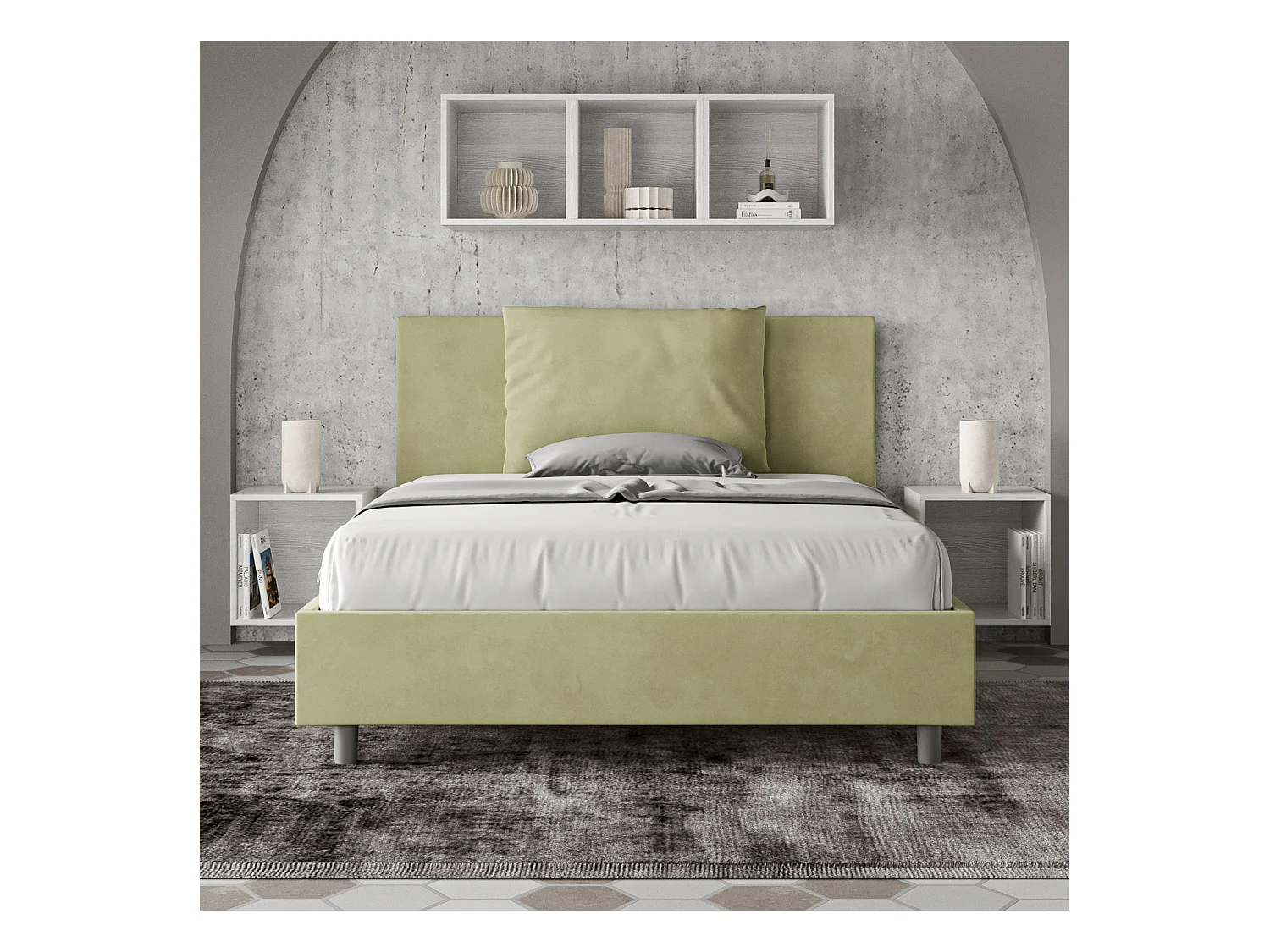 Lit double avec sommier rembourré 140x190 microfibre vert Antea