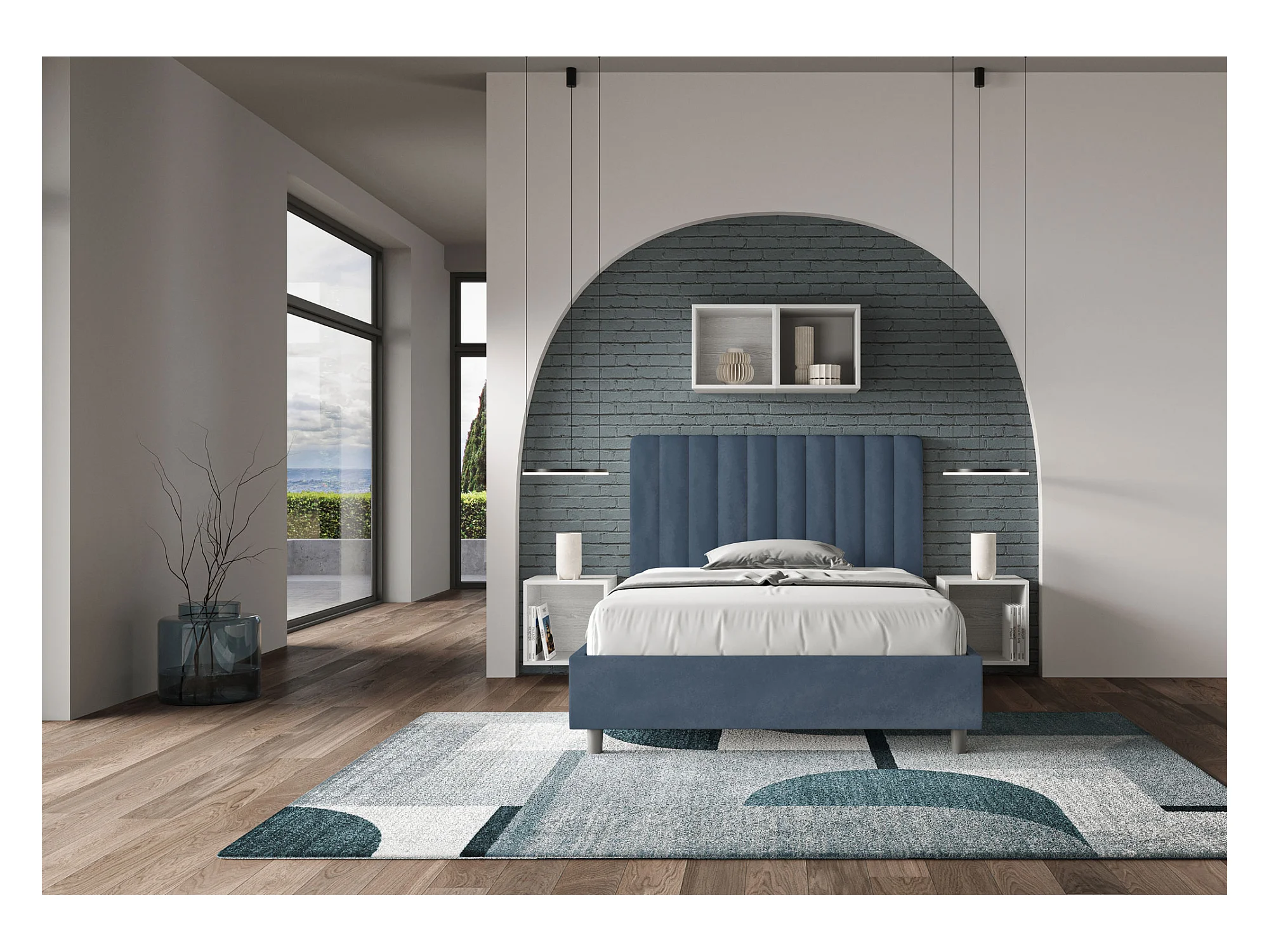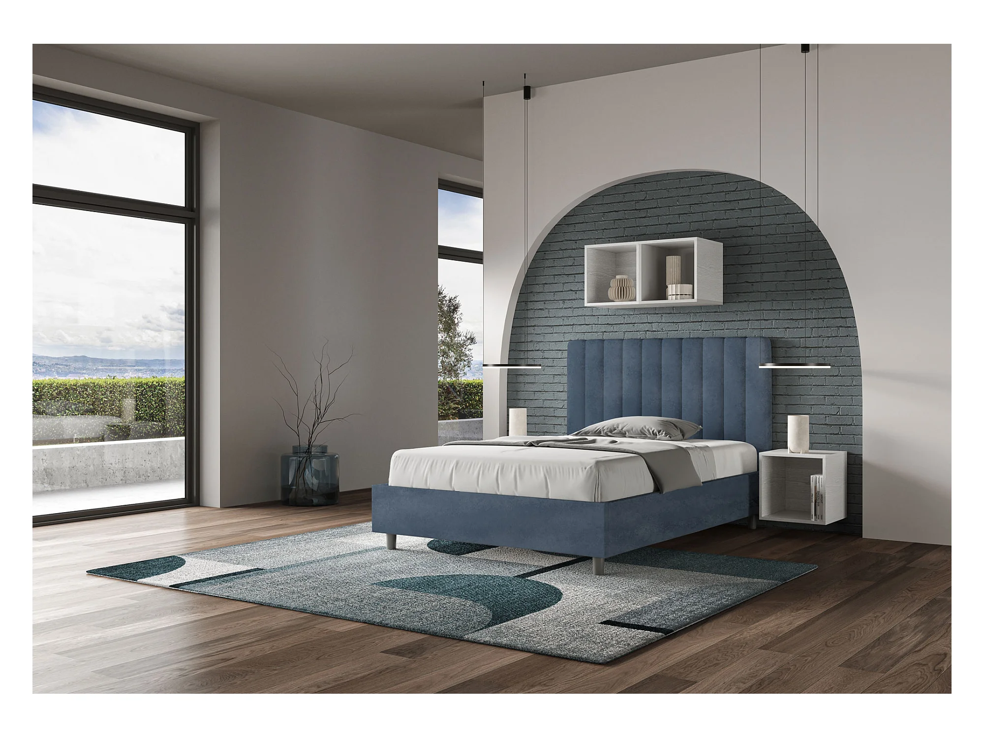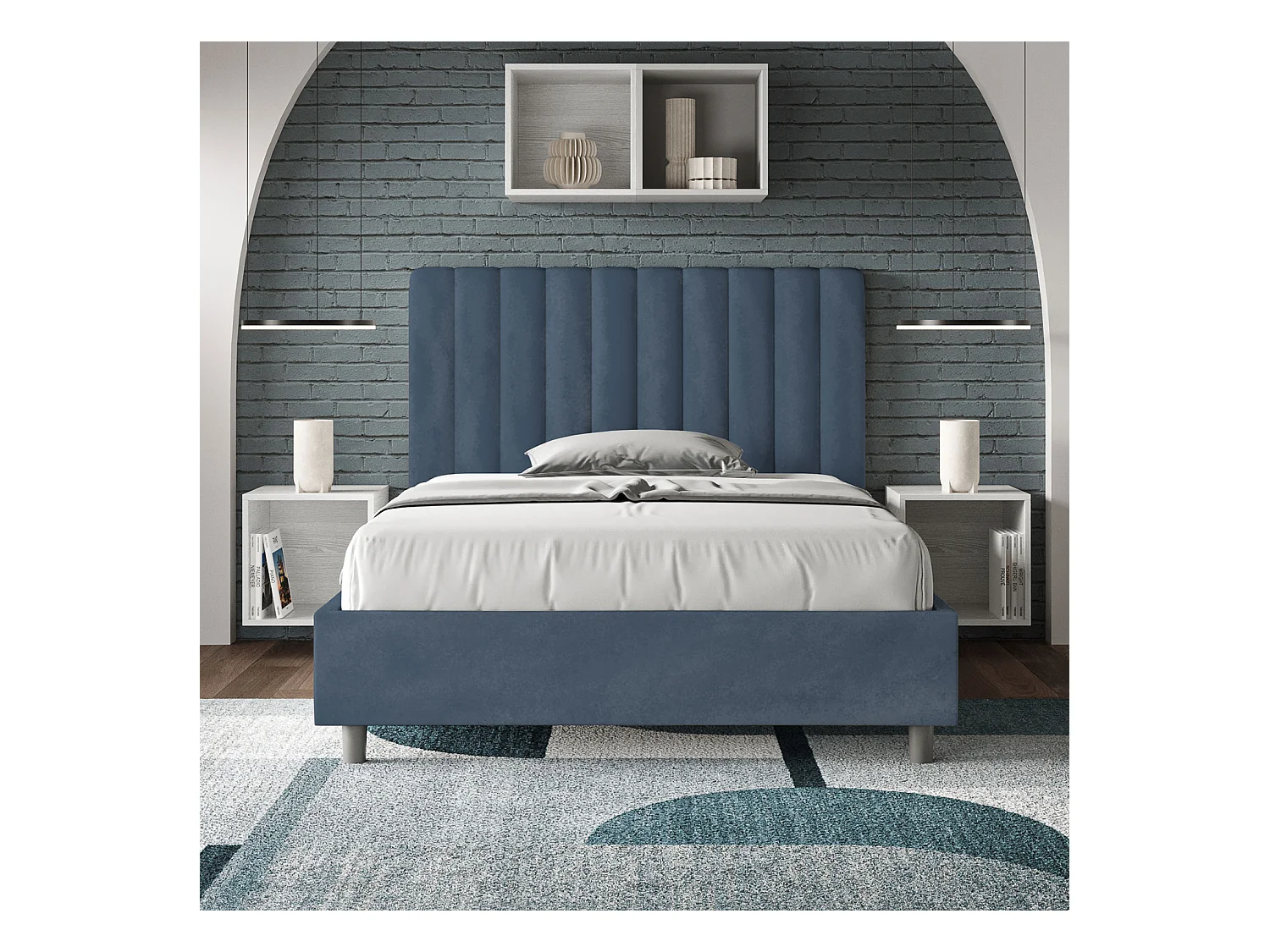 Lit 1 place et demi avec sommier rembourré 120x210 microfibre bleu Agueda